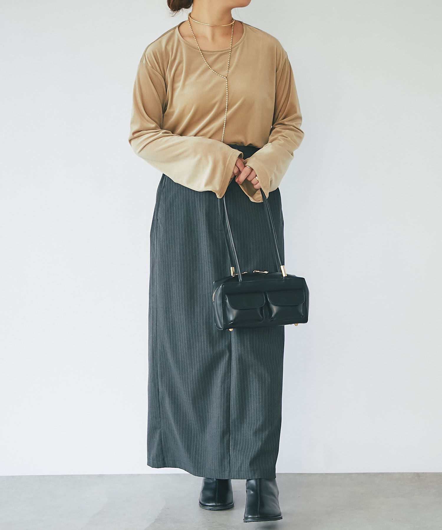 ピンストライプ×タイトシルエットで美脚見せ間違いなし♪