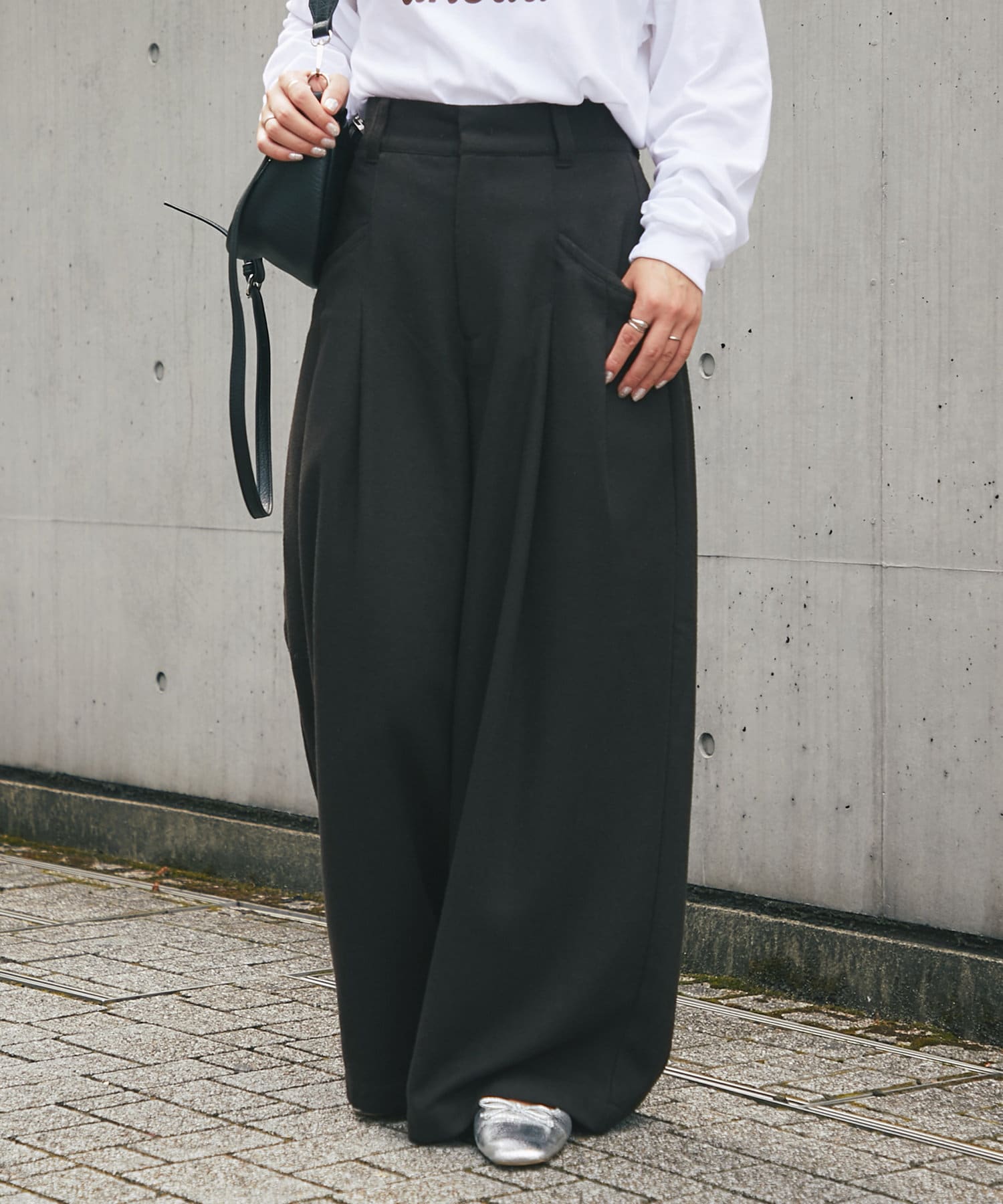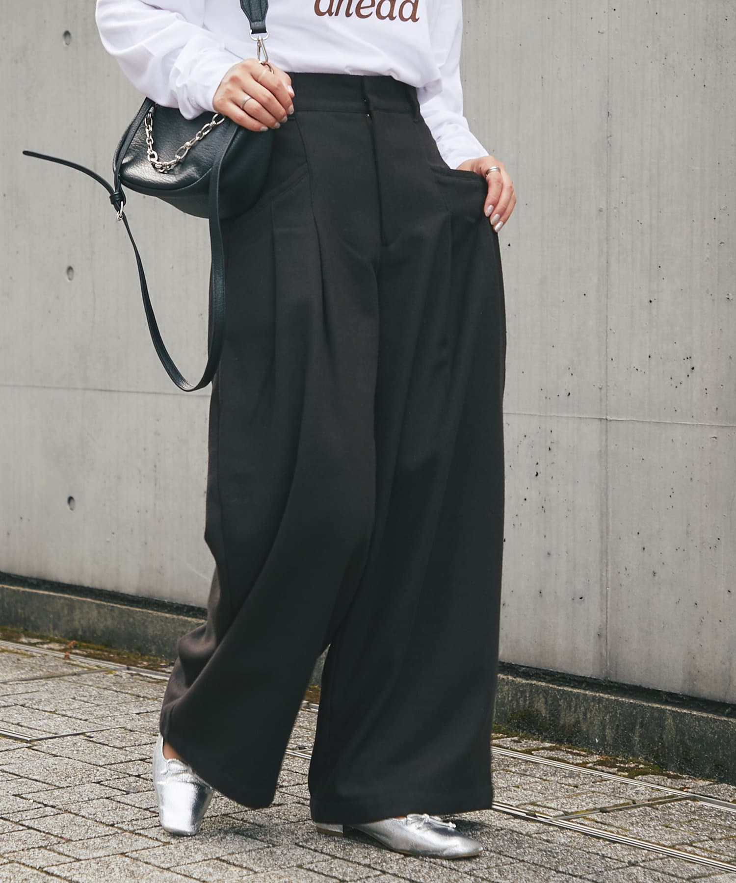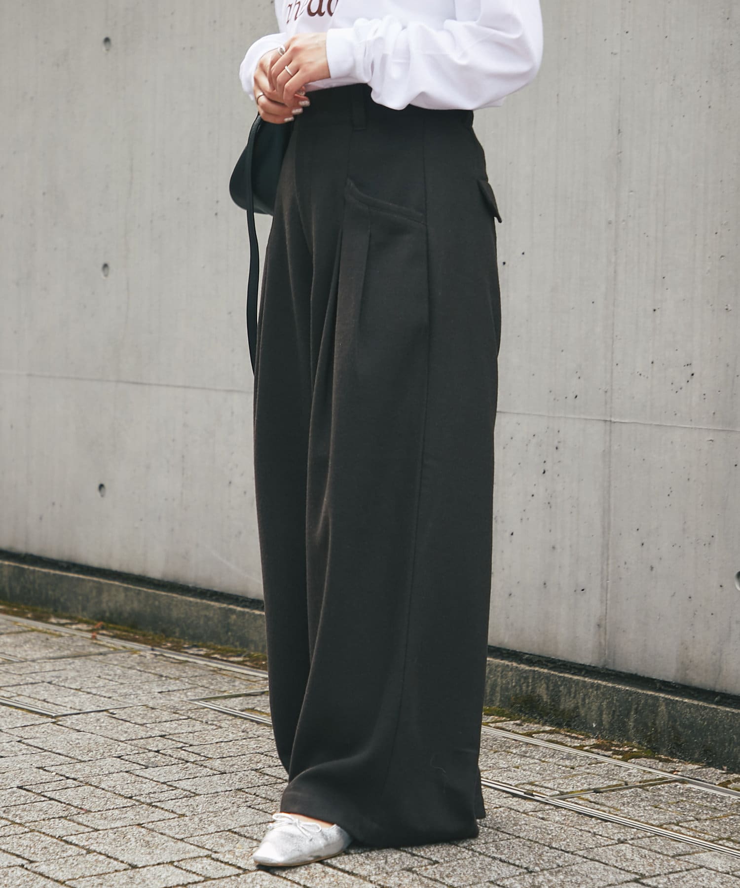 ・シワになりにくく1日中美しい姿をキープするタックパンツ