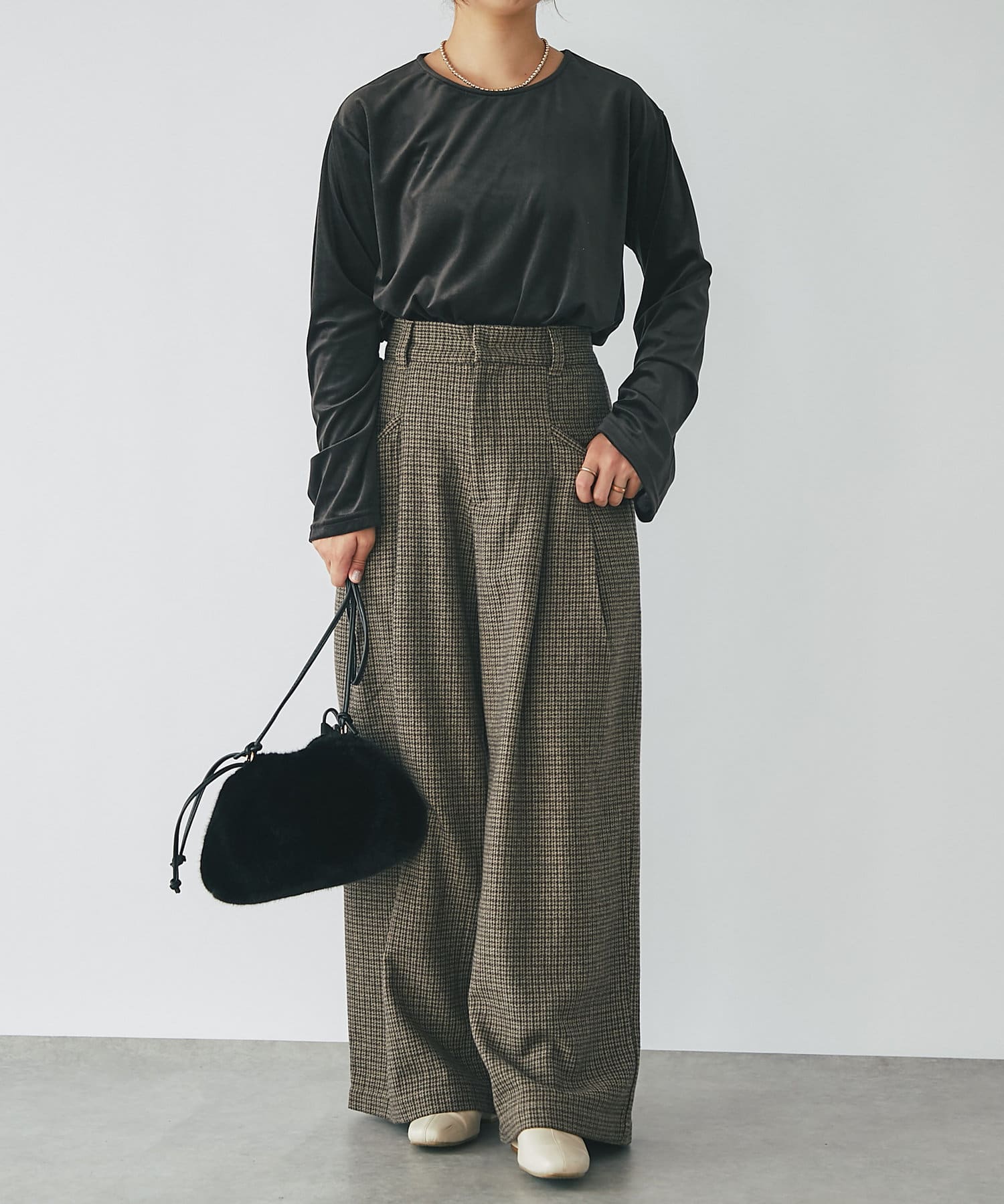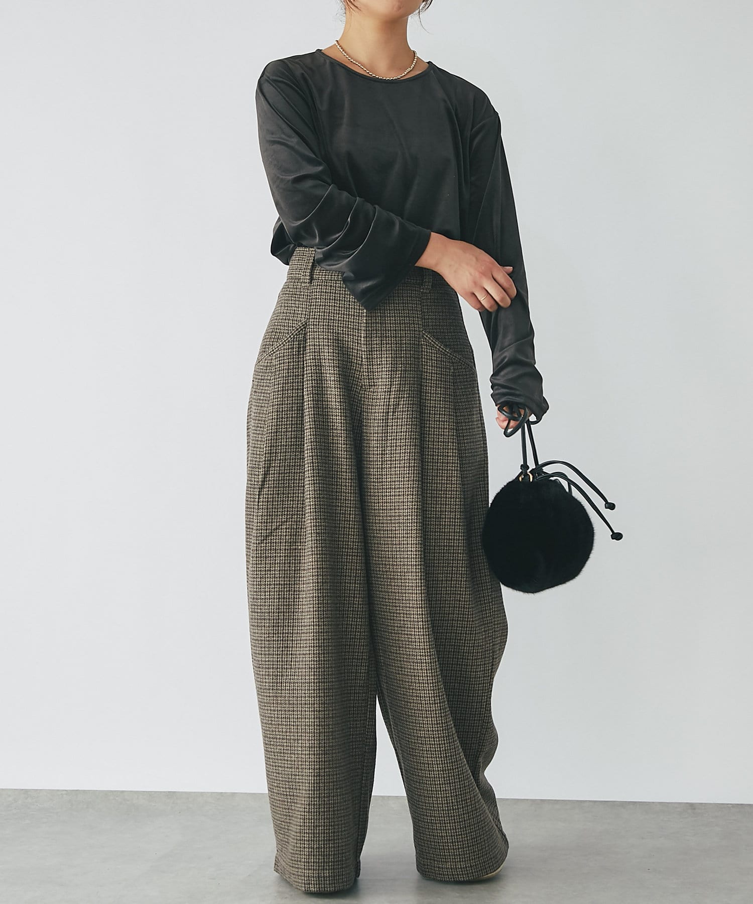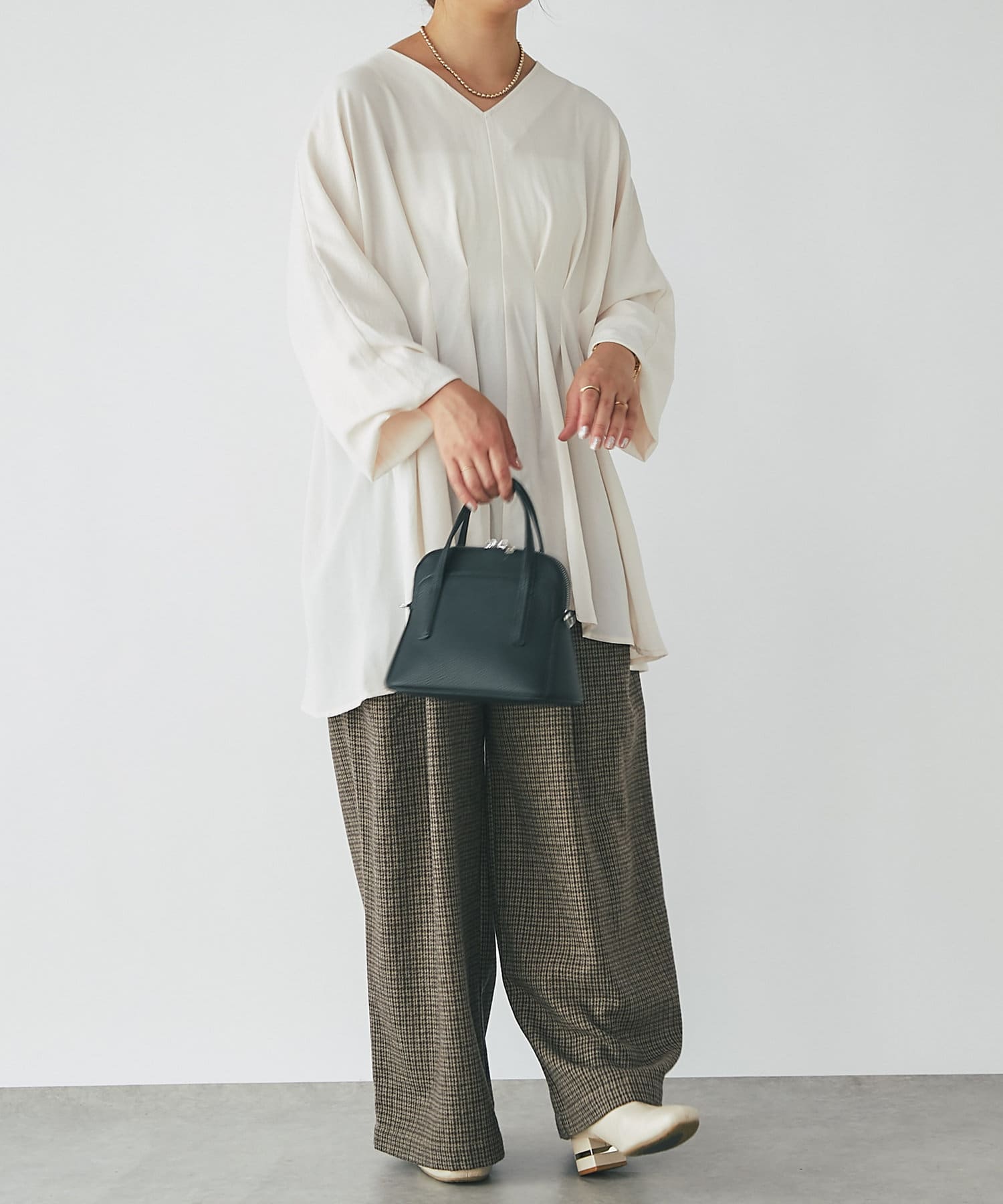 ・シワになりにくく1日中美しい姿をキープするタックパンツ