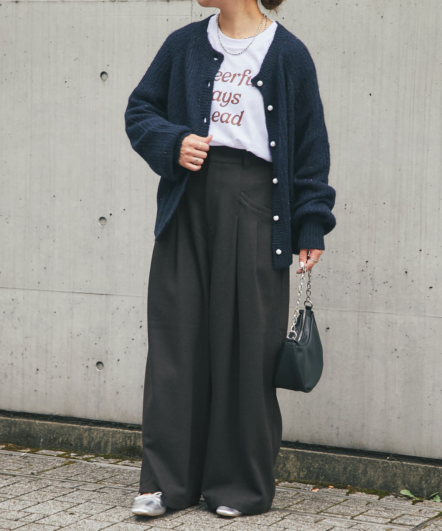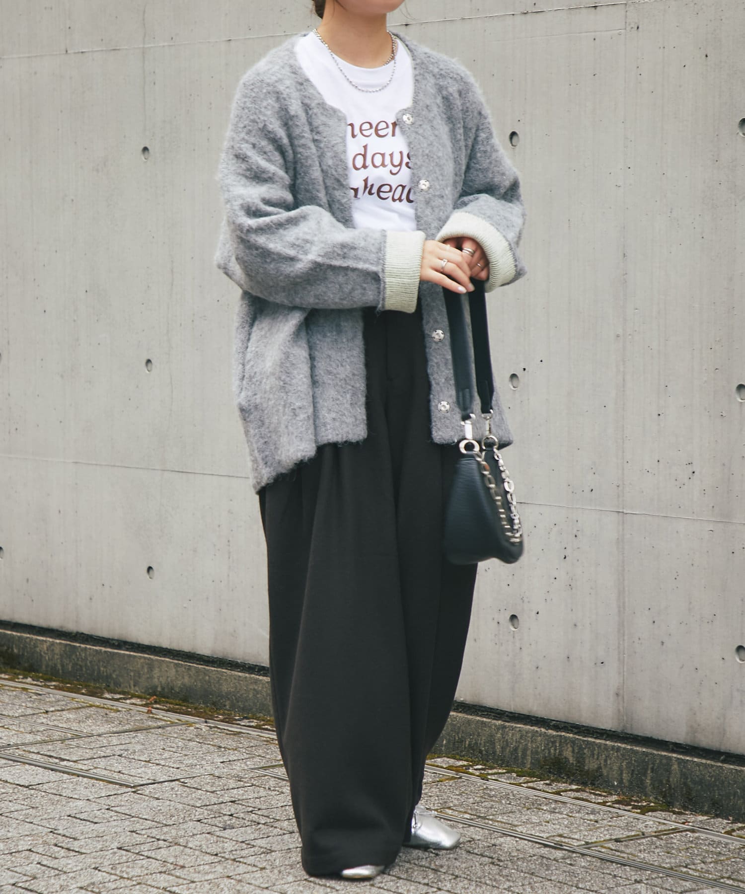 コンパクトな丈感のカーディガンのコーデはスタイルアップ間違いなし!