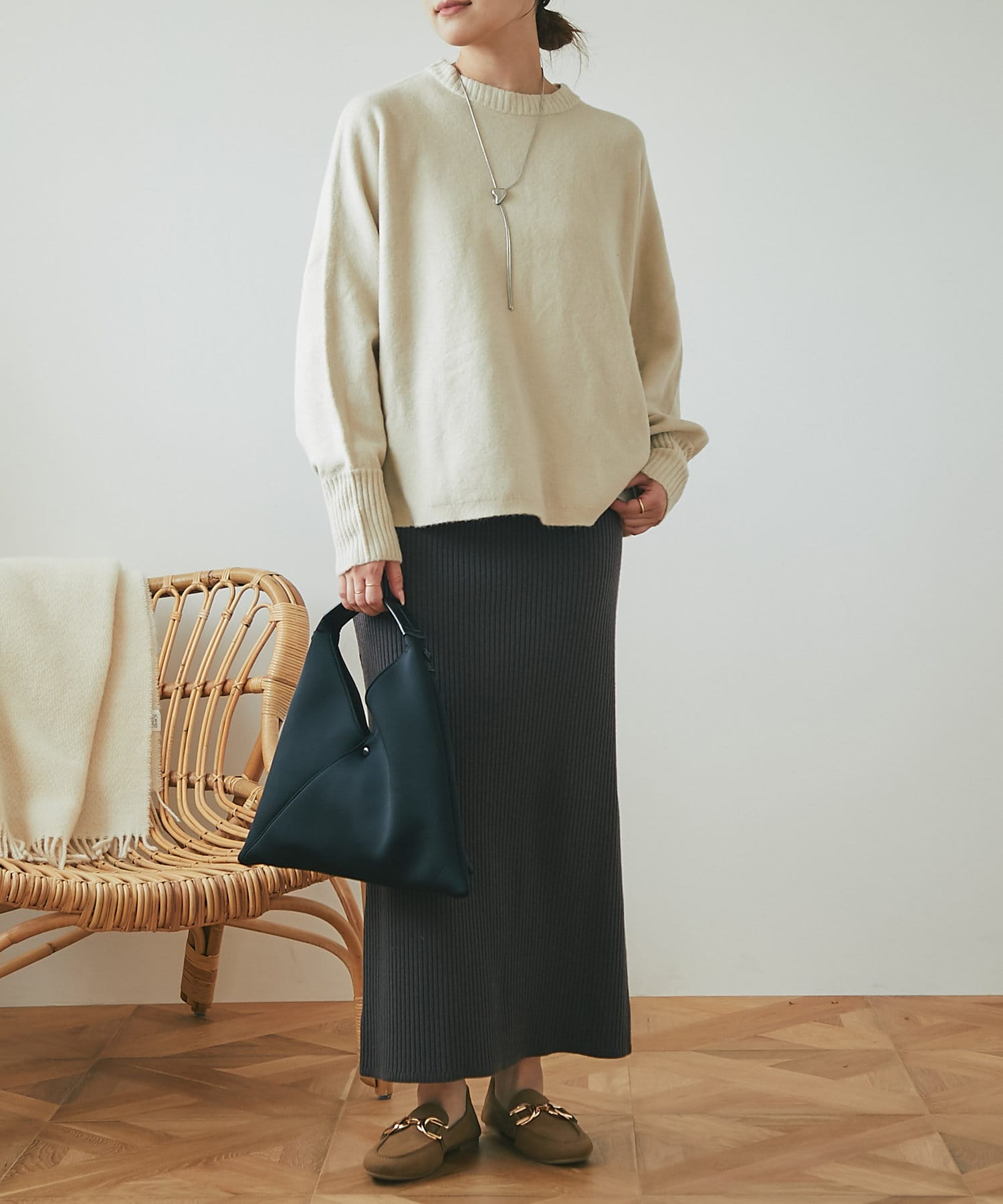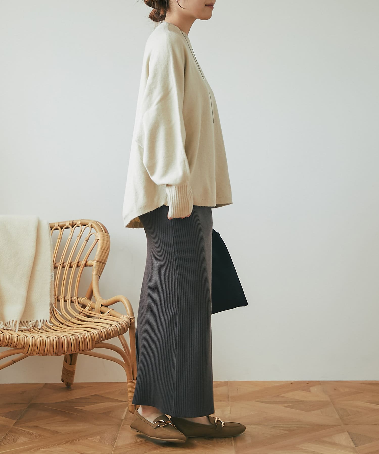 インナー無しで1枚でコーデが完成するので、持っておくと便利なニットです。