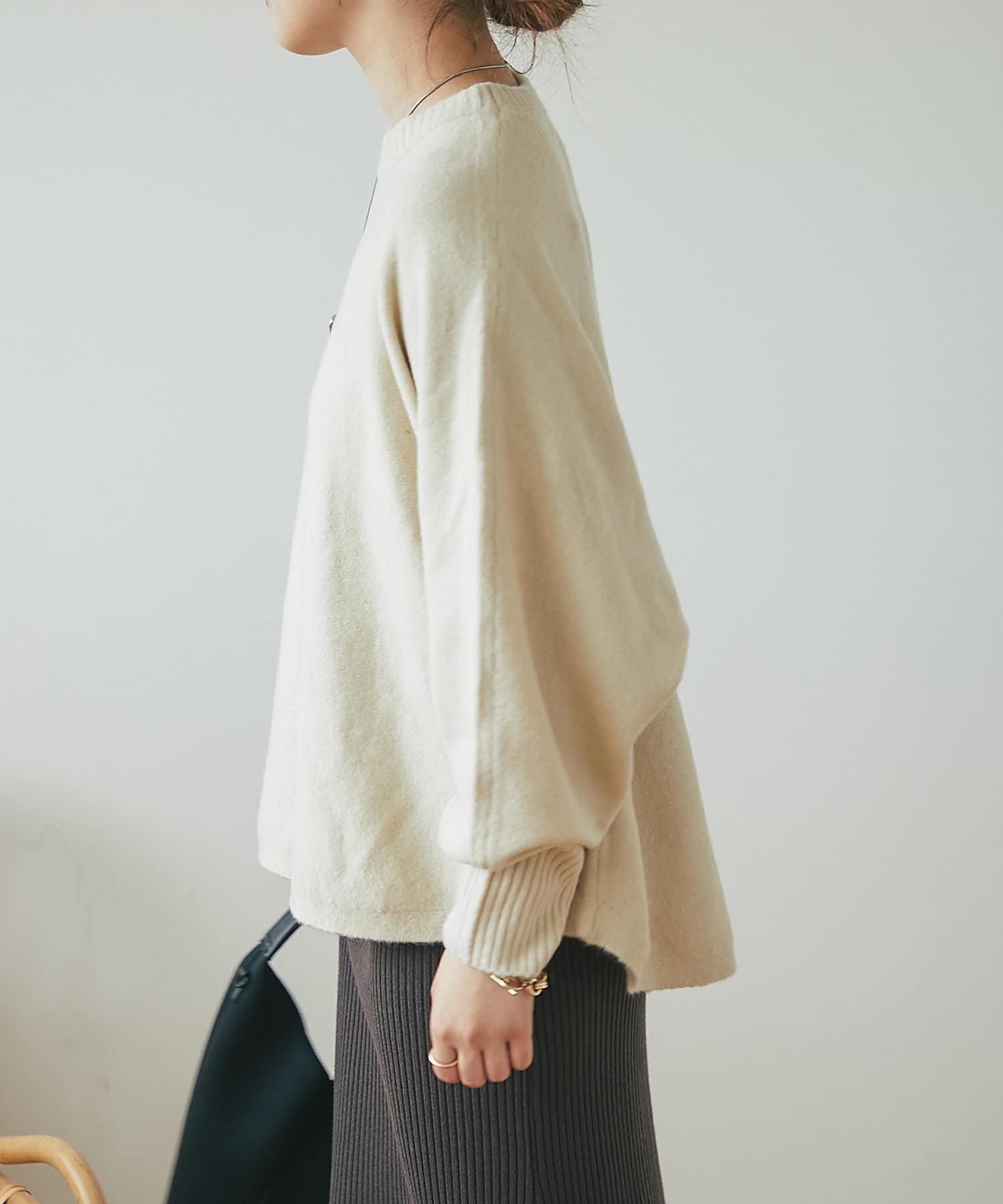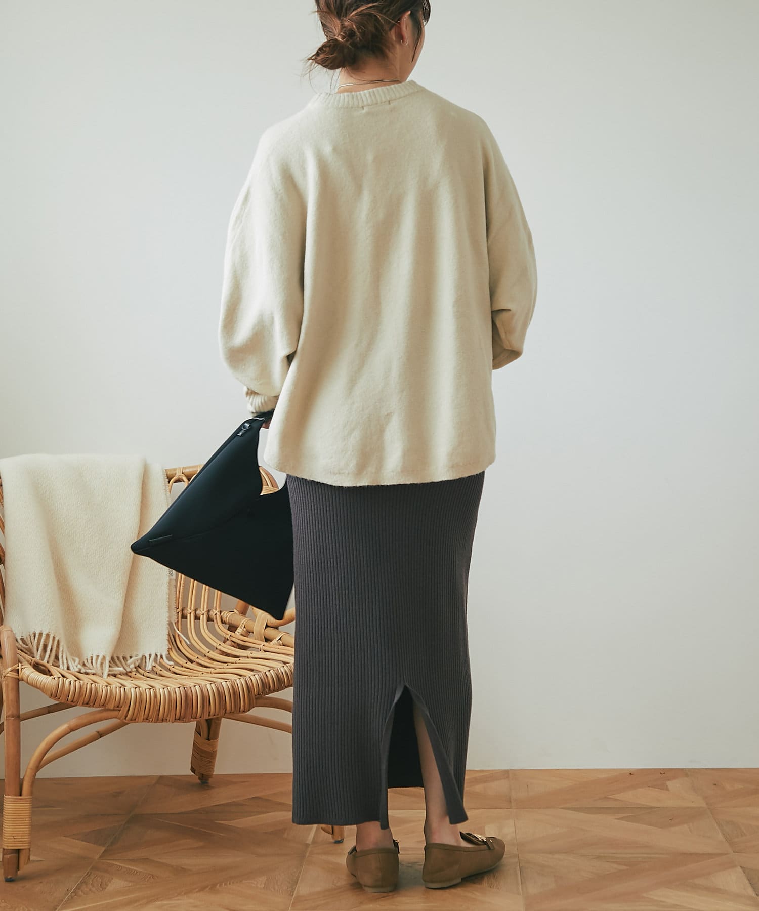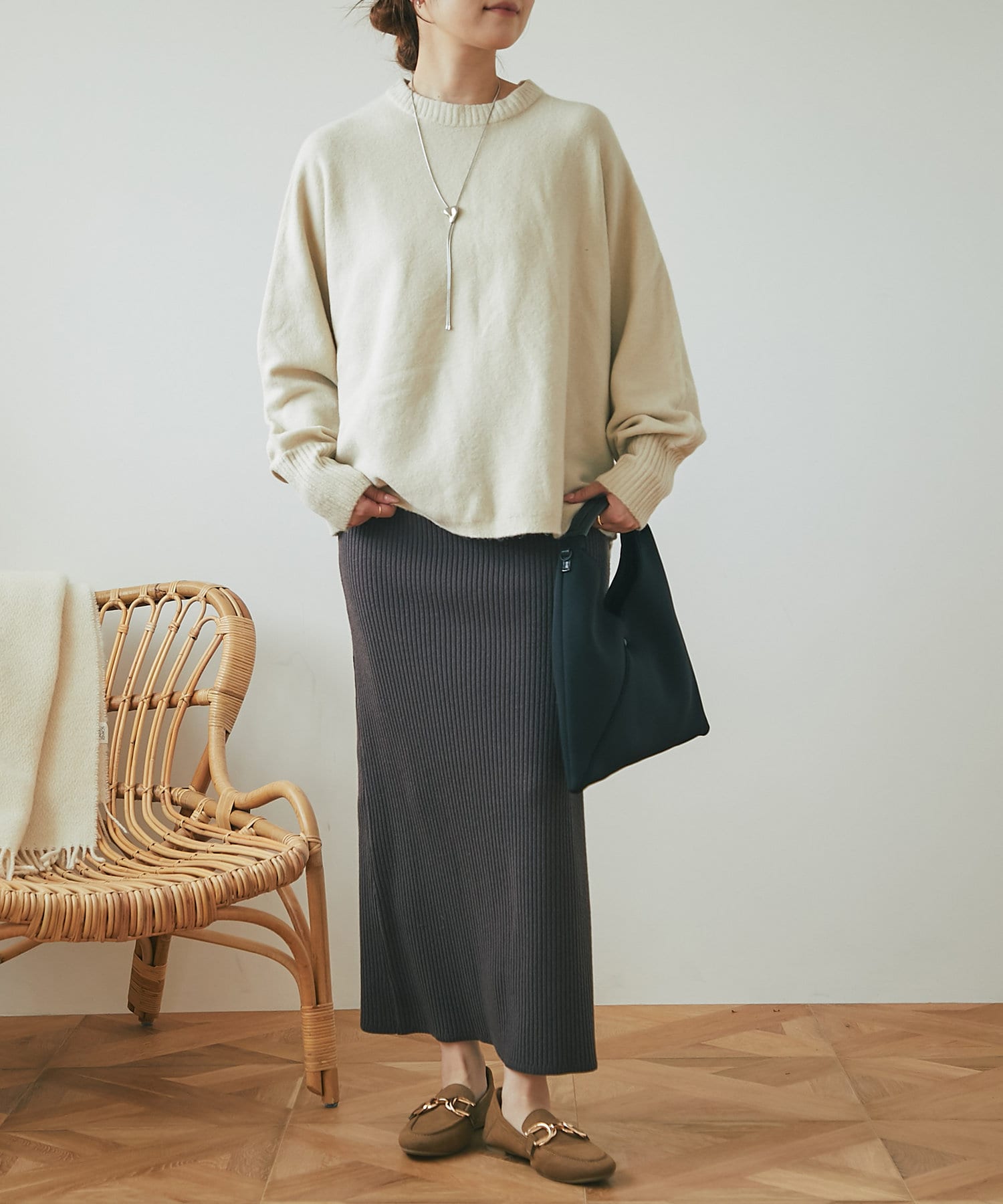 ・程良くオーバーサイズでボディラインを拾いにくいドルマンシルエットのニット