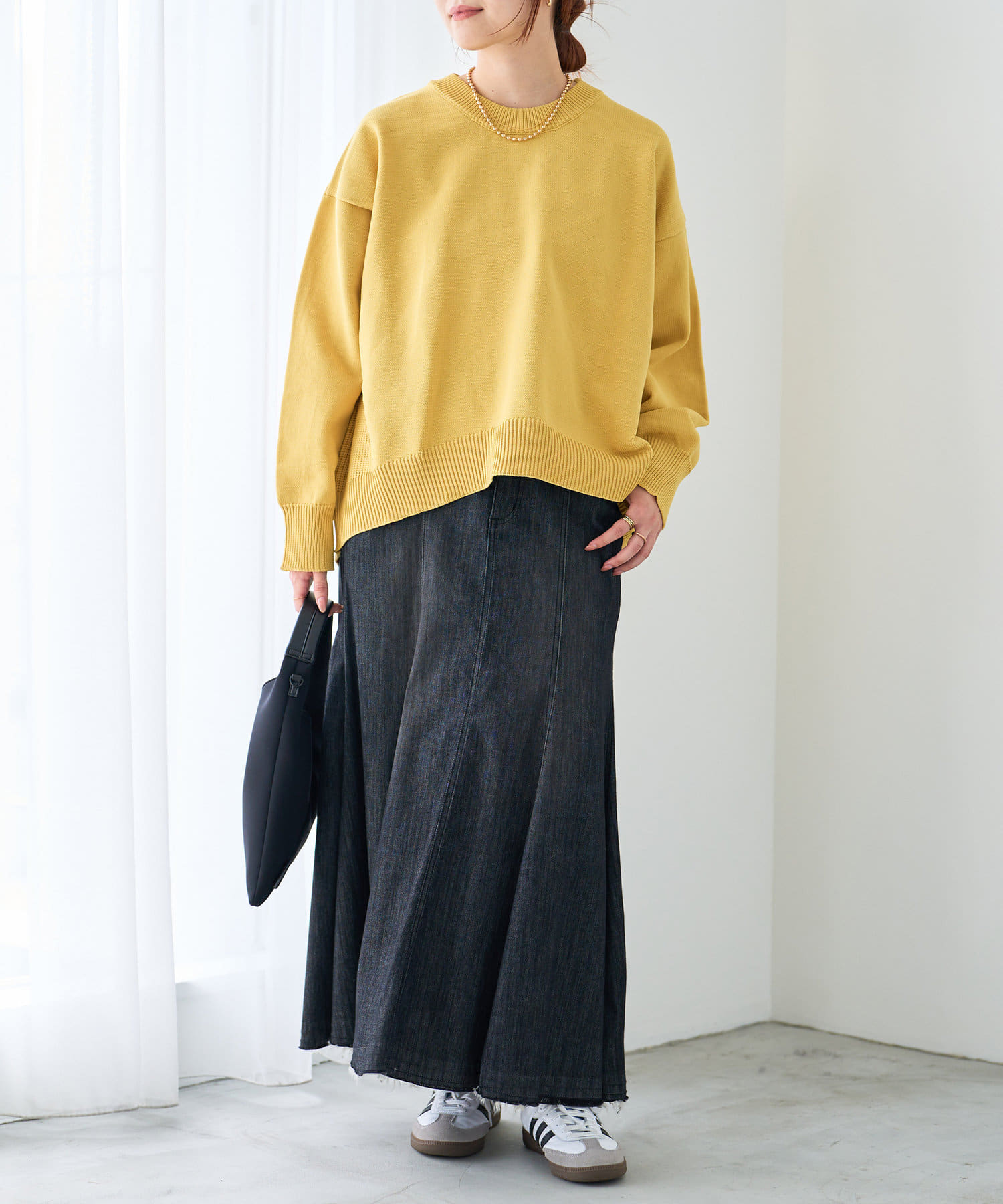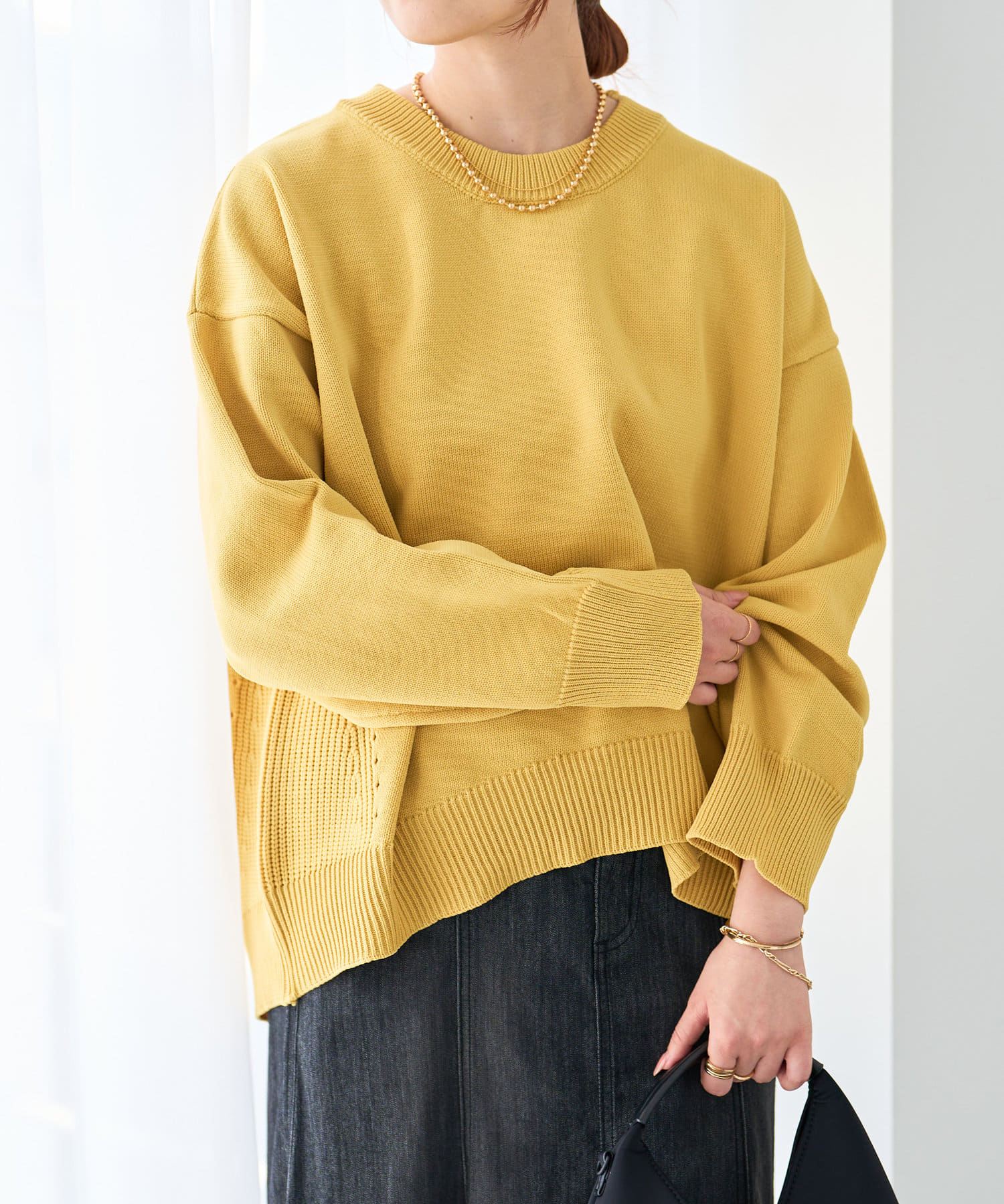 前後差のある着丈でこなれた着こなしが叶う、クルーネックニット