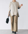 サイドのファスナーでスリットにできるのでスカートにもパンツにも着まわしやすいです。