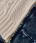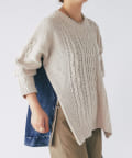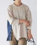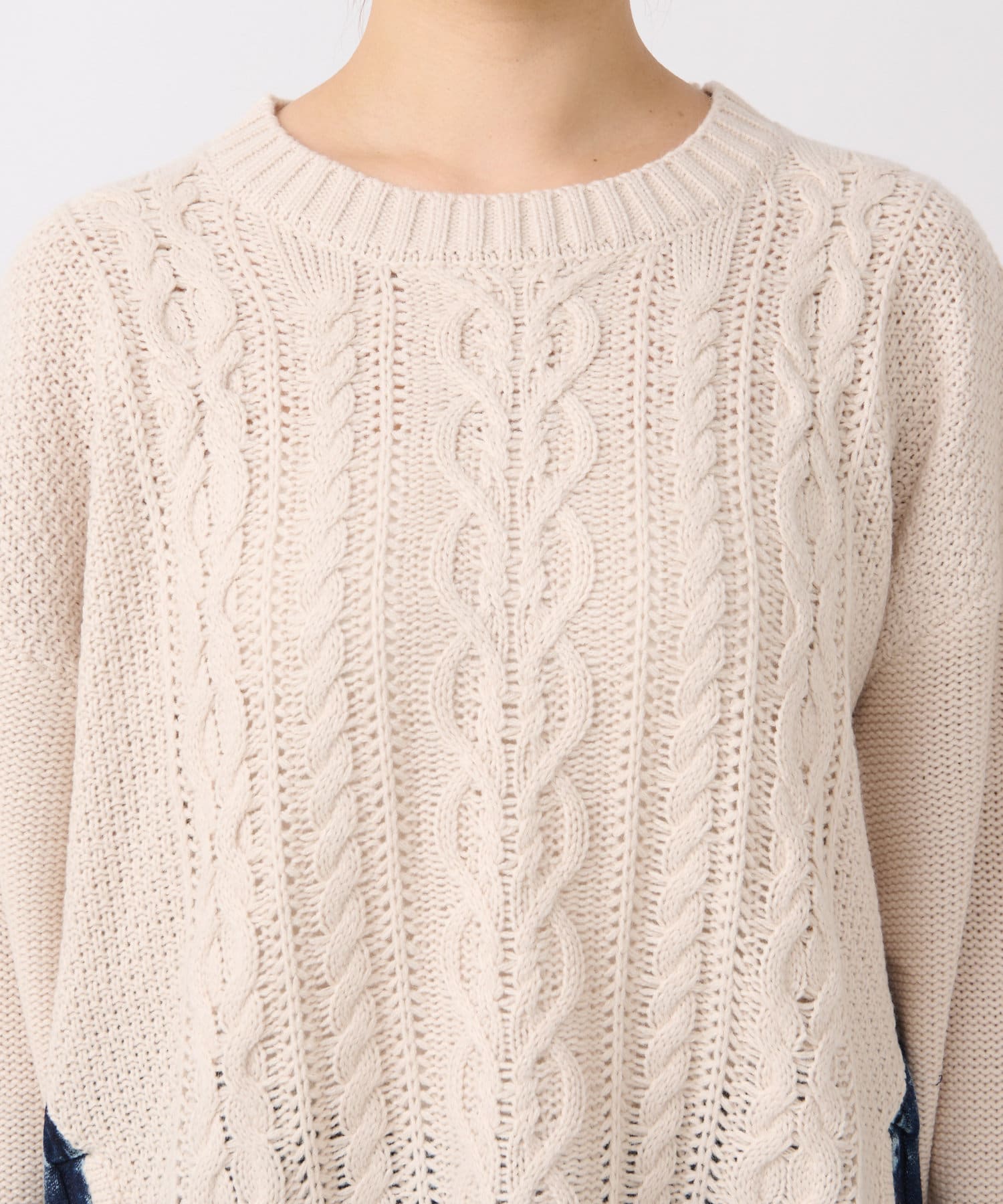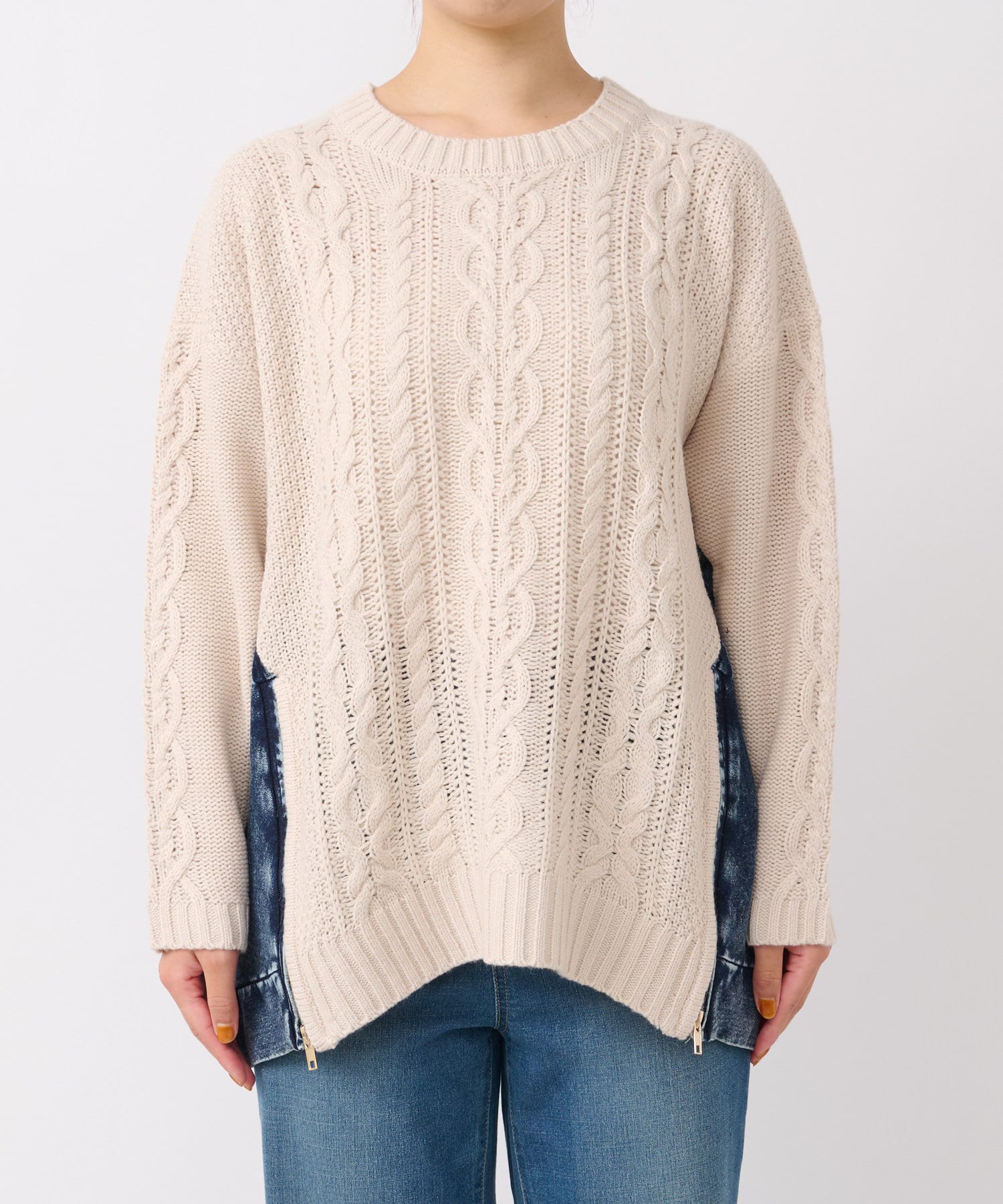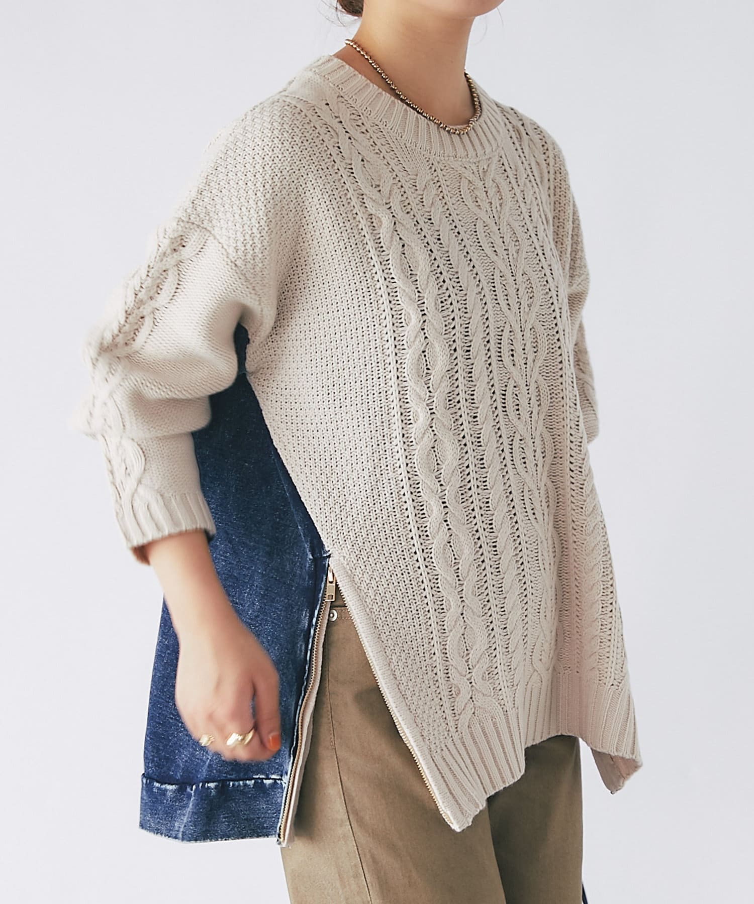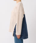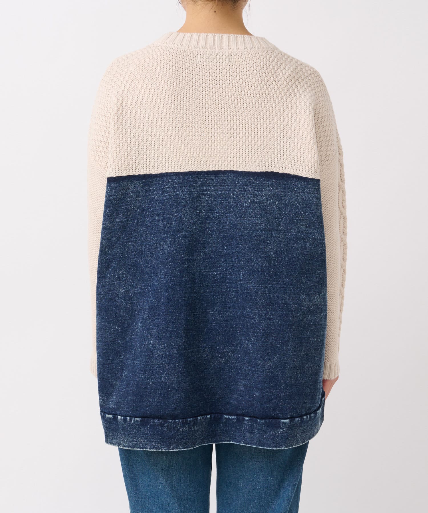 ざっくりニットとデニムシャツのドッキングがトレンドライク