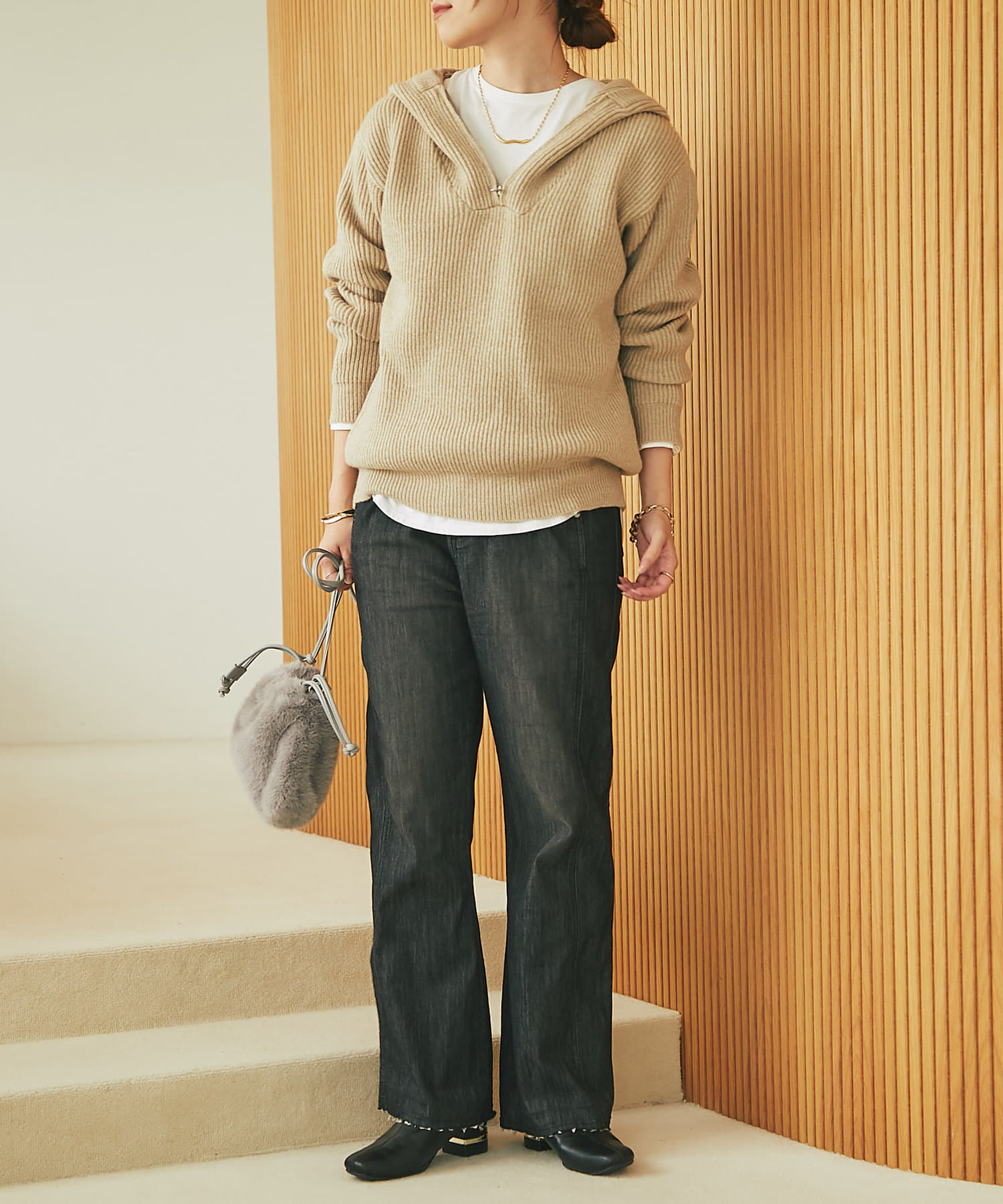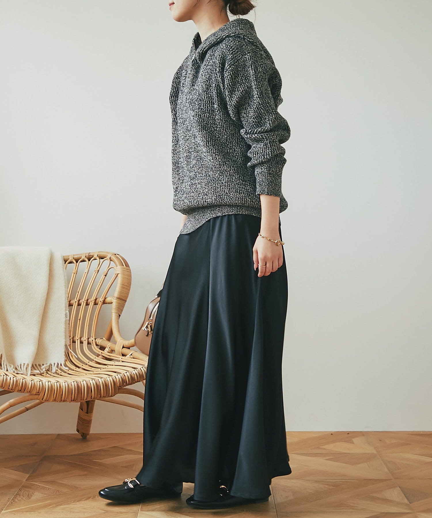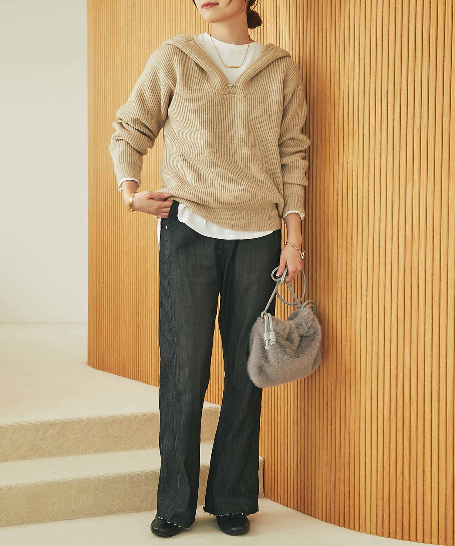 ・起毛がかった暖かみのある柔らかい風合いのニット素材がゆったりリラクシーな雰囲気