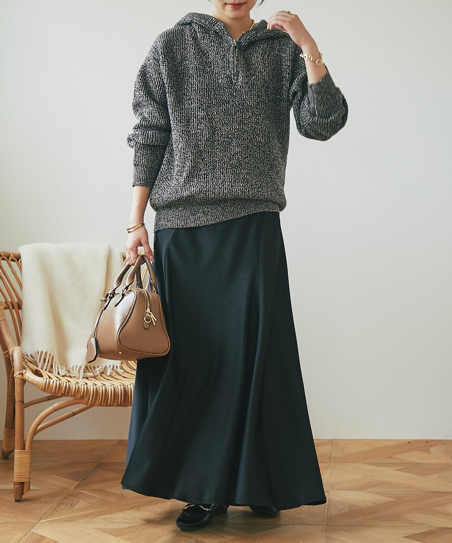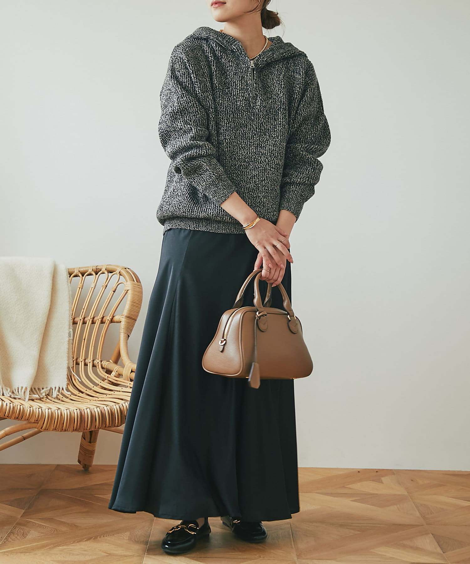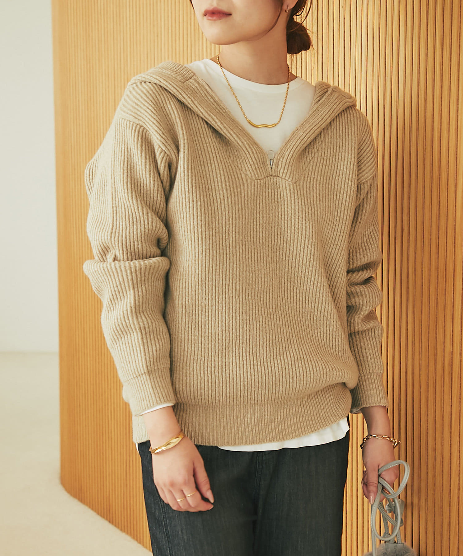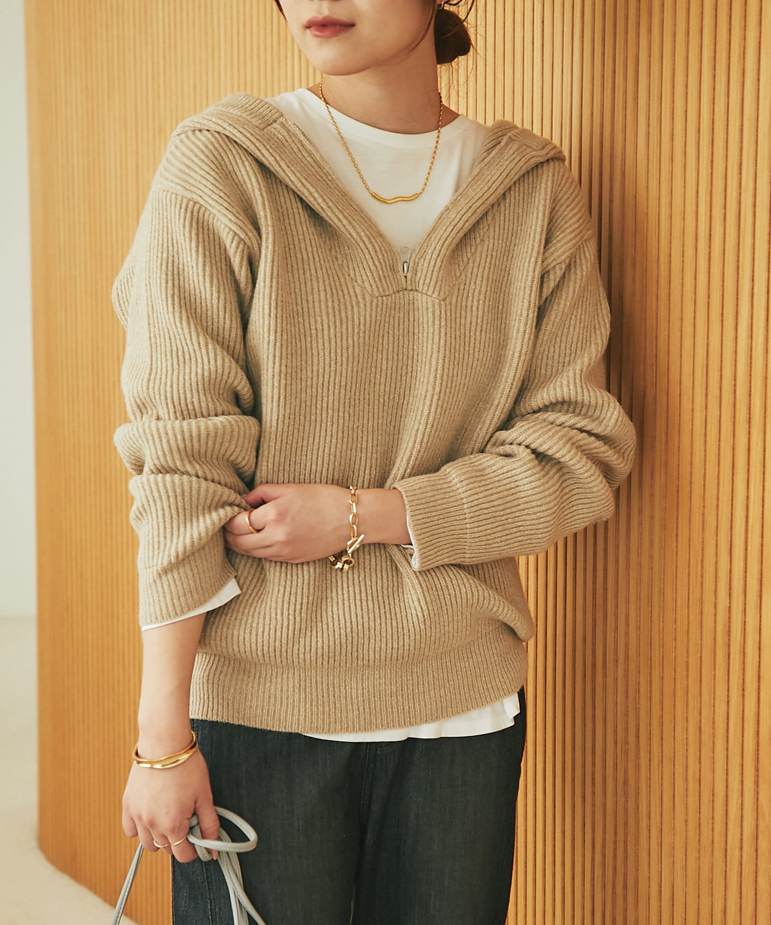 ・起毛がかった暖かみのある柔らかい風合いのニット素材がゆったりリラクシーな雰囲気