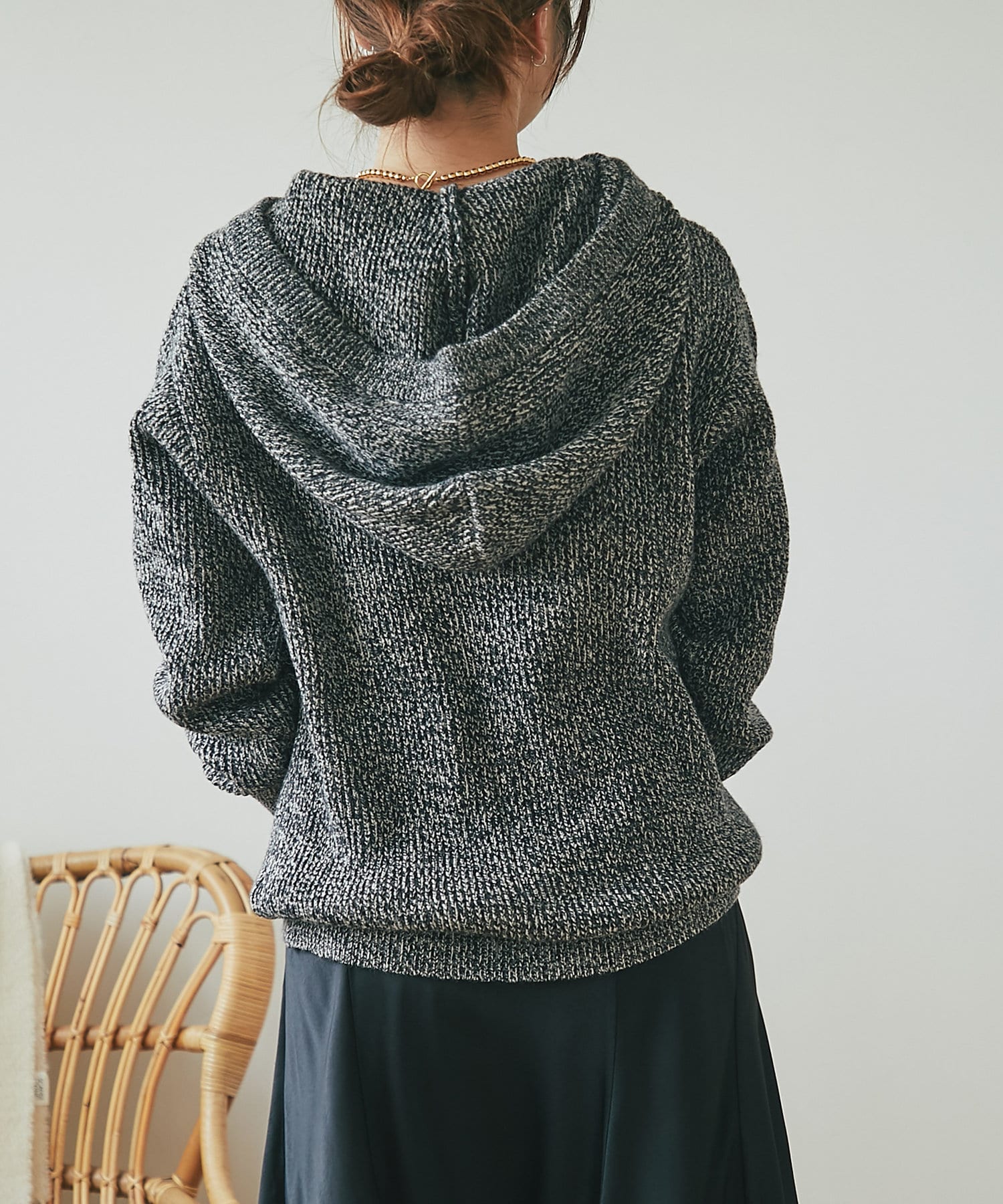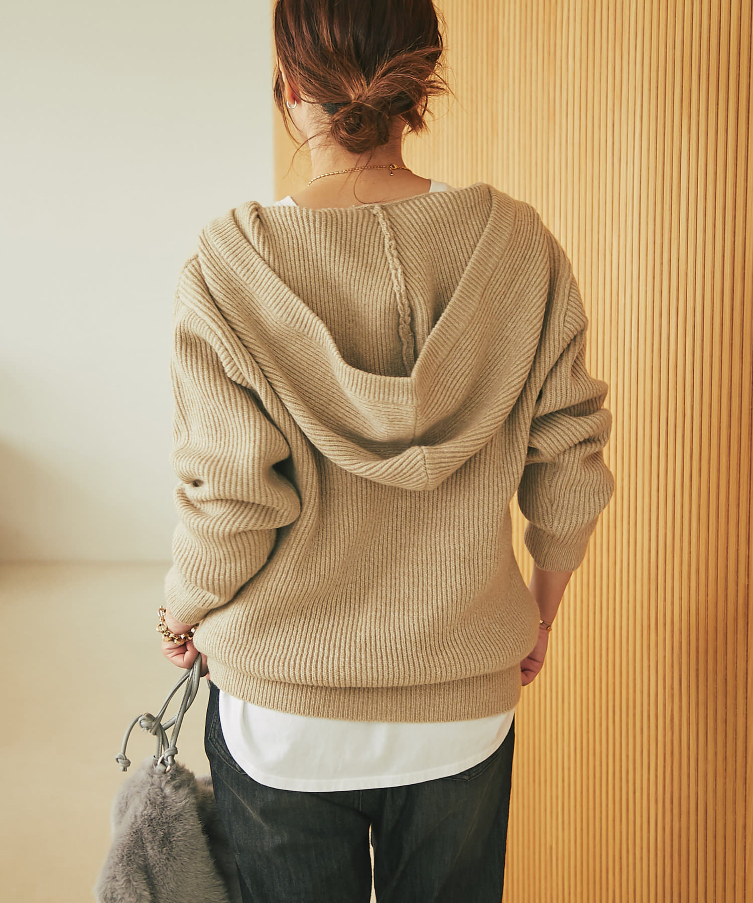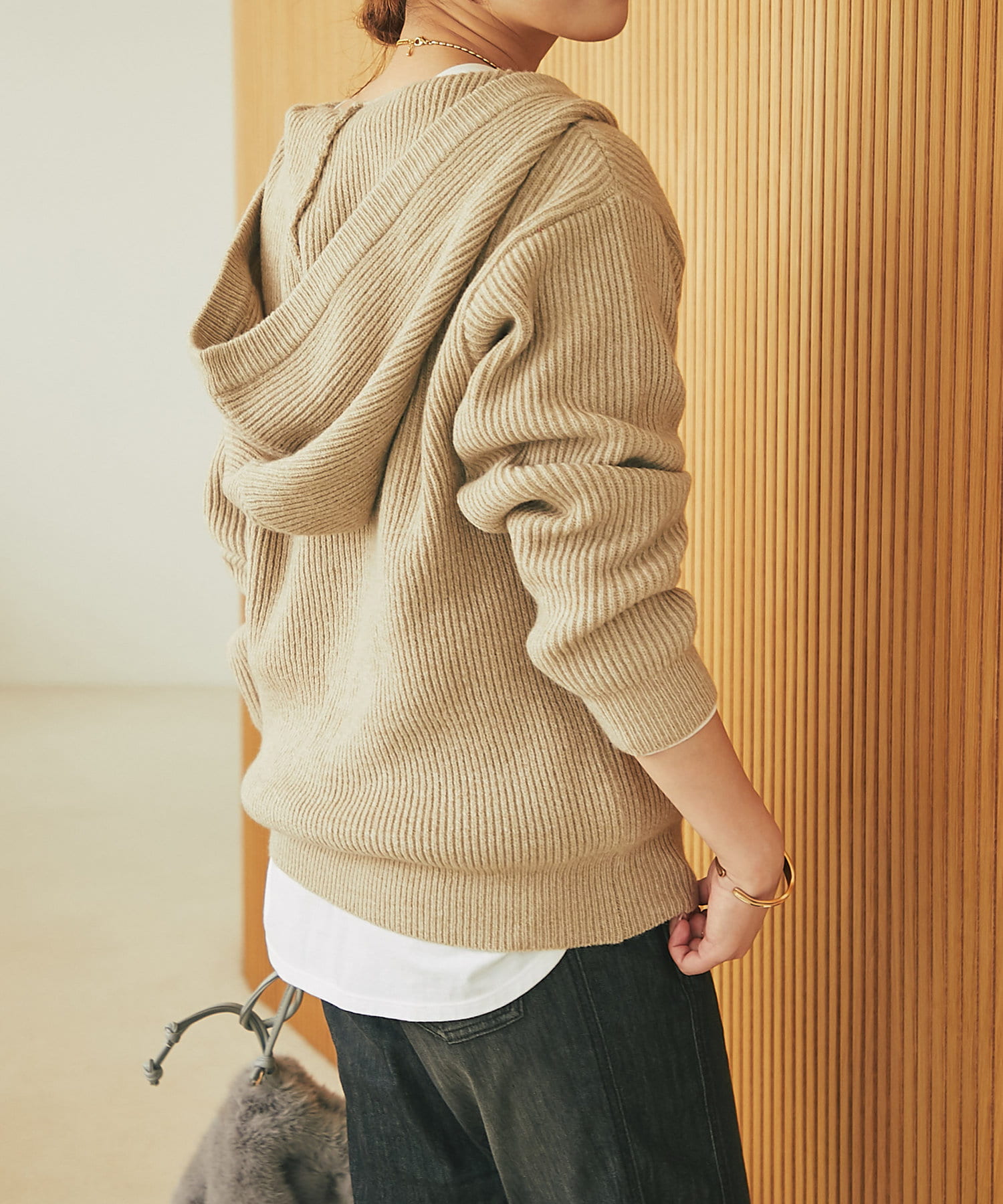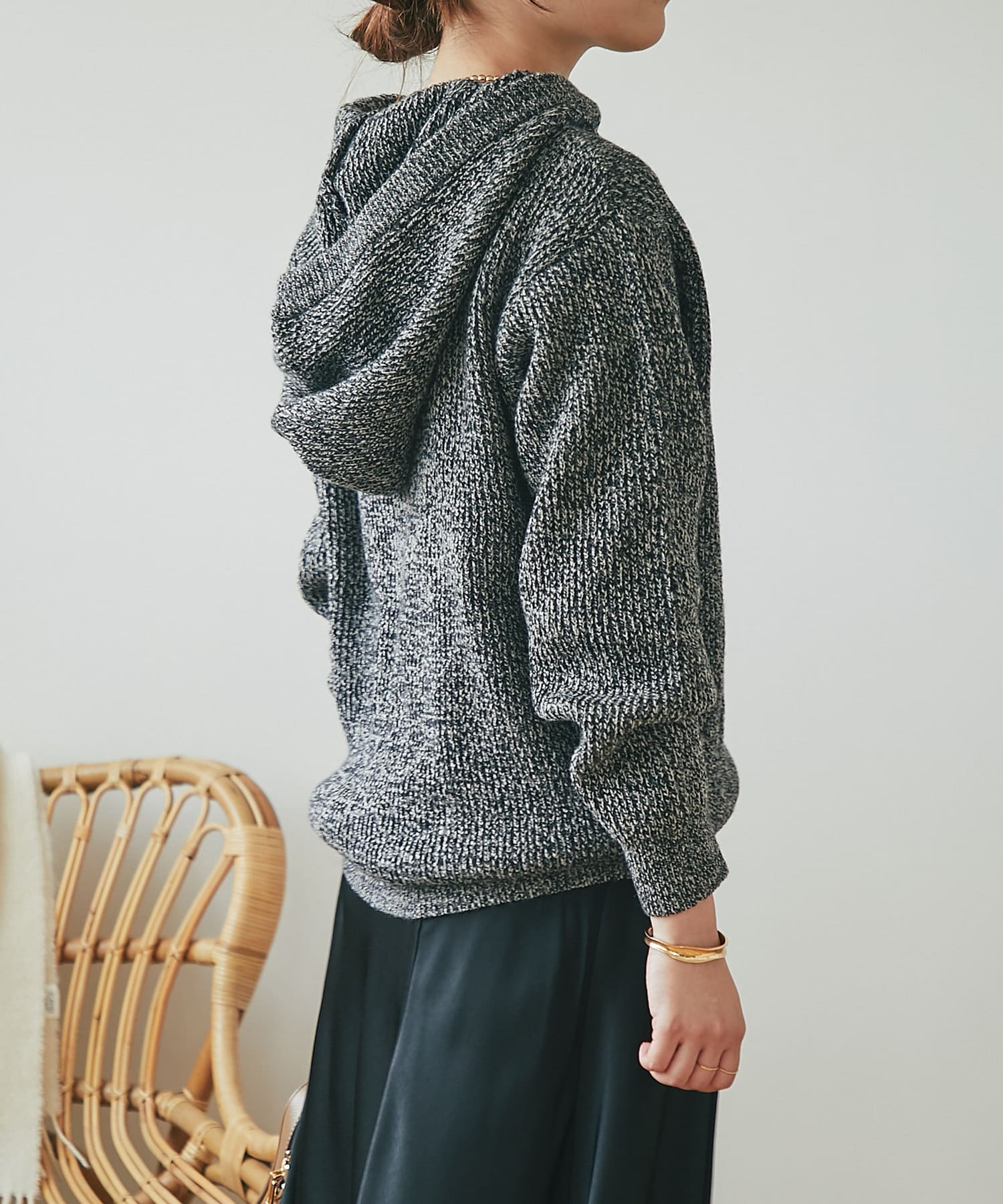 ・寒い季節の着こなしに映える、ふんわりと毛足のあるアルパカタッチのニットフーディ