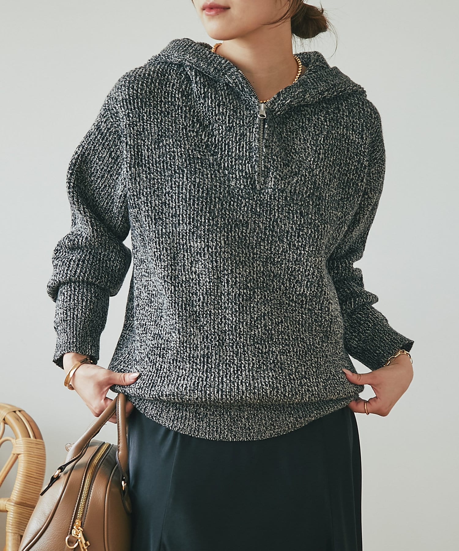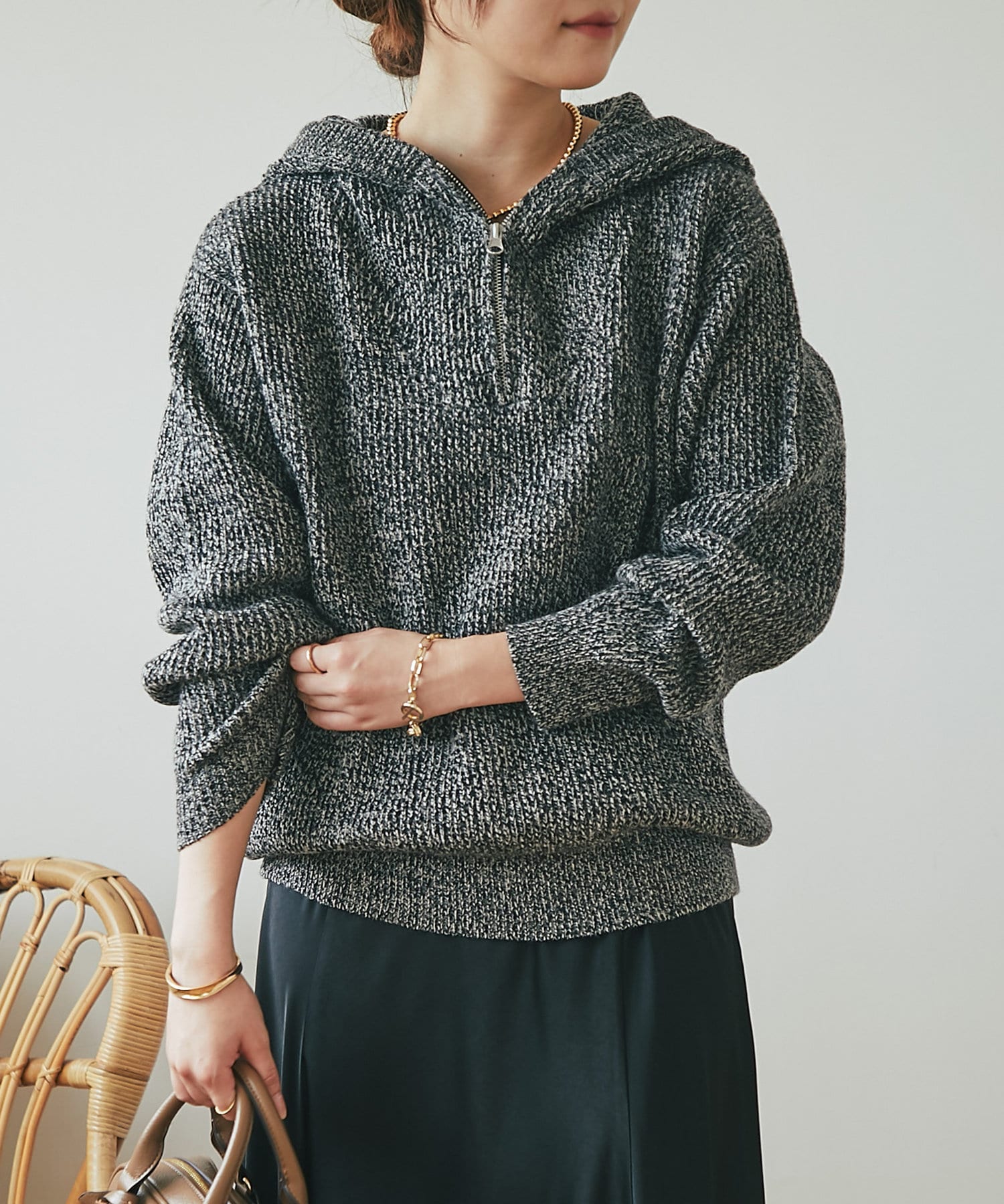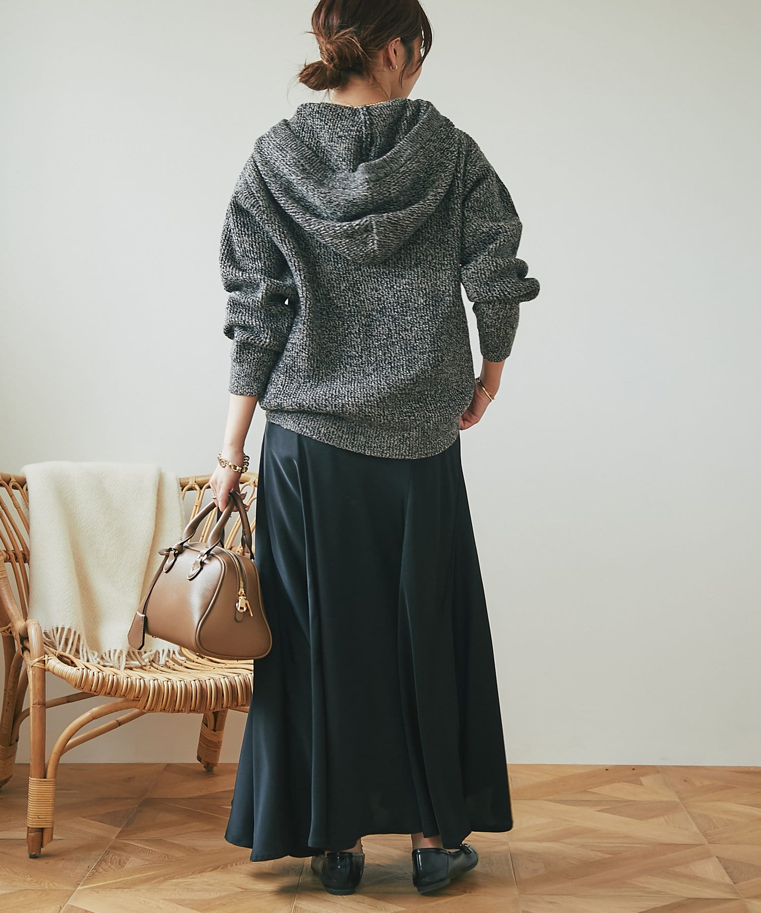 ・寒い季節の着こなしに映える、ふんわりと毛足のあるアルパカタッチのニットフーディ
