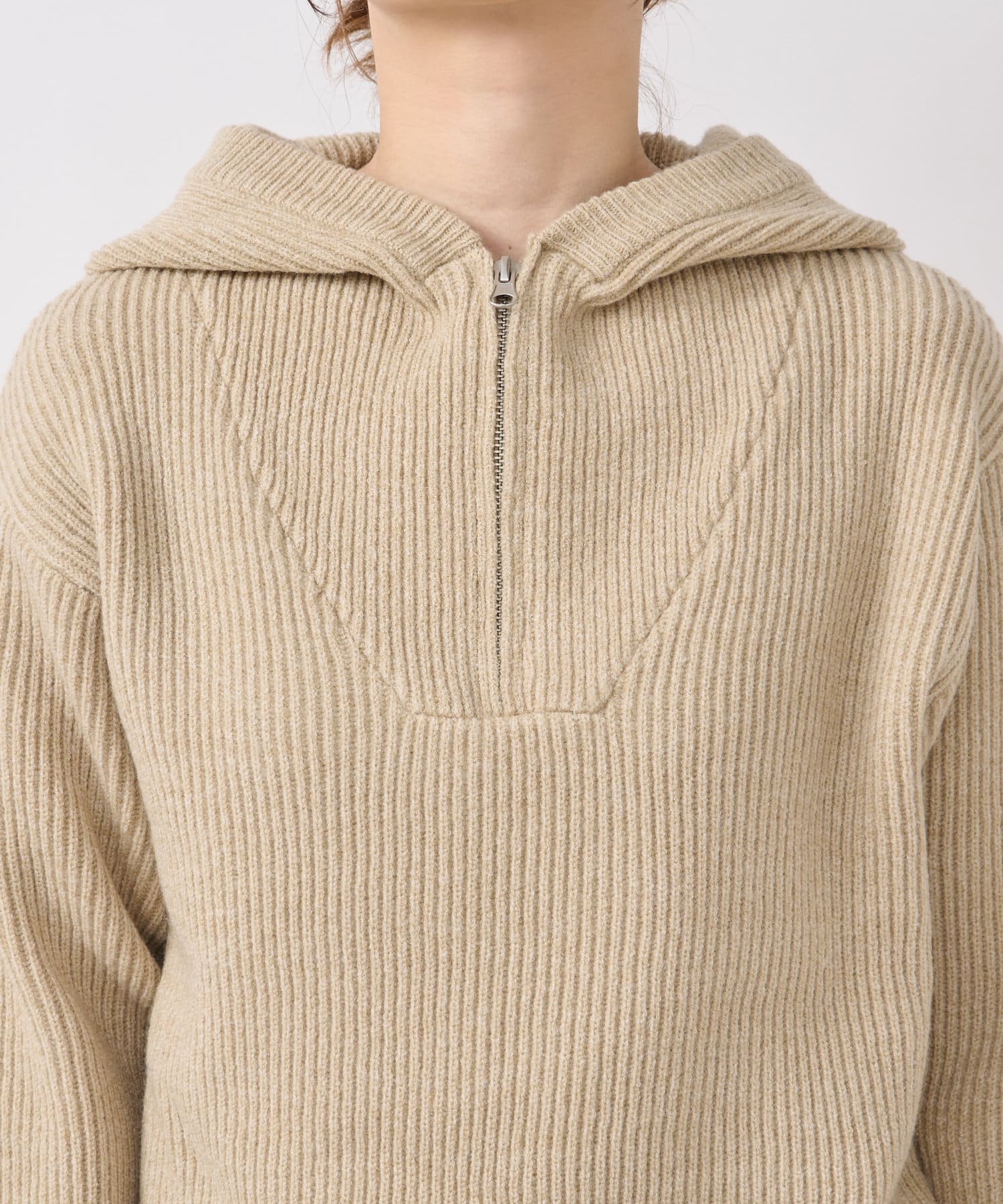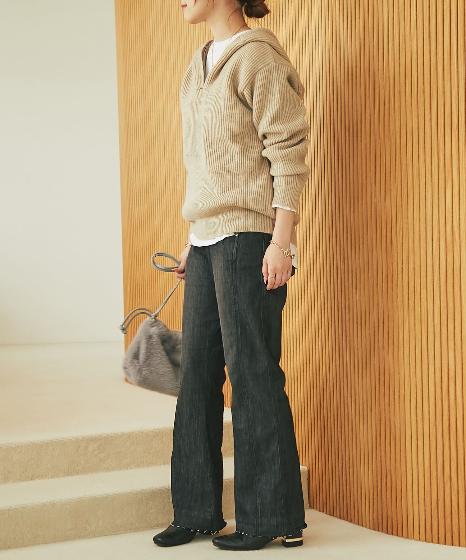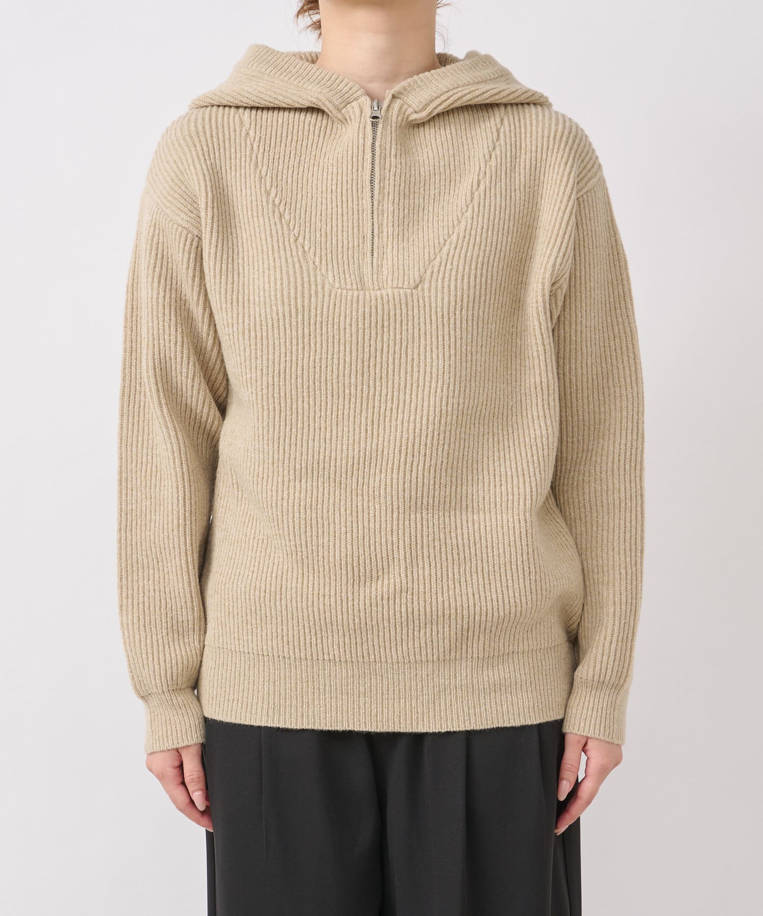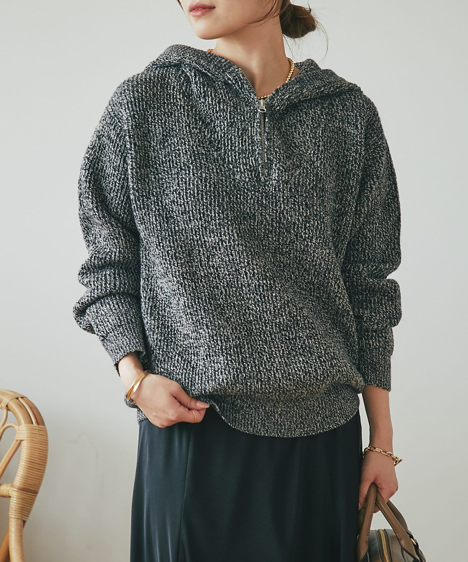 ・寒い季節の着こなしに映える、ふんわりと毛足のあるアルパカタッチのニットフーディ