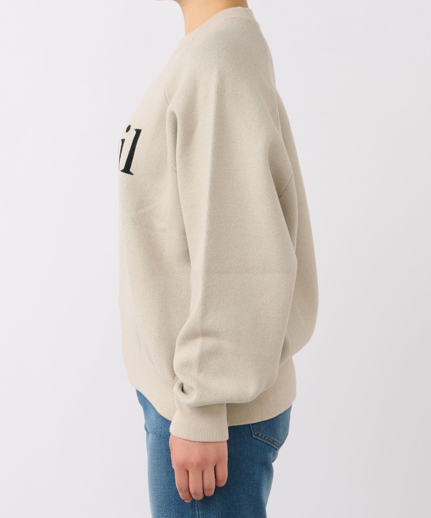 可愛いロゴとシンプル配色の程よいオーバーサイズニット