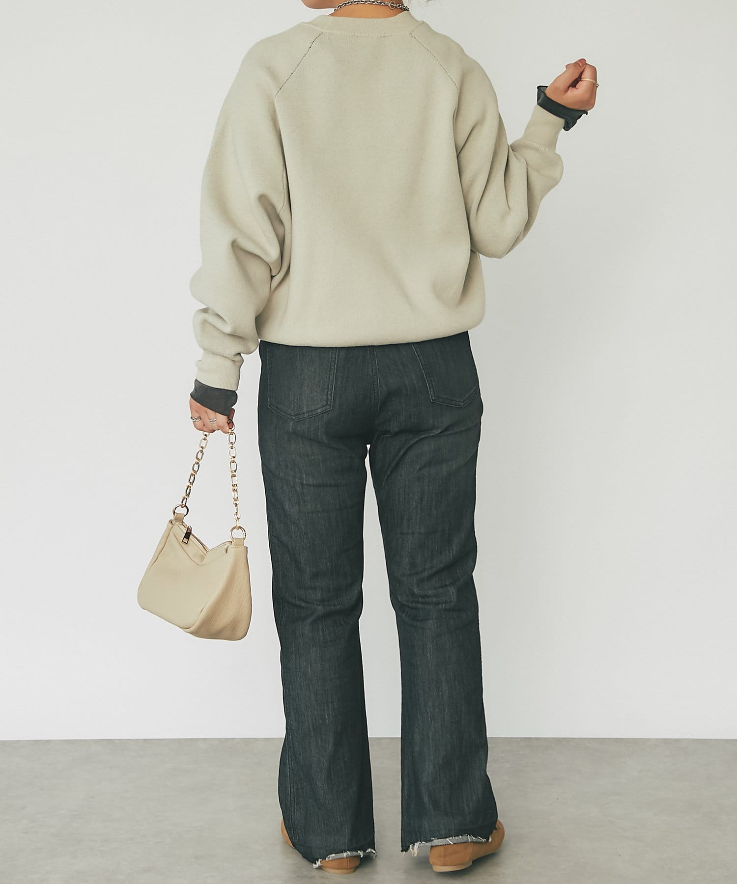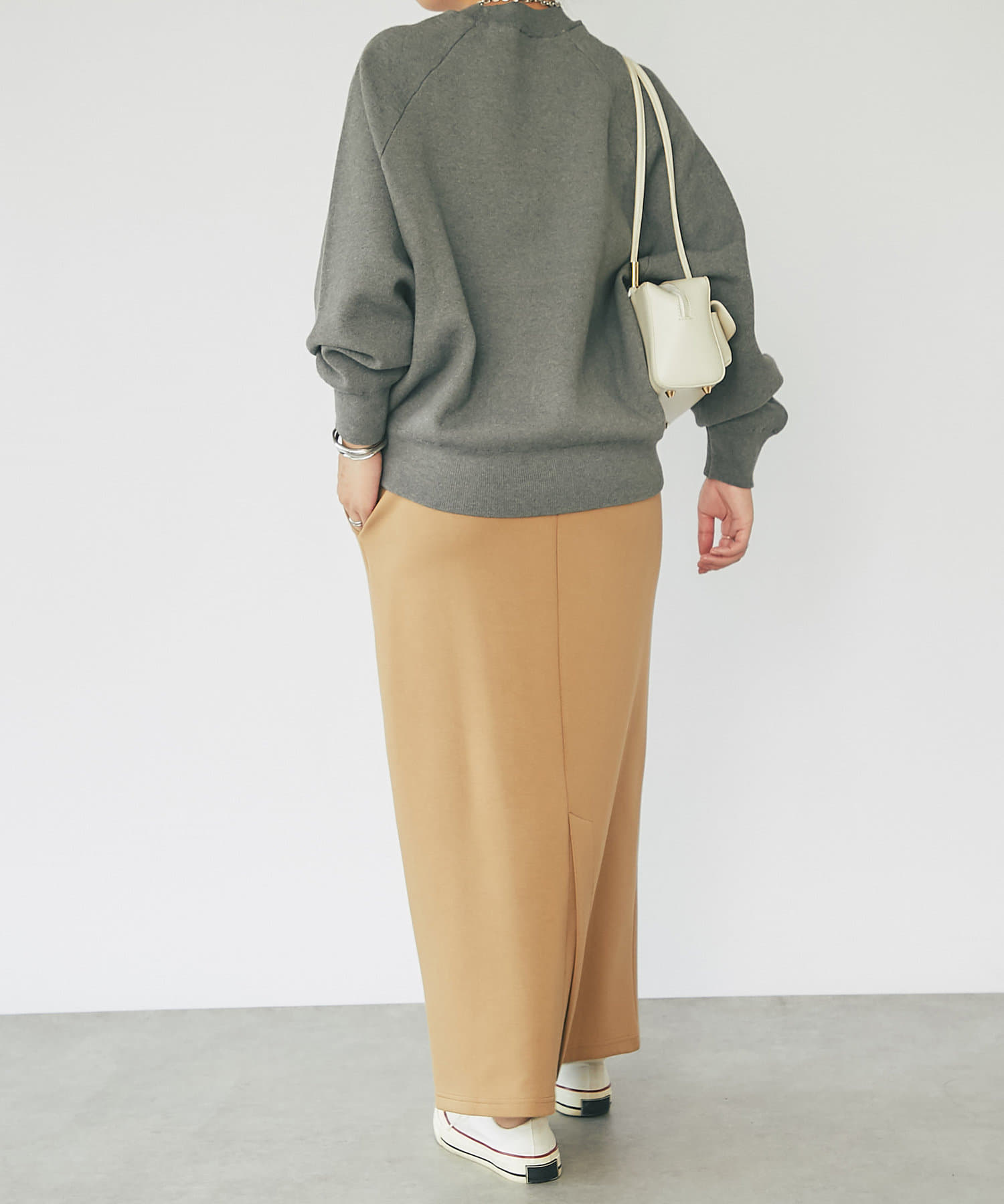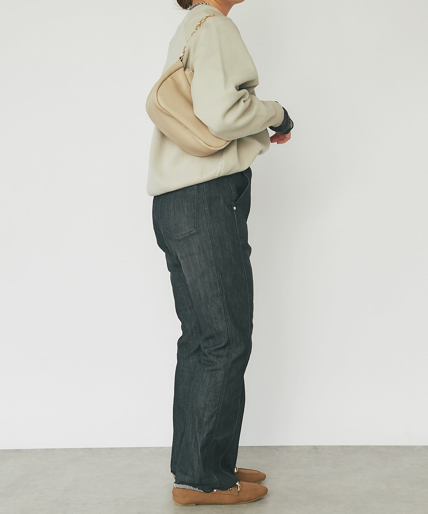 ・身幅が大きくゆったりとしたシルエットは、どこかレトロでメンズライクな雰囲気