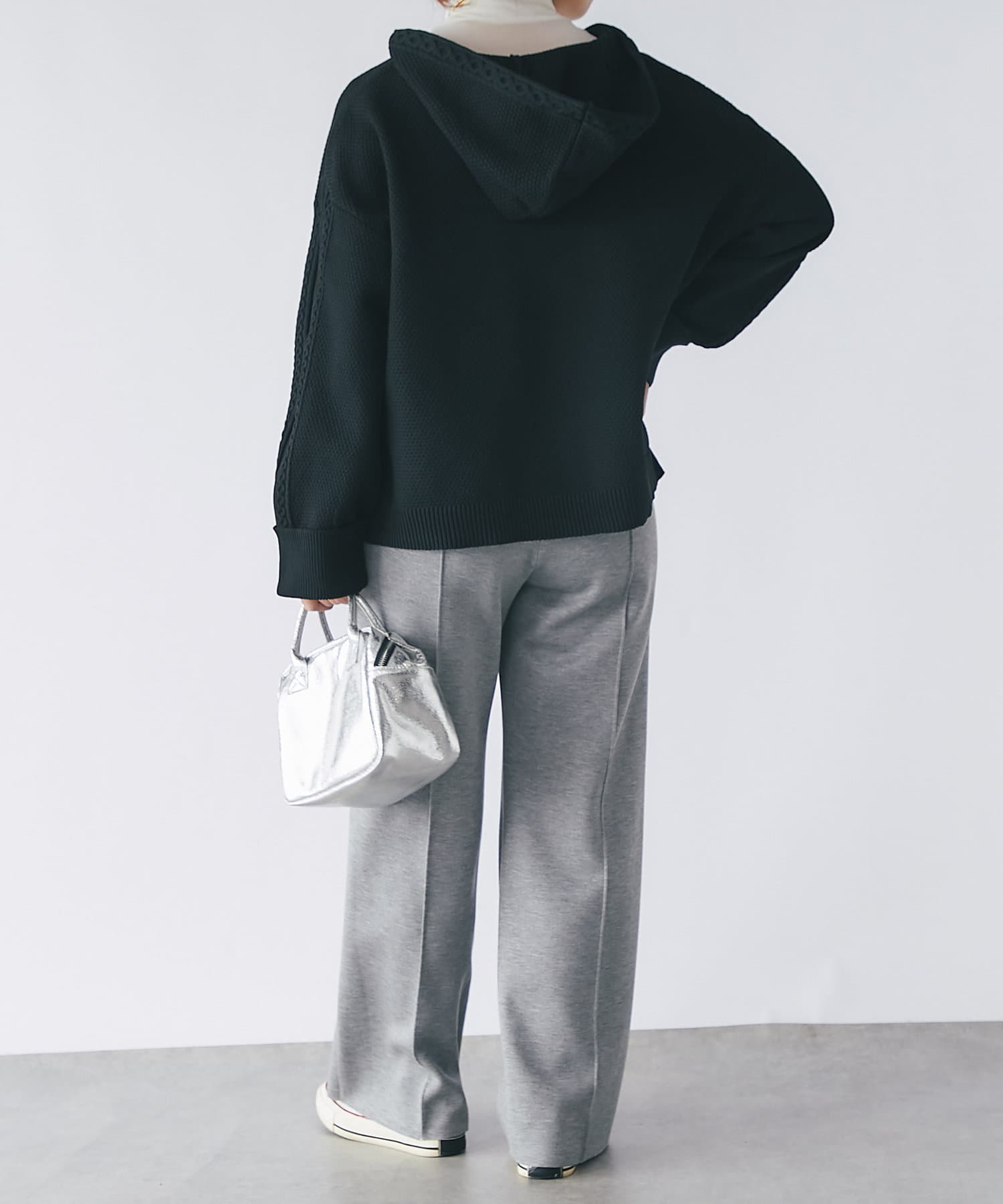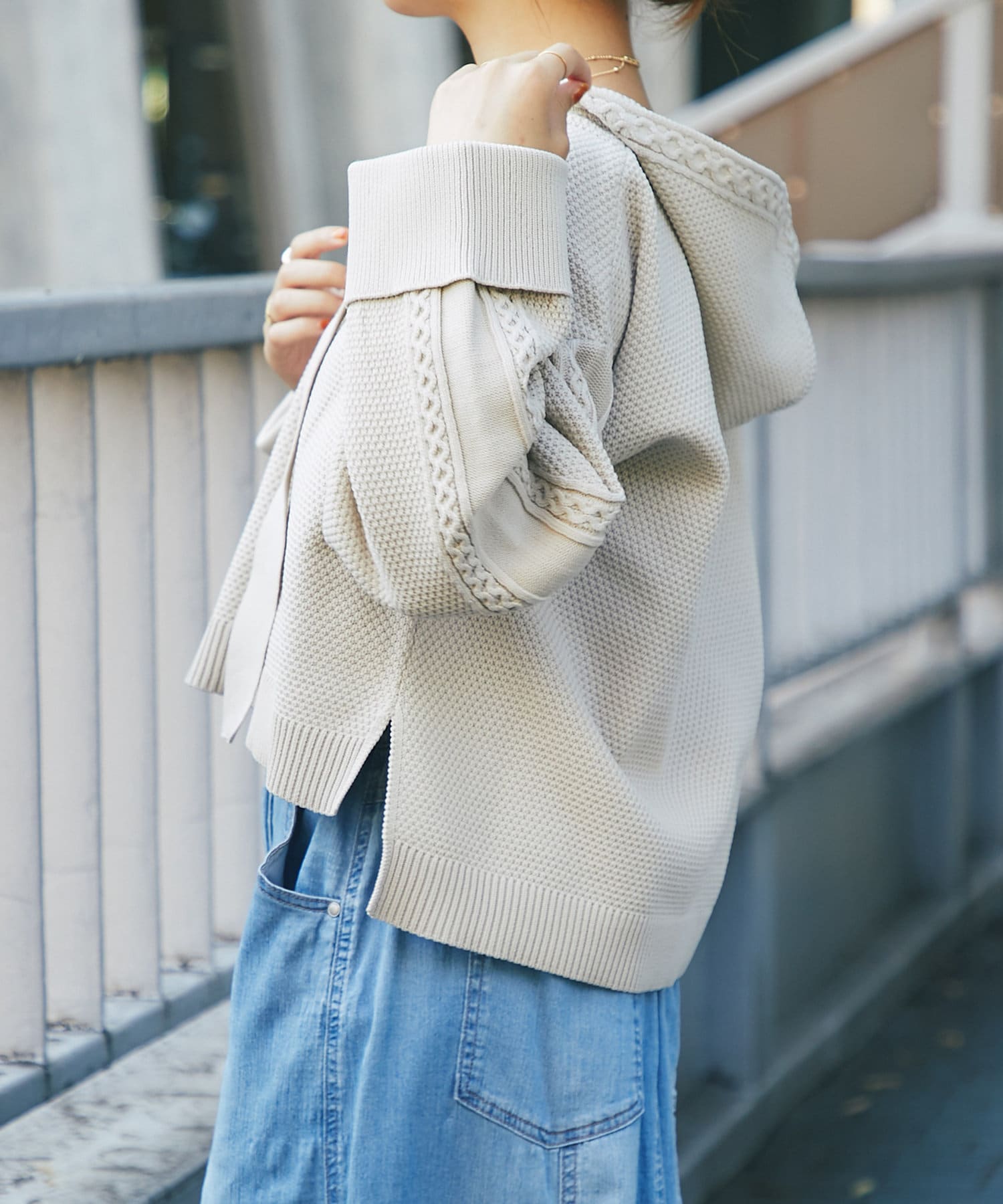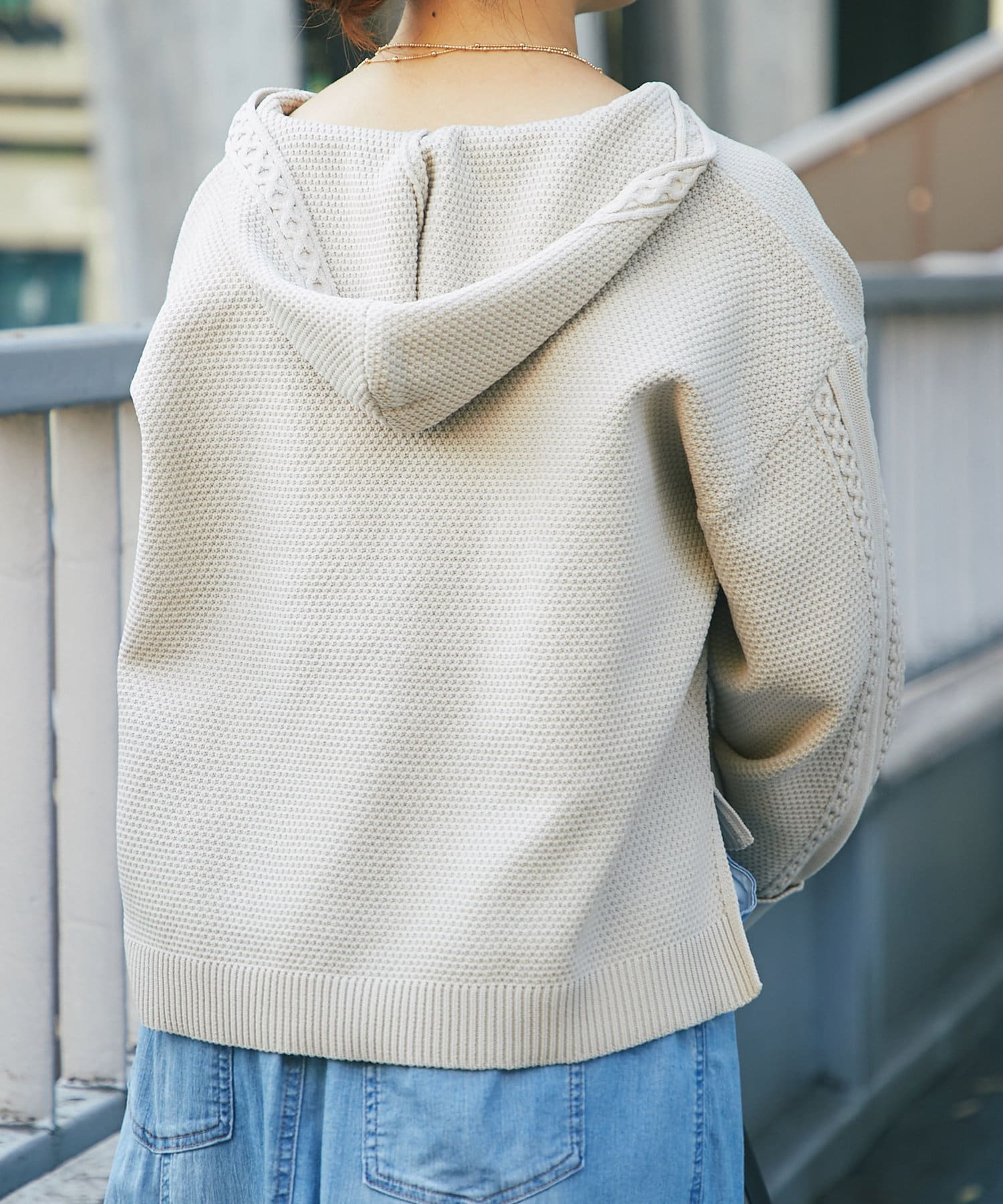 ・ニットで暖かく、ゆるっとした大人のリラックス感で着られるフーディ型ニット