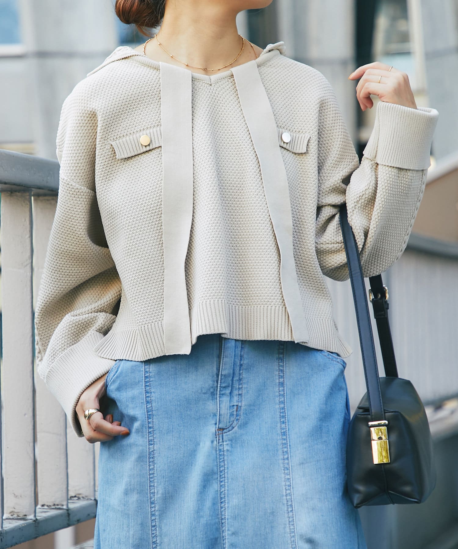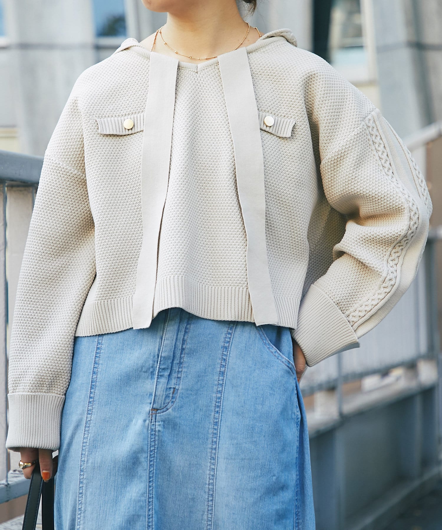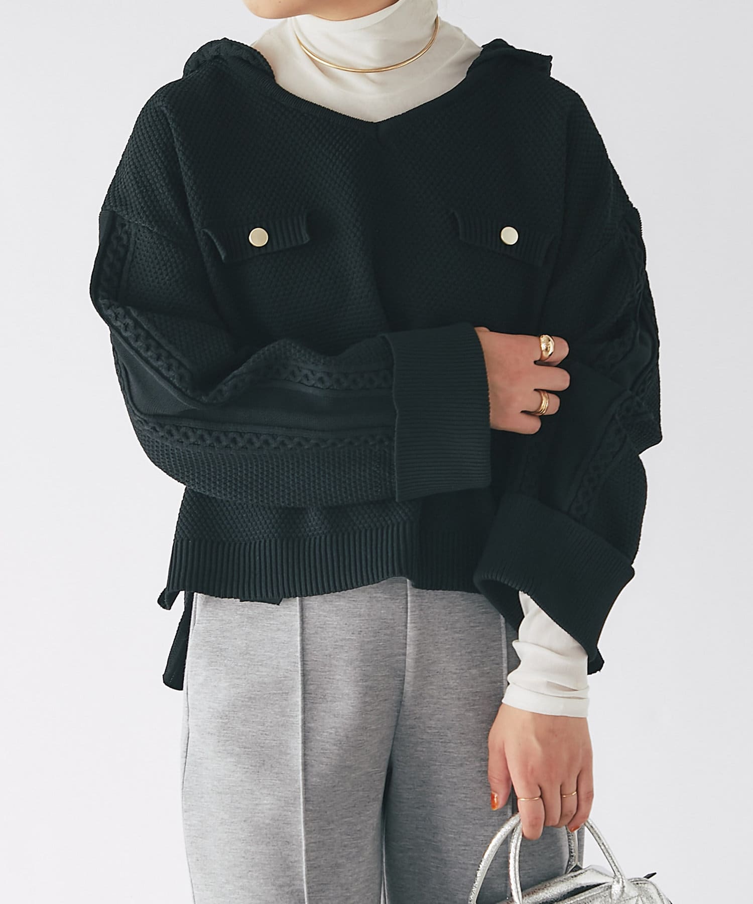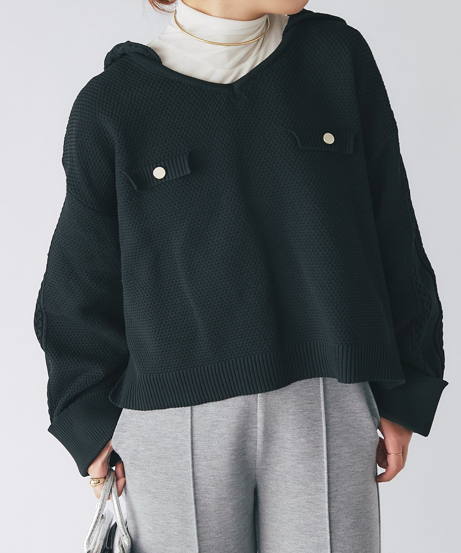・ニットで暖かく、ゆるっとした大人のリラックス感で着られるフーディ型ニット