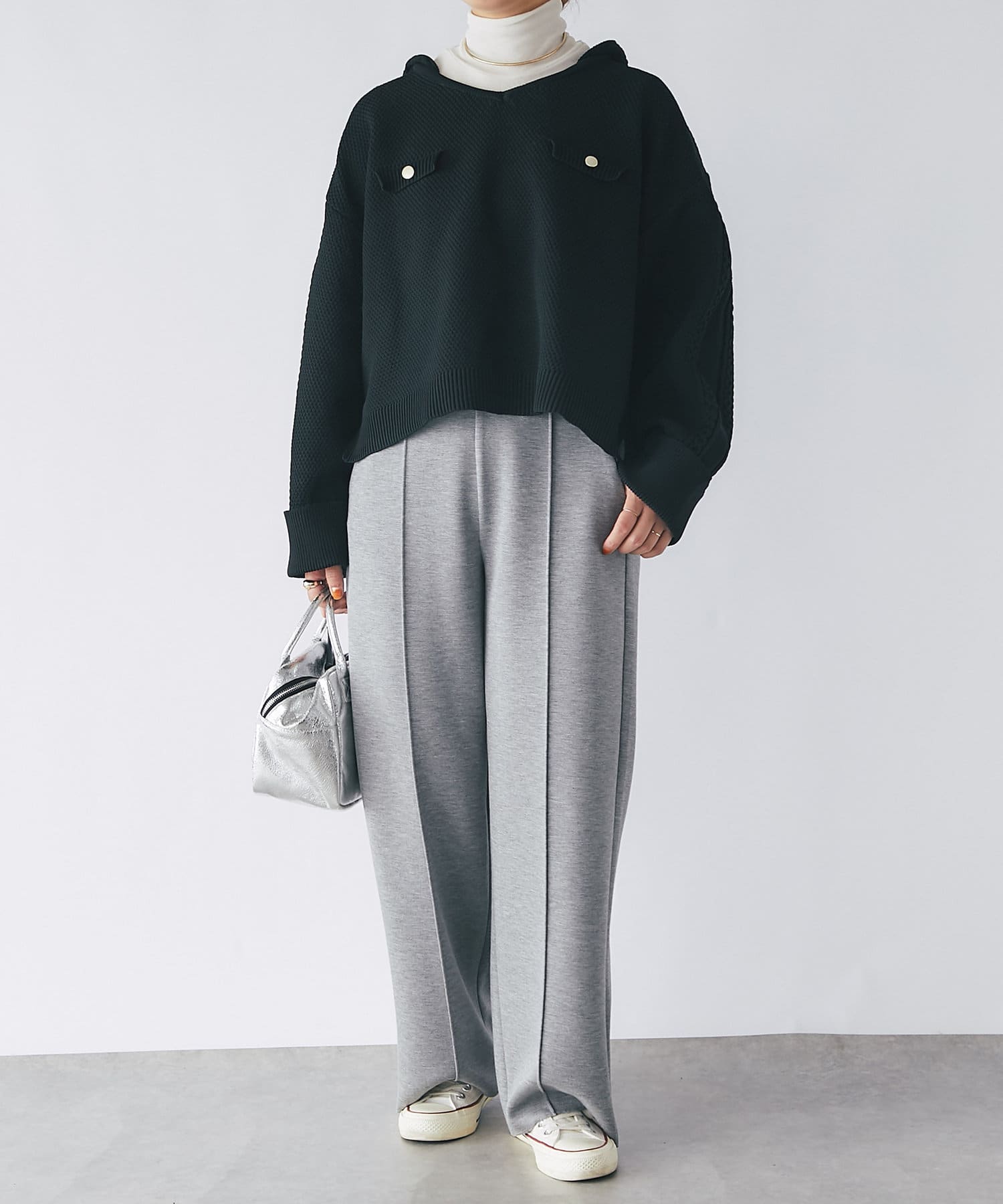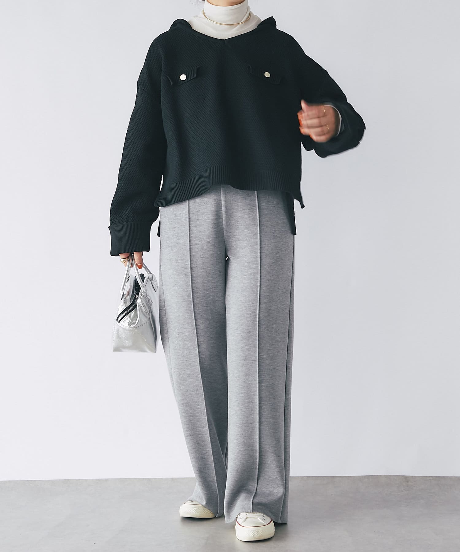 ボトムスはスカートでもパンツでも合うシルエットで、着回し力の高さも優秀