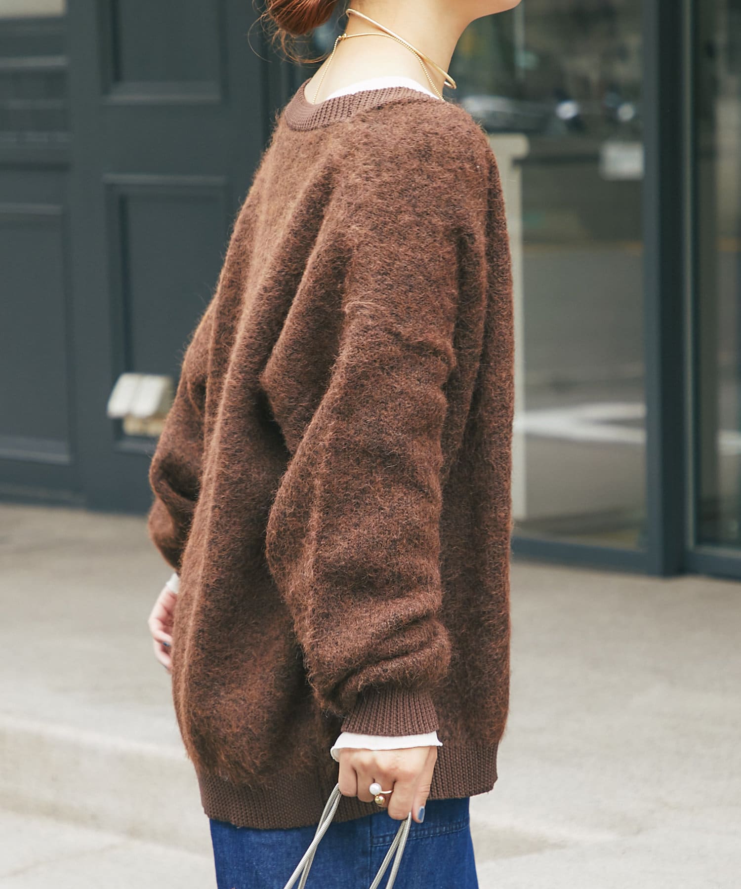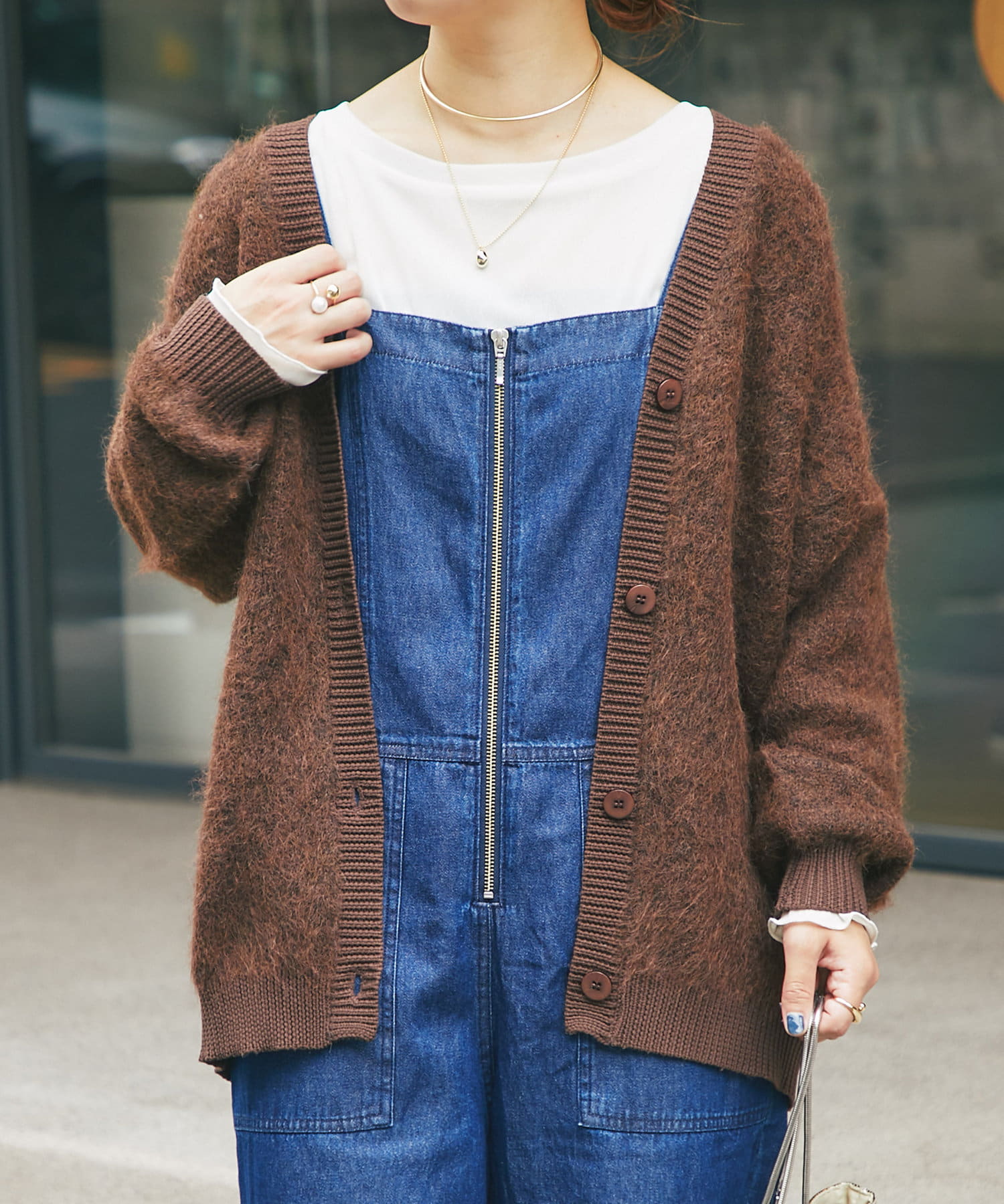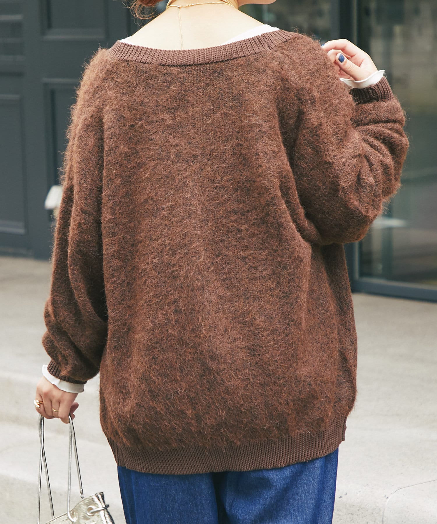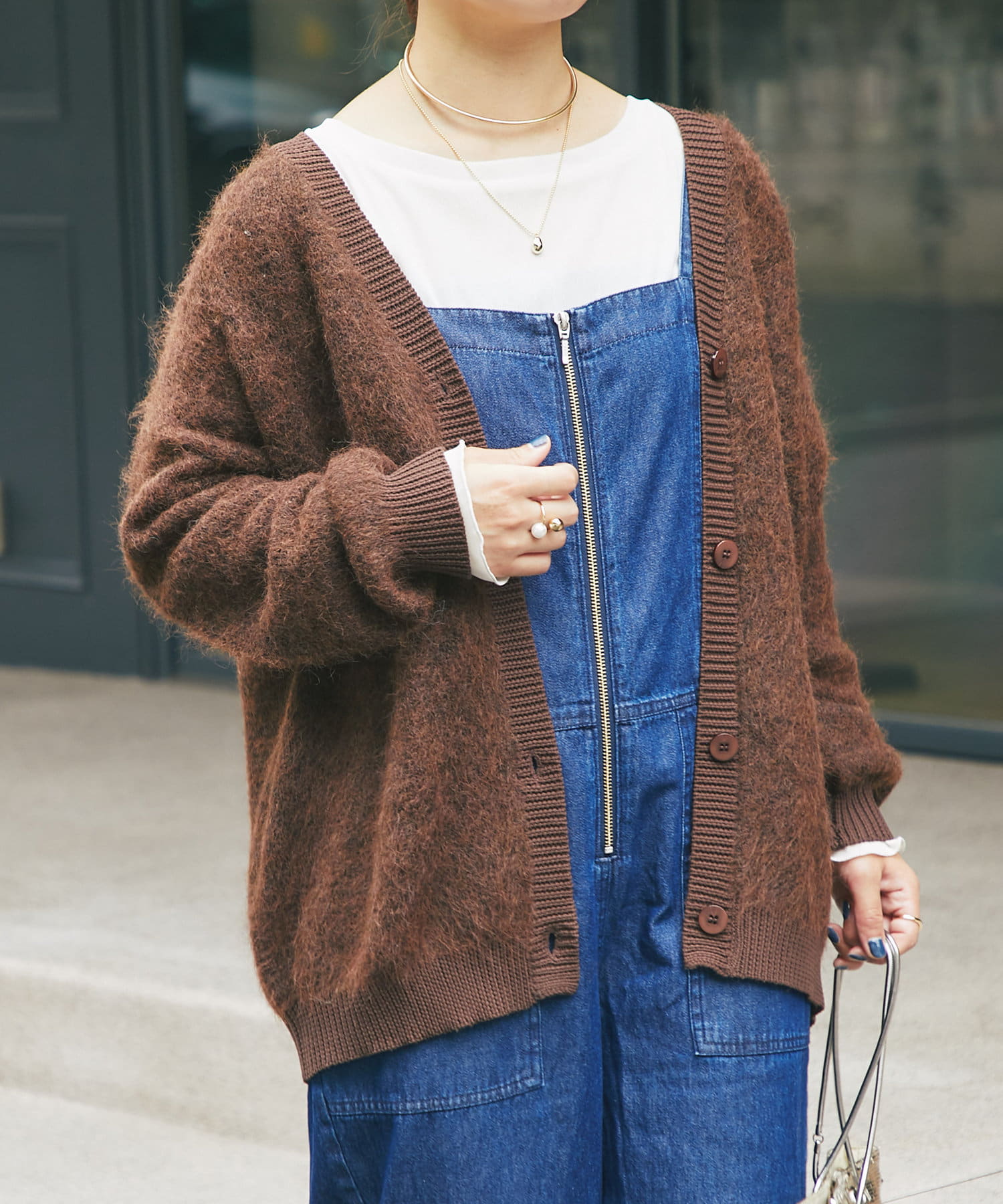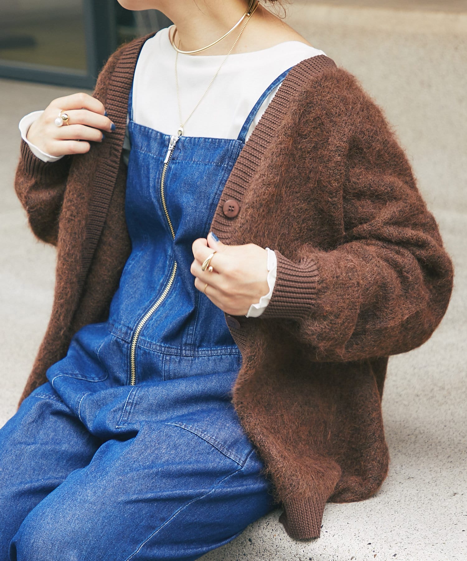 ・ふわっと軽く毛足の特徴的な素材とリブ素材を使用し、着心地も軽やかなカーディガン