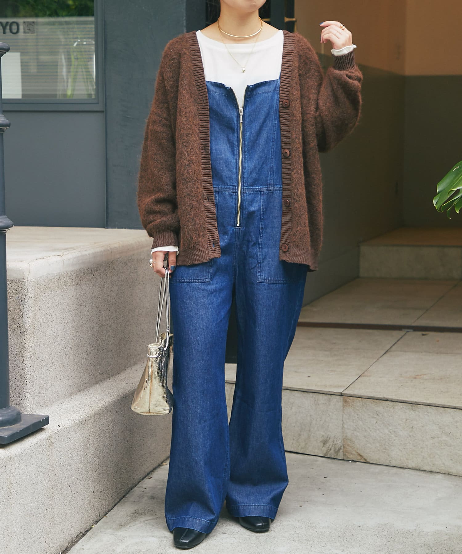 ゆったりしたシルエットで腰回りカバーできるカーでです。