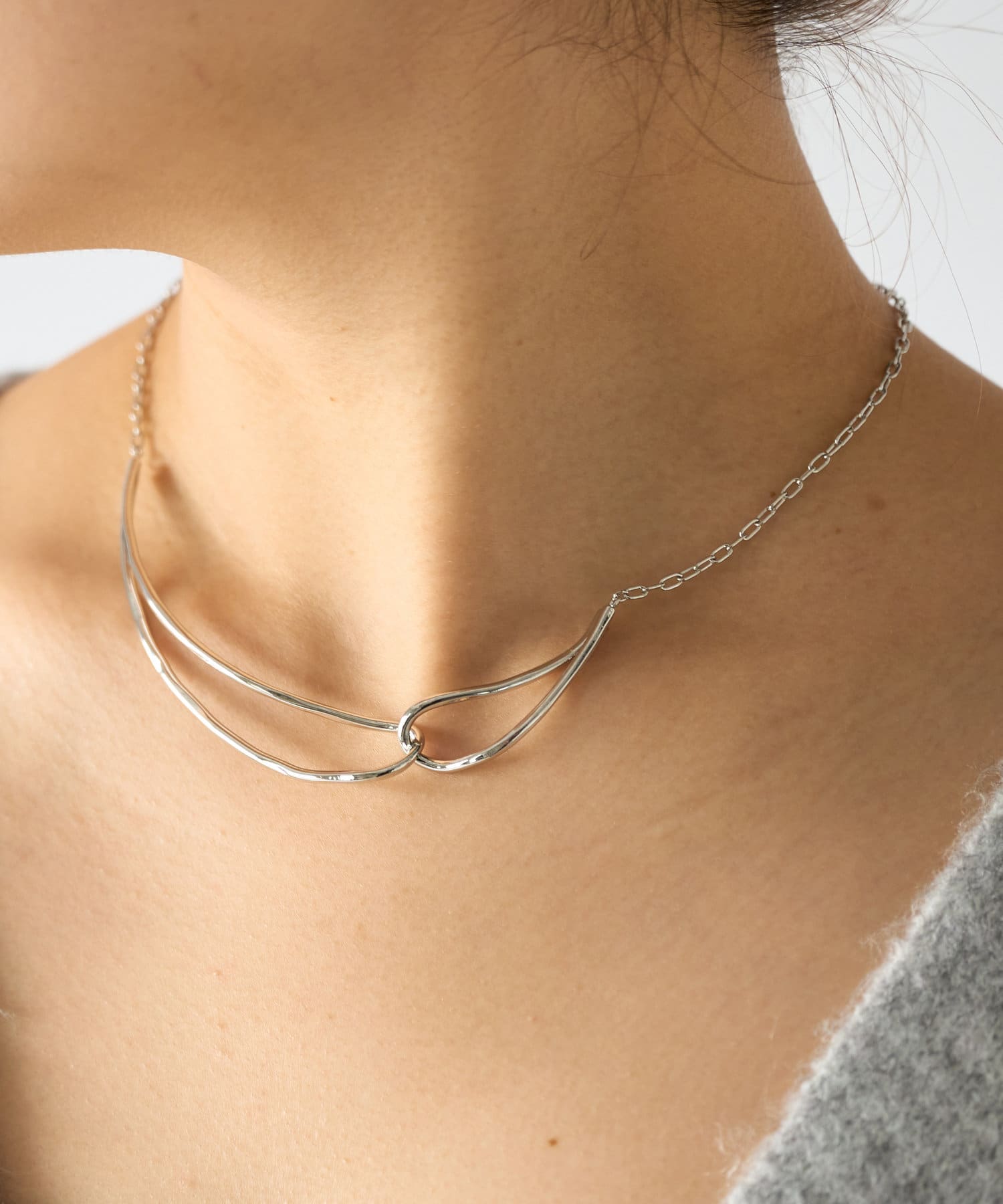 重なる部分を首の中心から少しずらして付けて頂くデザイン