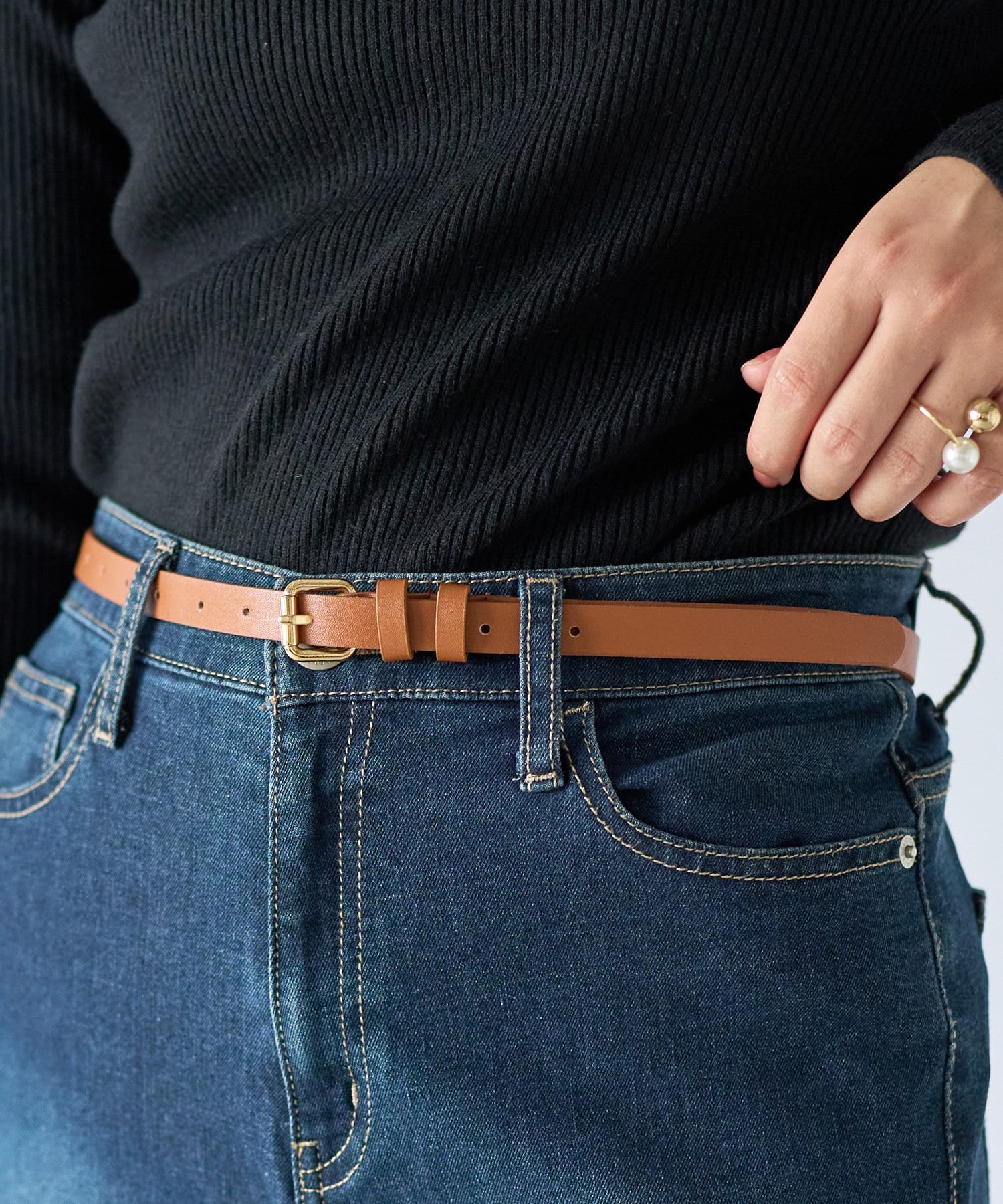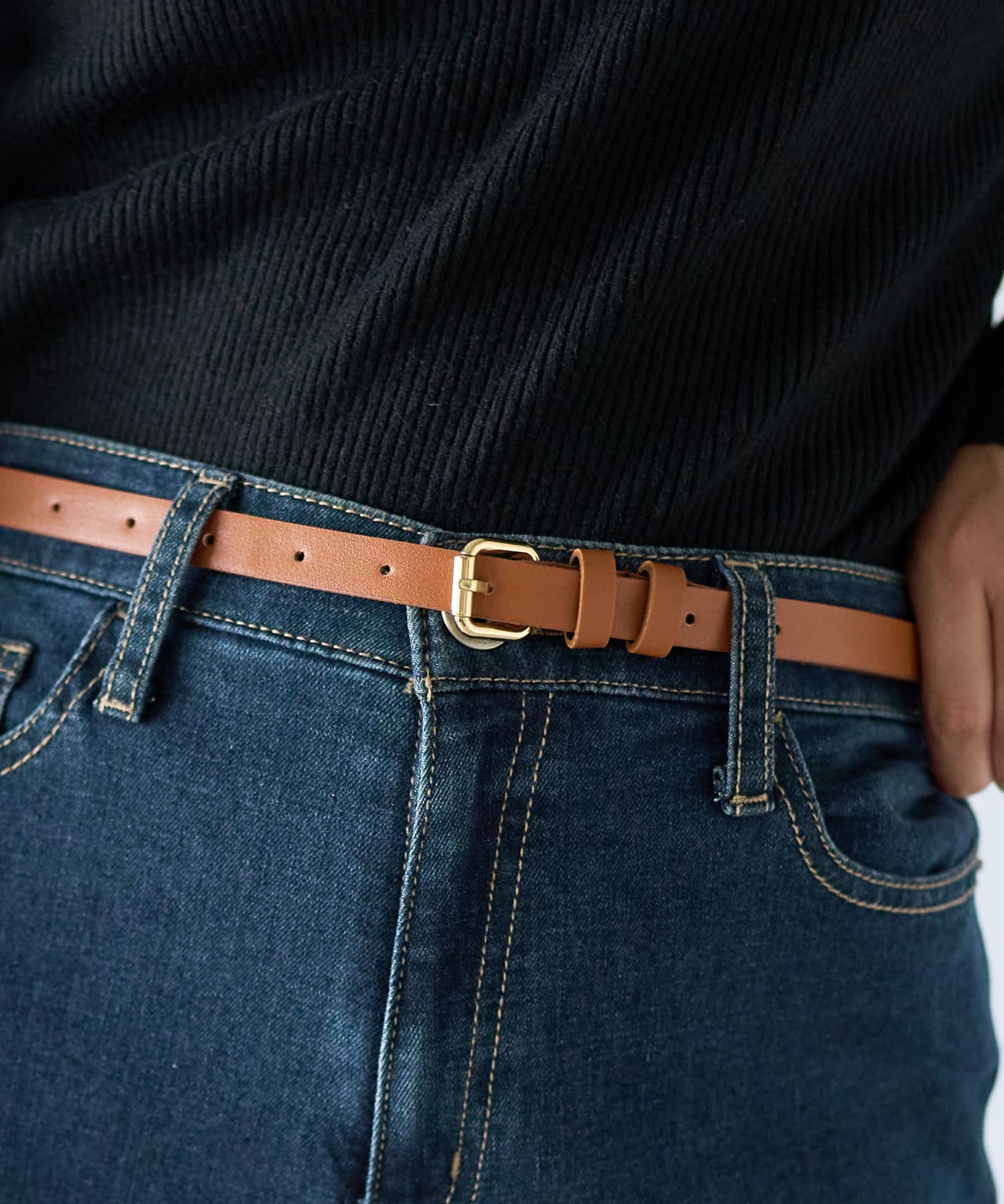 どんなスタイリングにも合わせやすい絶妙な細身のベルトです。