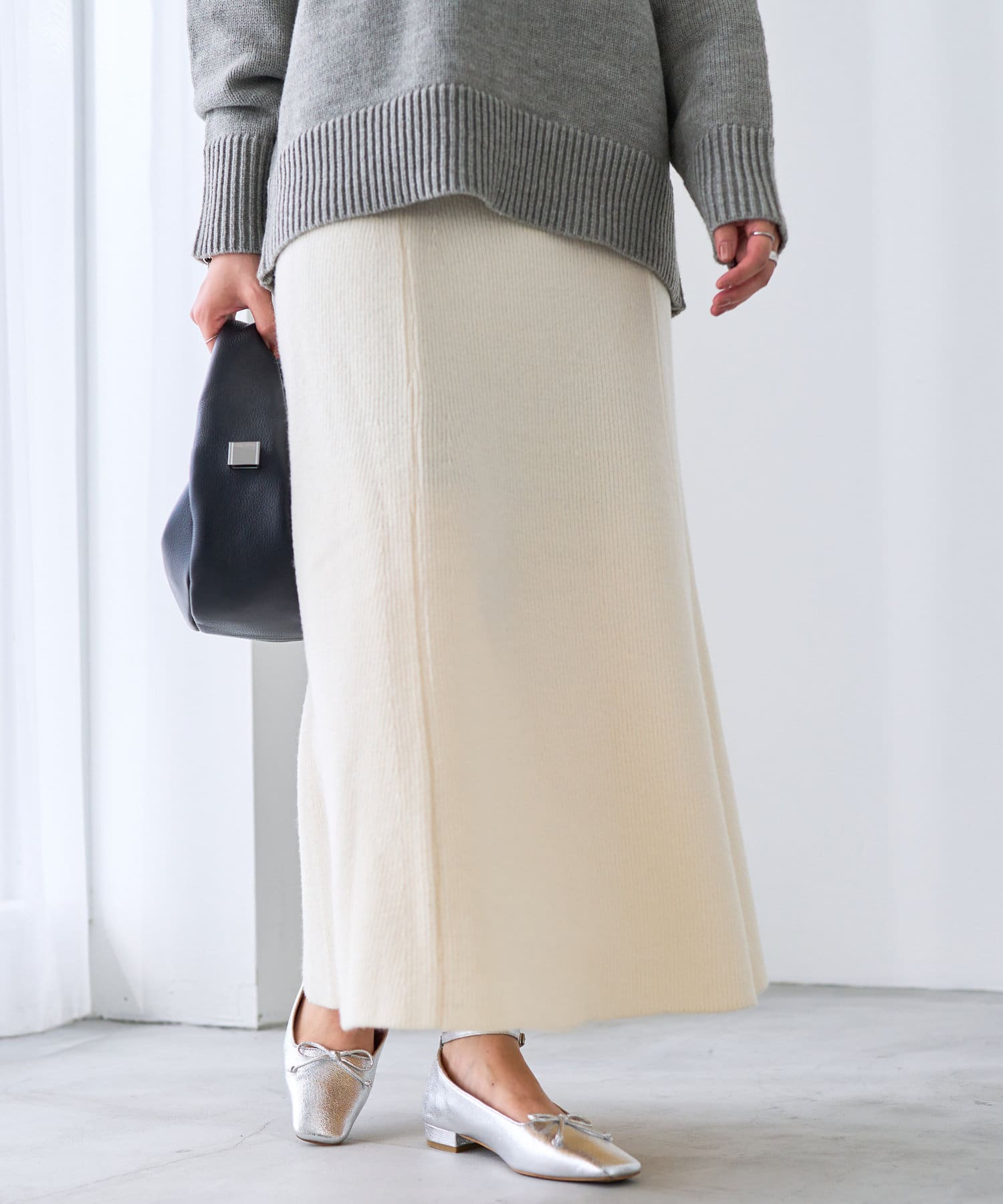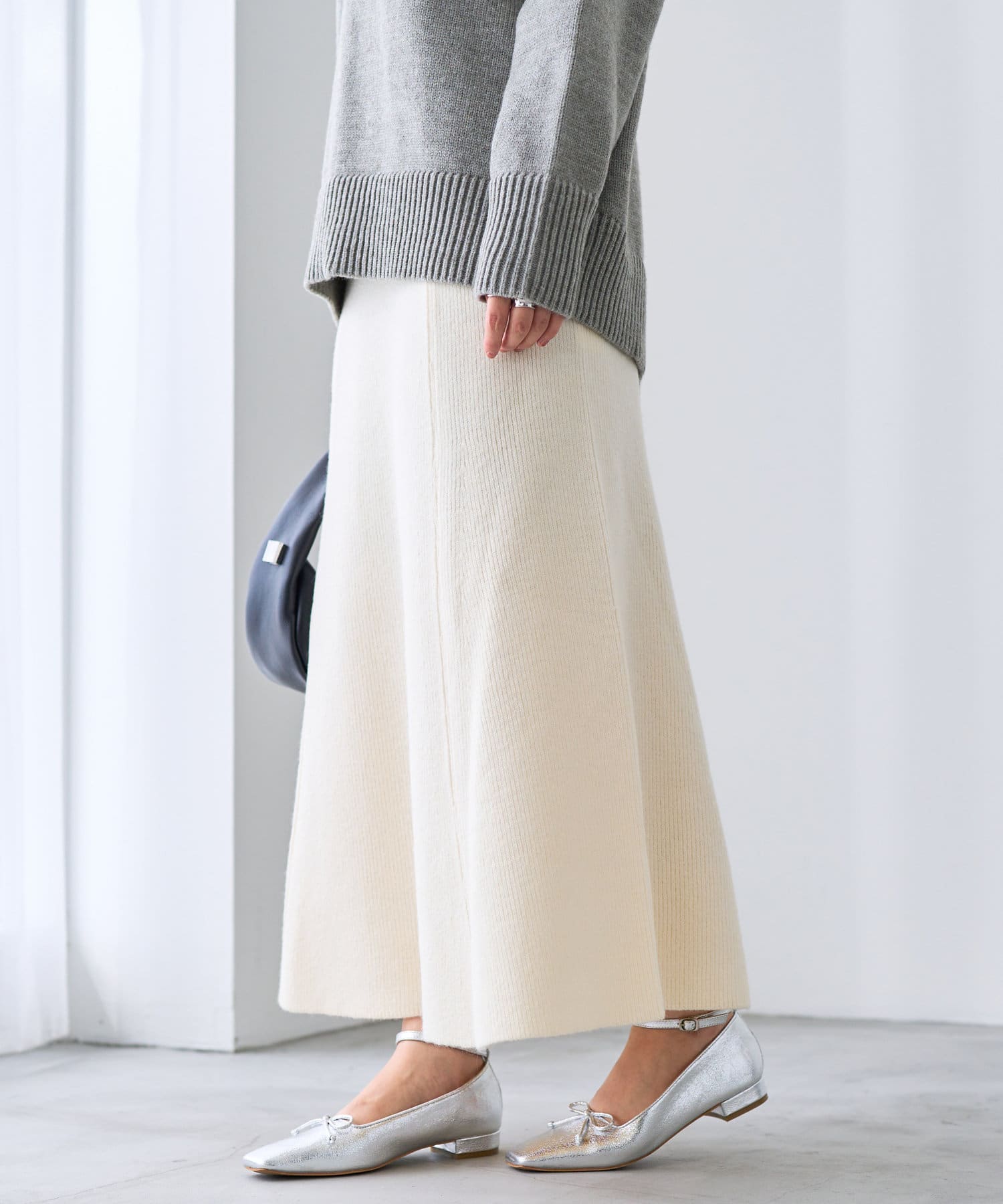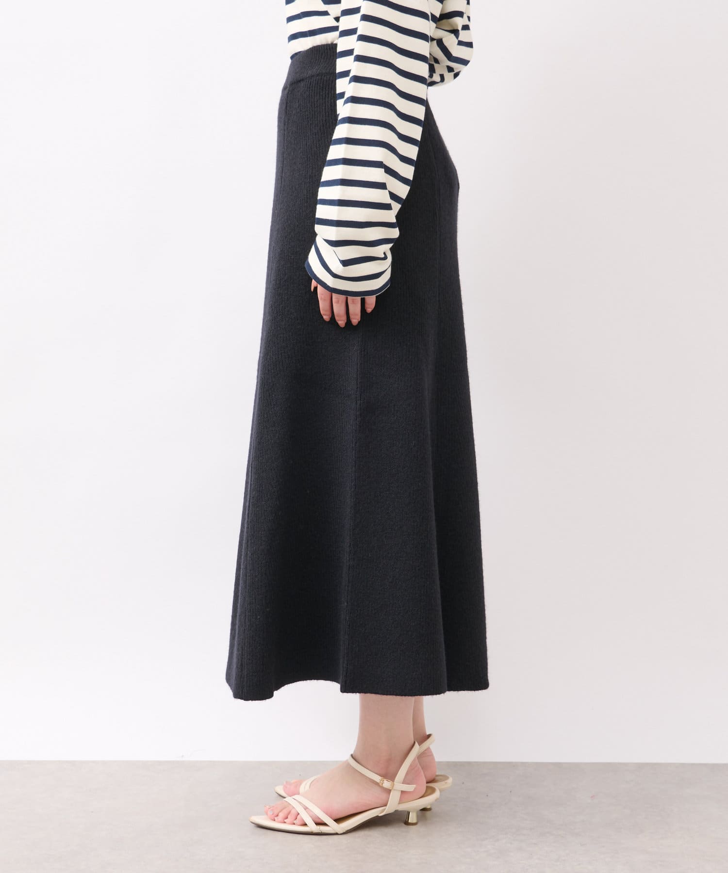 Aラインシルエットですっきり見えが叶うニットスカート