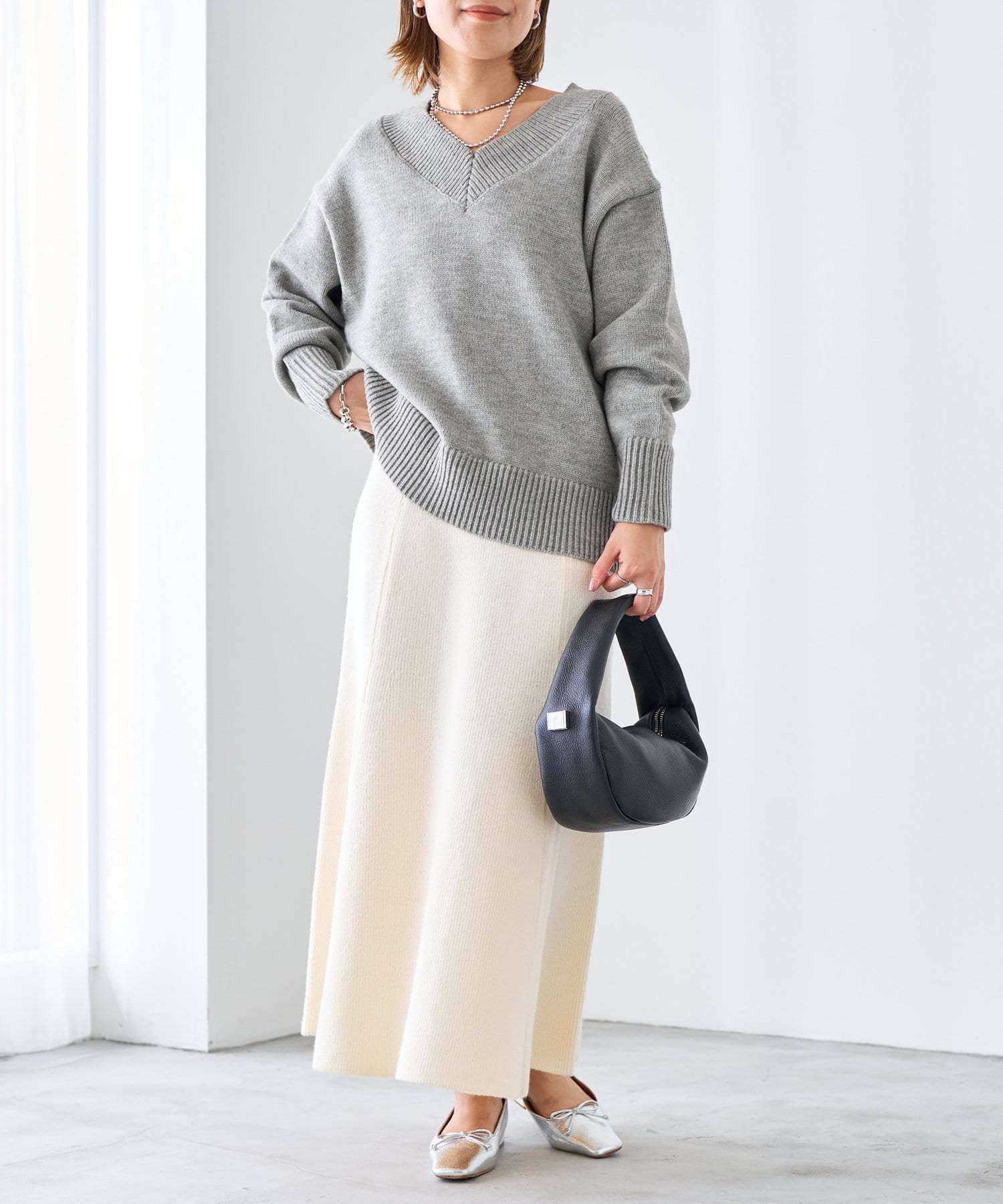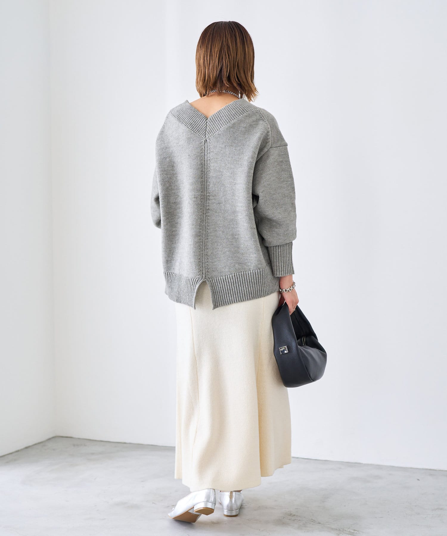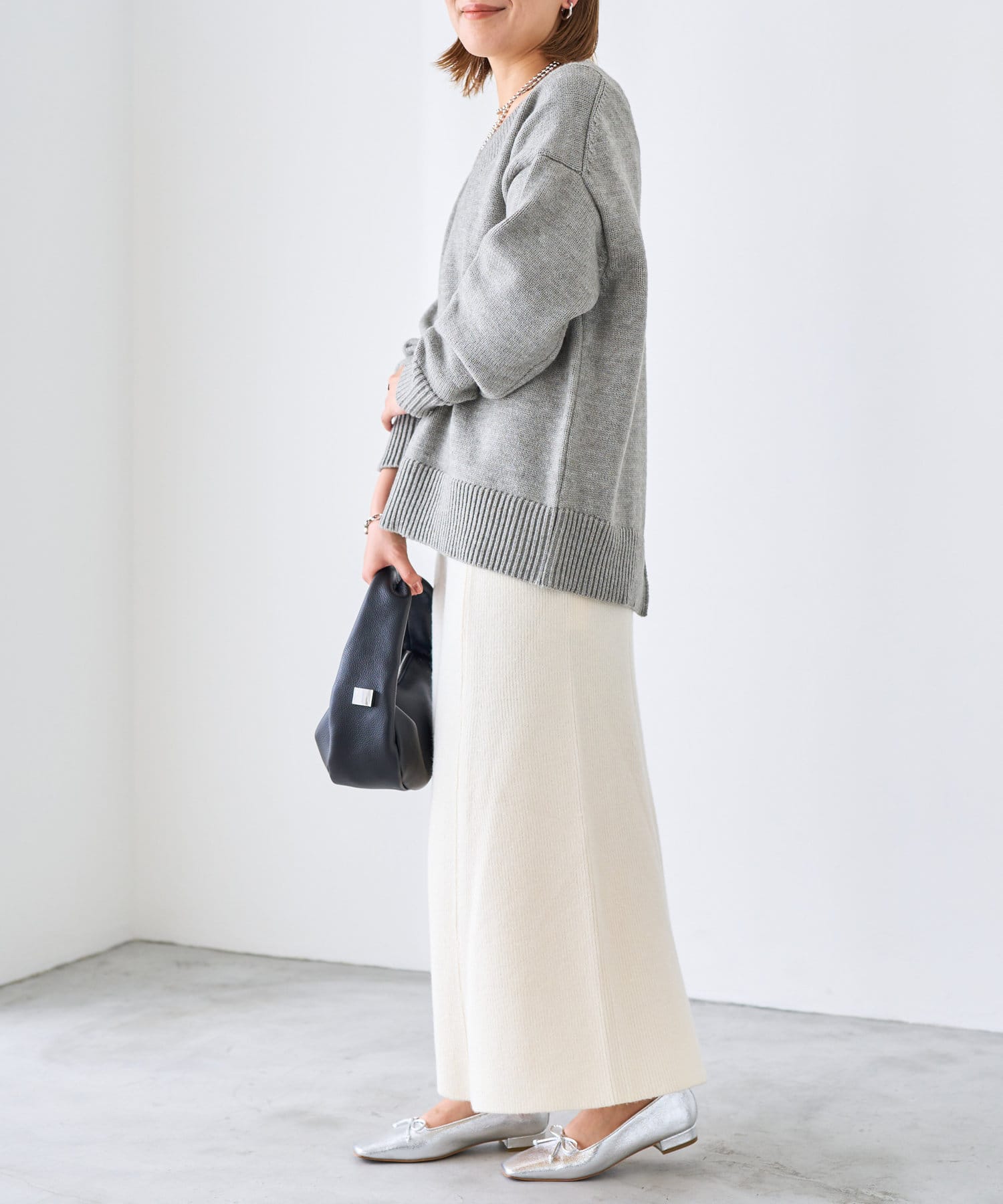・目面の綺麗なニット編地がエレガントな表情に