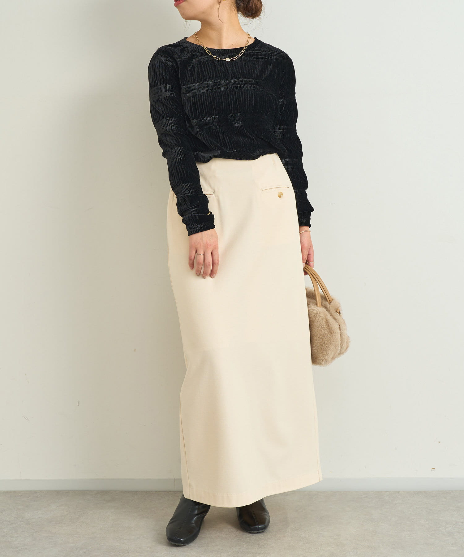 オフィスカジュアルにもおススメなきちんと感のあるタイトスカートです。