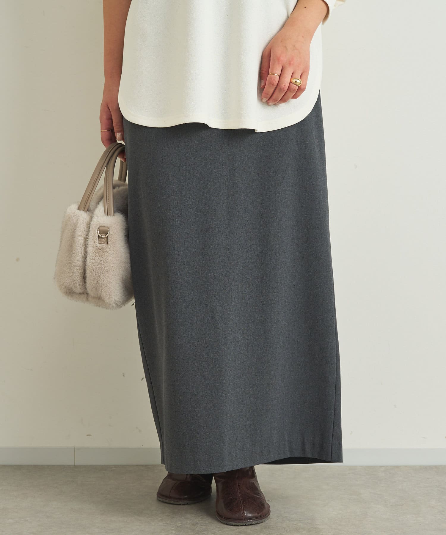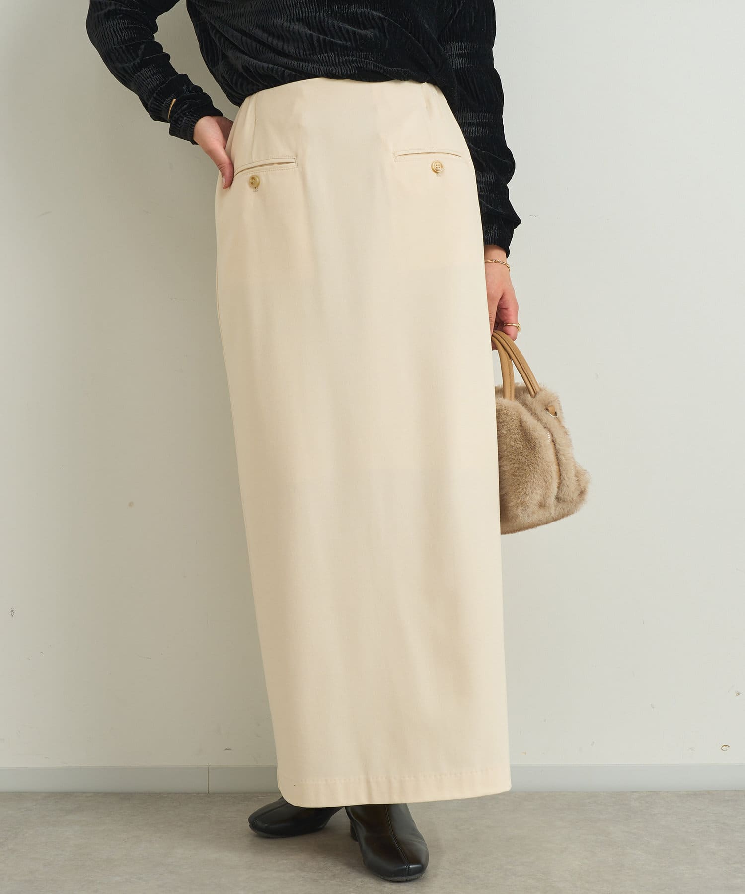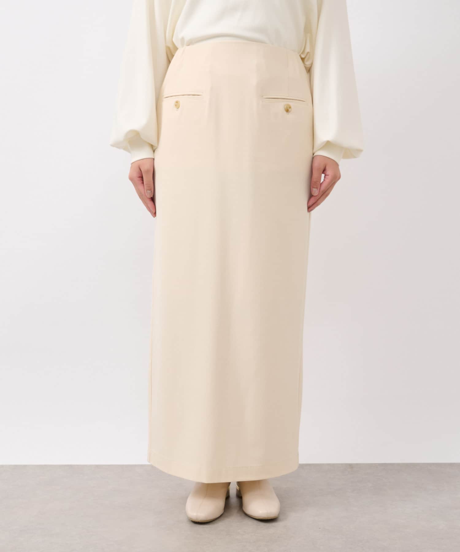 Iラインシルエットで細見えするスカートです。