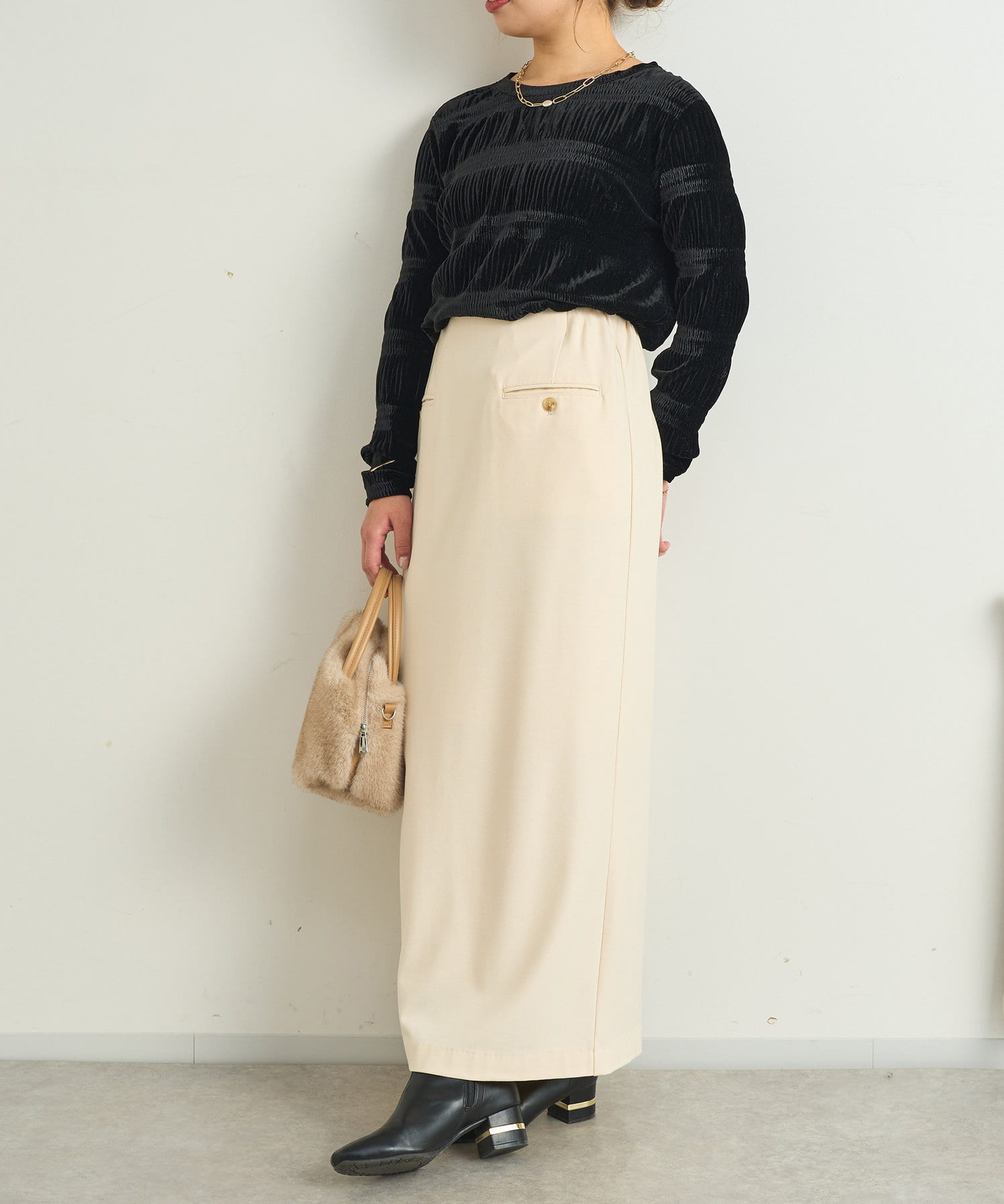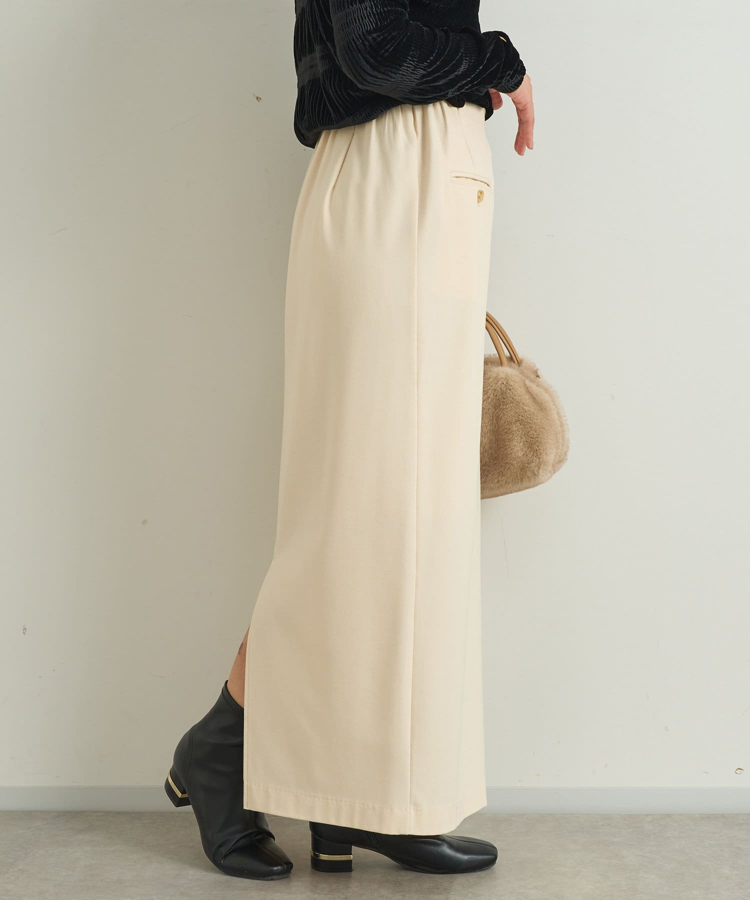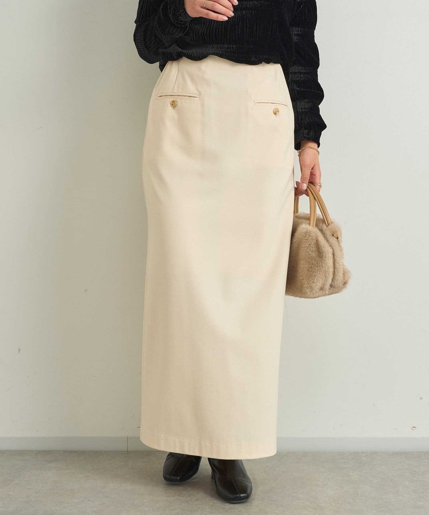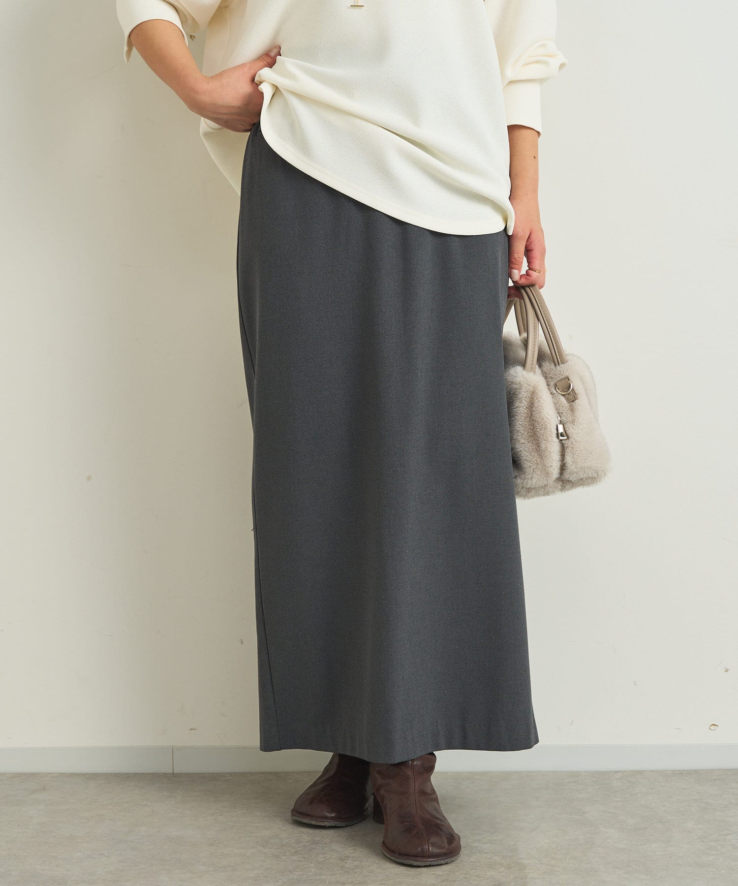 Iラインシルエットで細見えするスカートです。