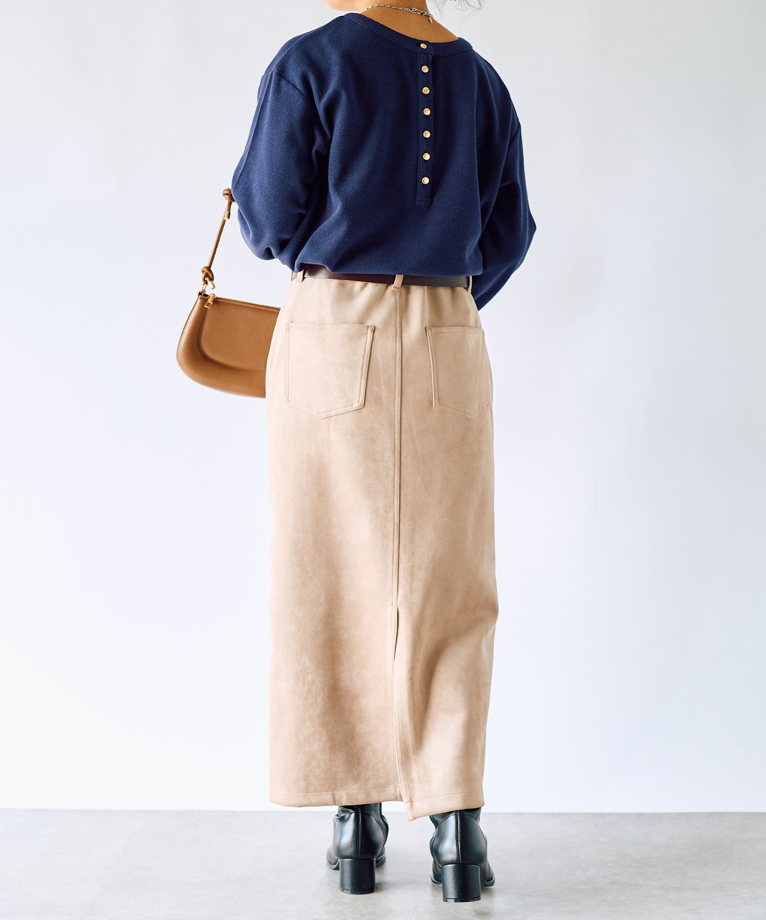 インせずに腰周りをカバーできる丈感がうれしいポイントです!