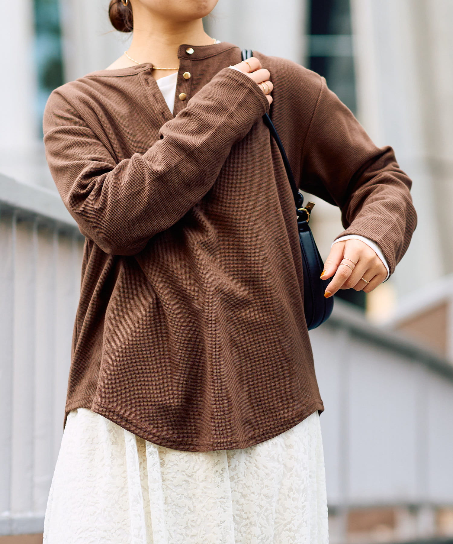 レイヤードスタイルを楽しむのもおすすめです。