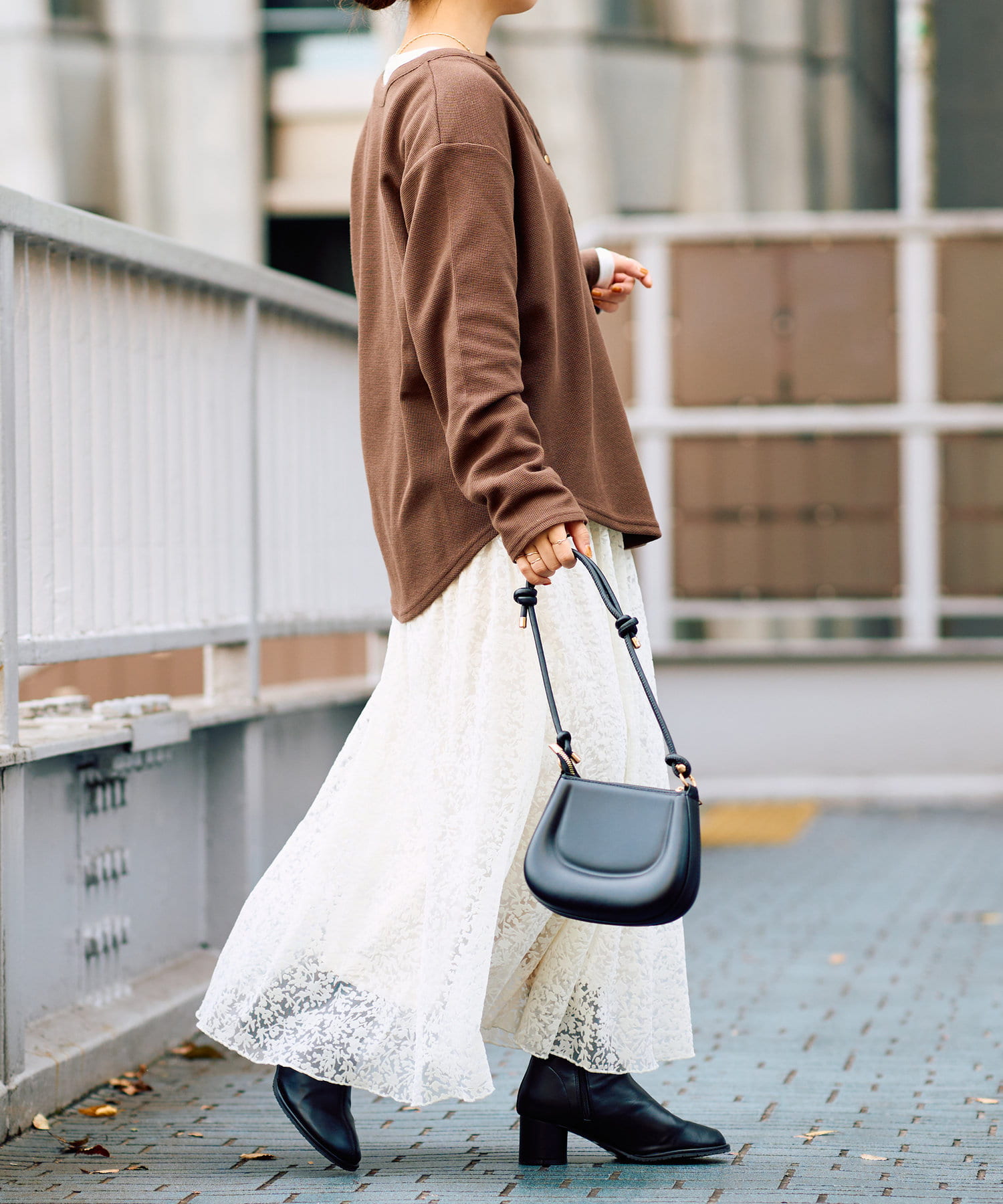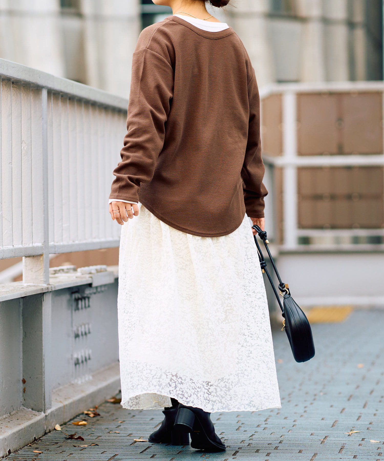 ボトムはデニムからフェミニンなスカート、
