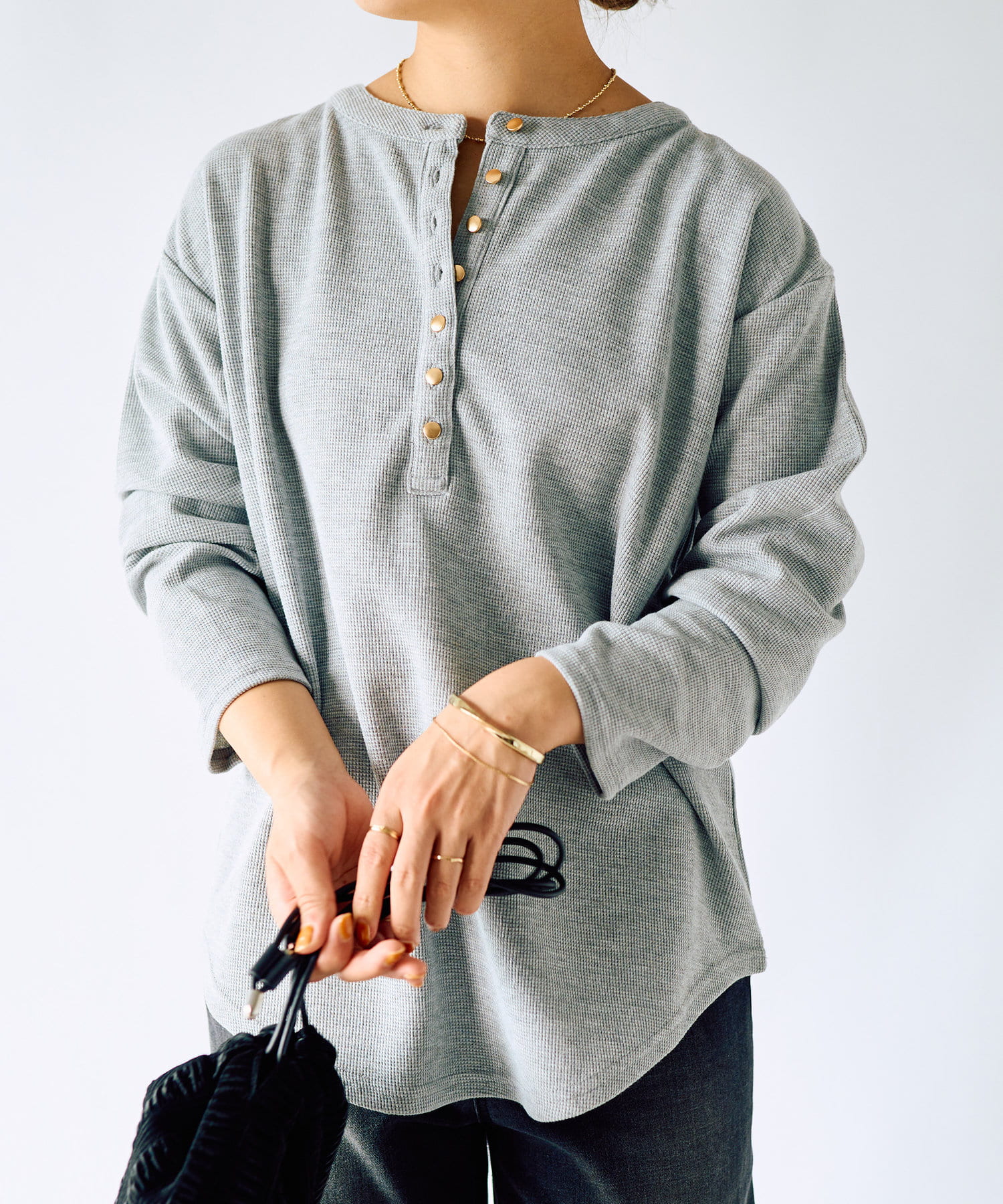 《着回しに使いやすい》ワッフル2WAYプルオーバー