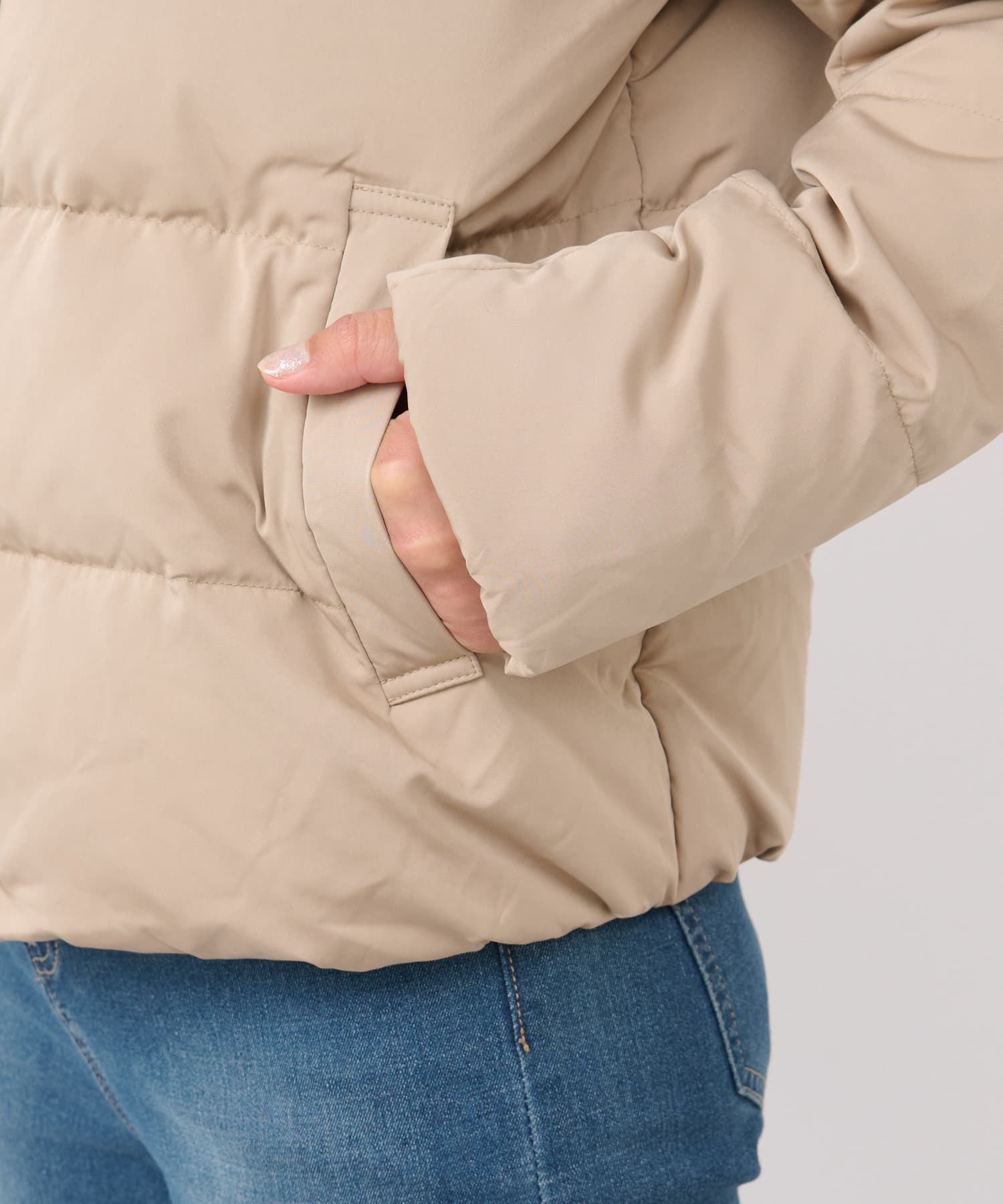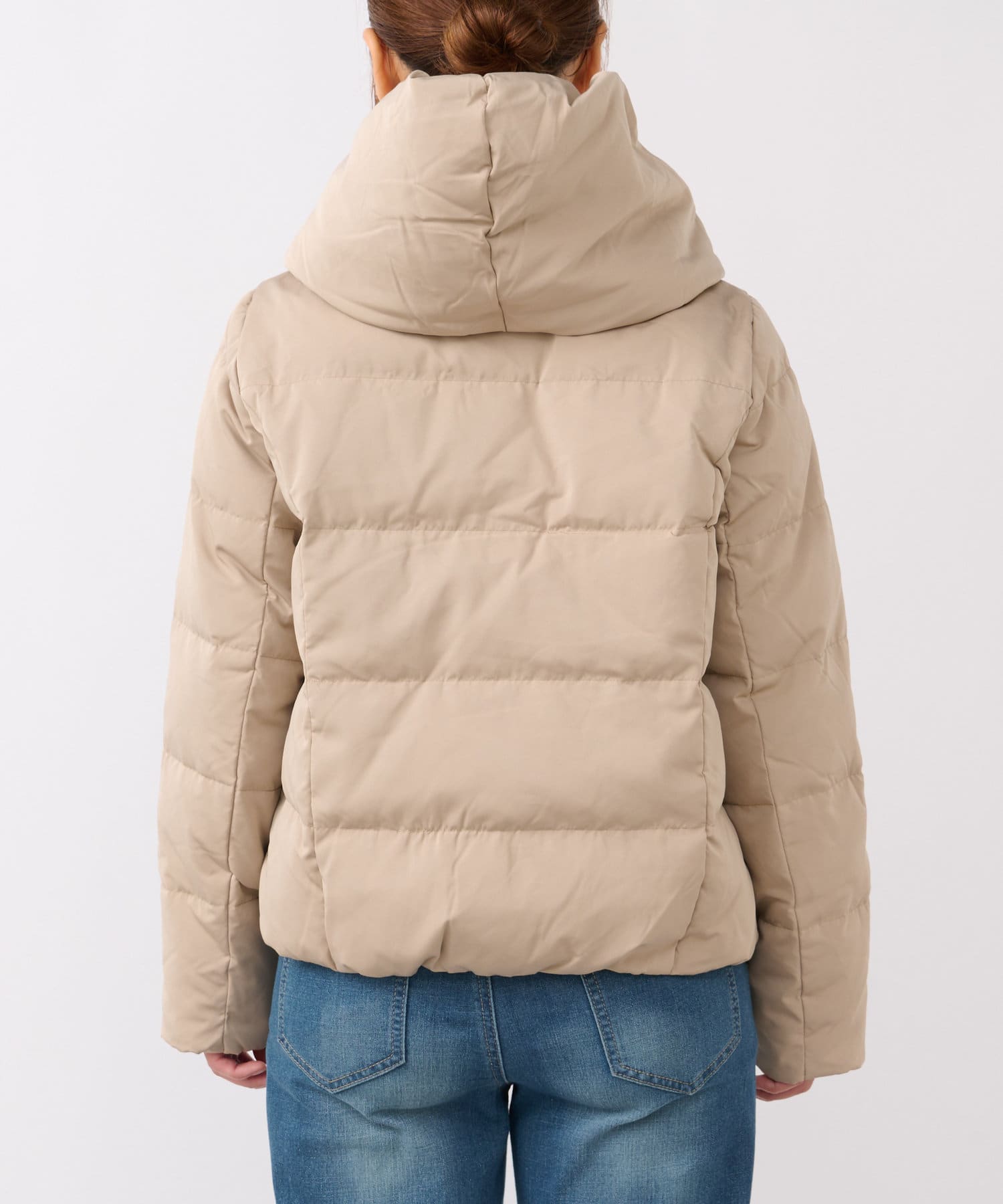 ・カジュアルなイメージのダウンジャケットを女性らしいピーチスキン素材で仕上げたアイテム