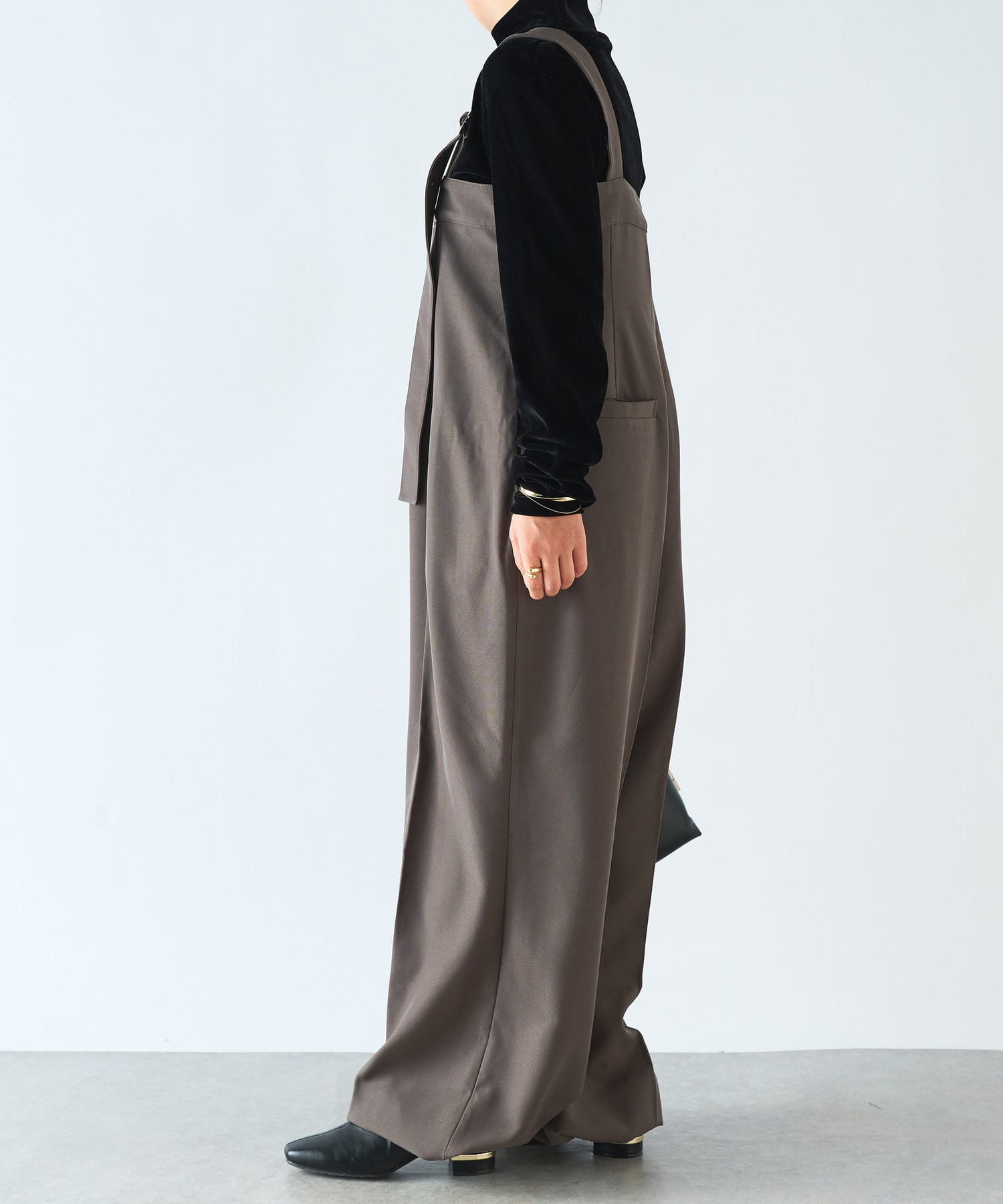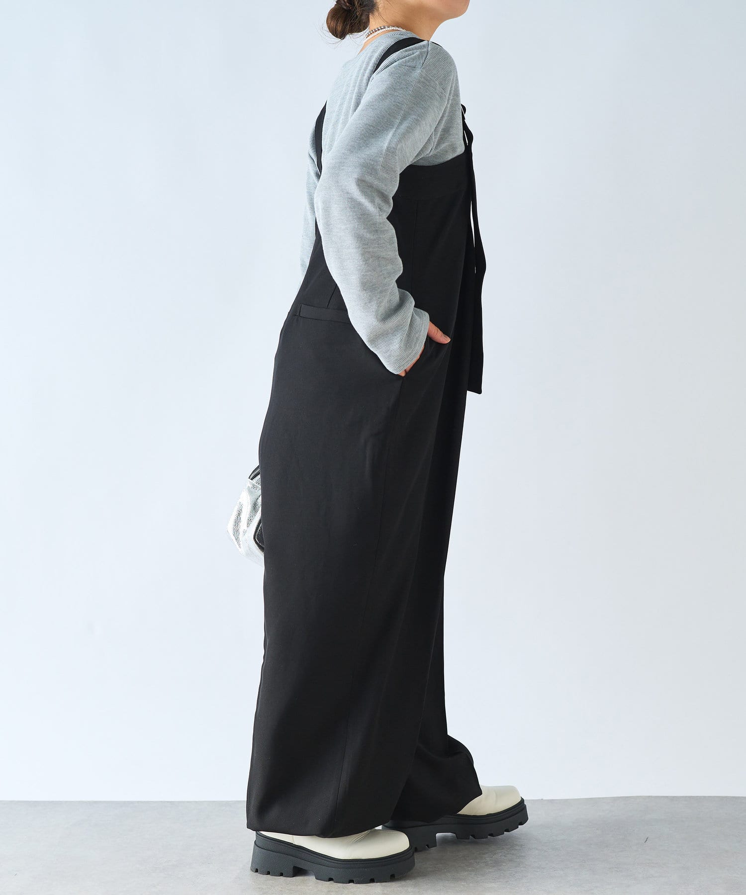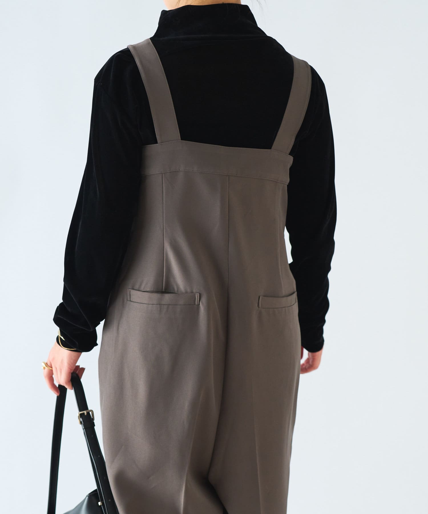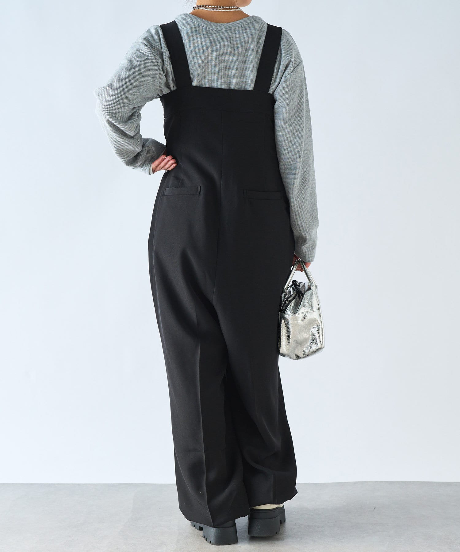 キレイな落ち感で子供っぽくならず大人な着回しができるサロペットです。