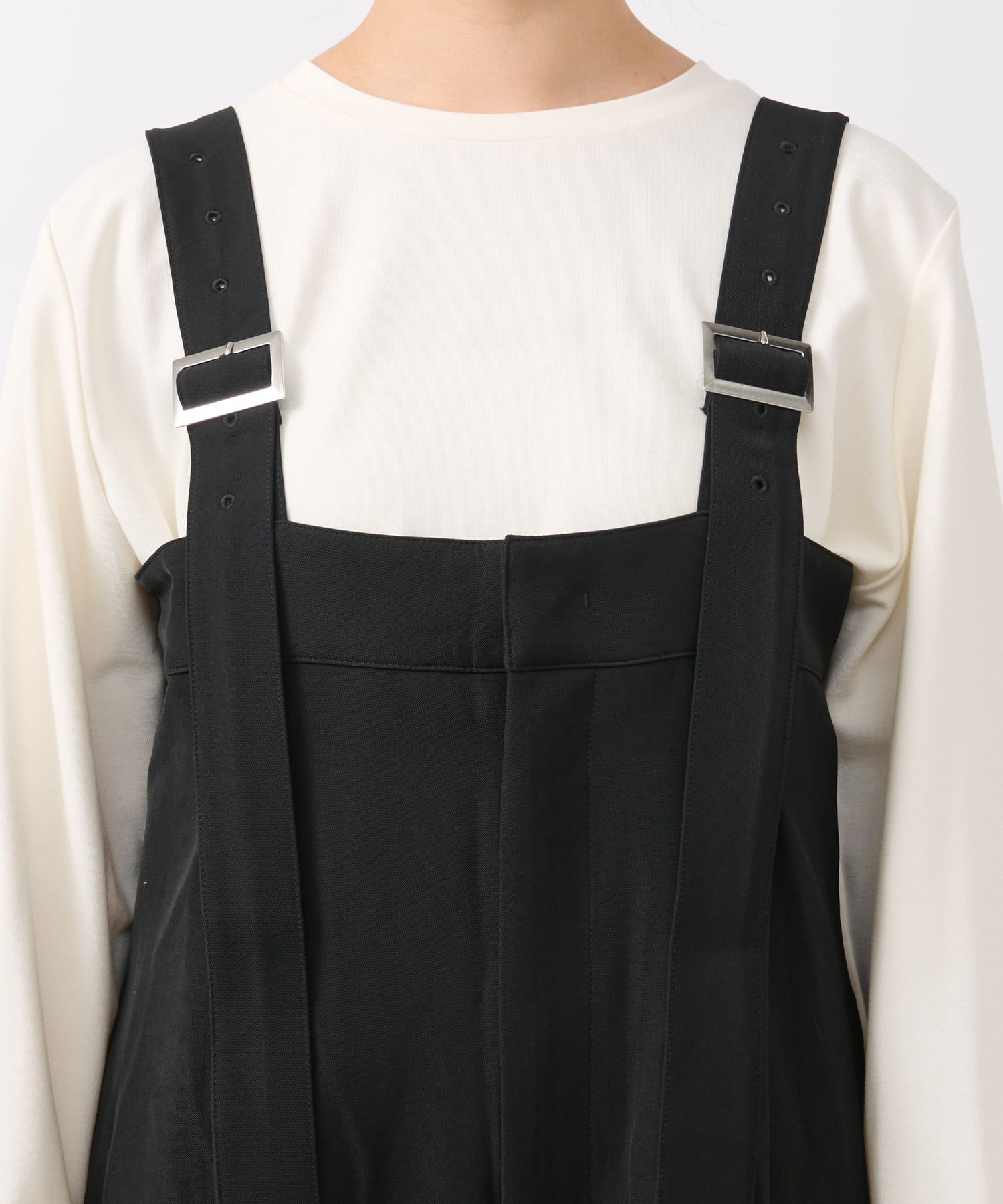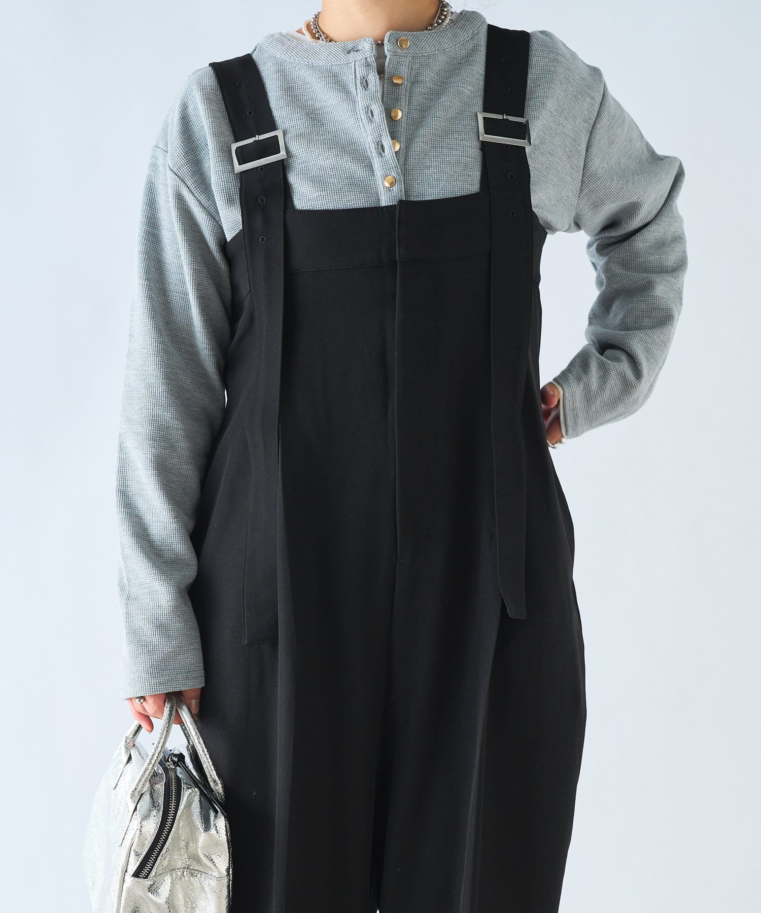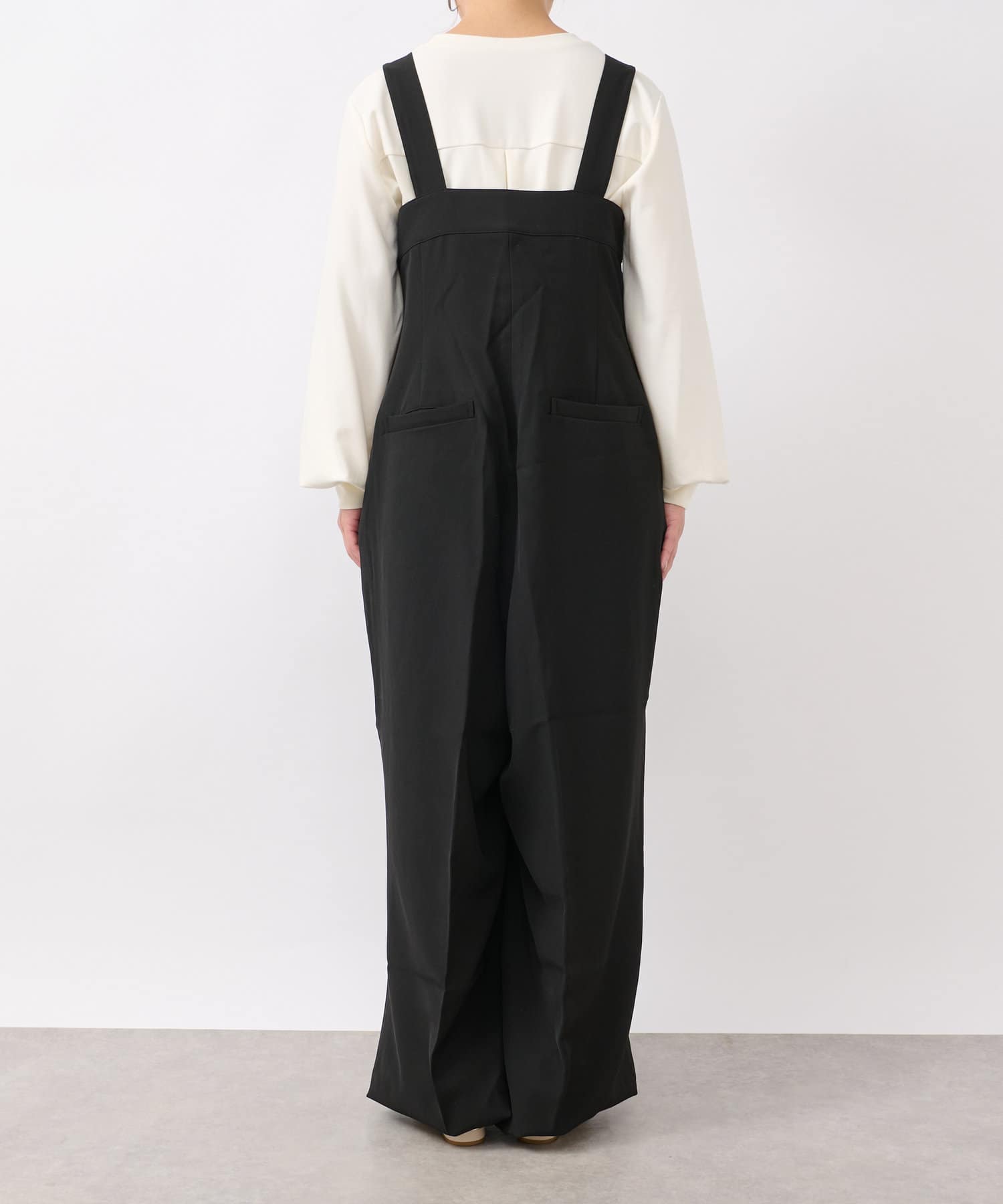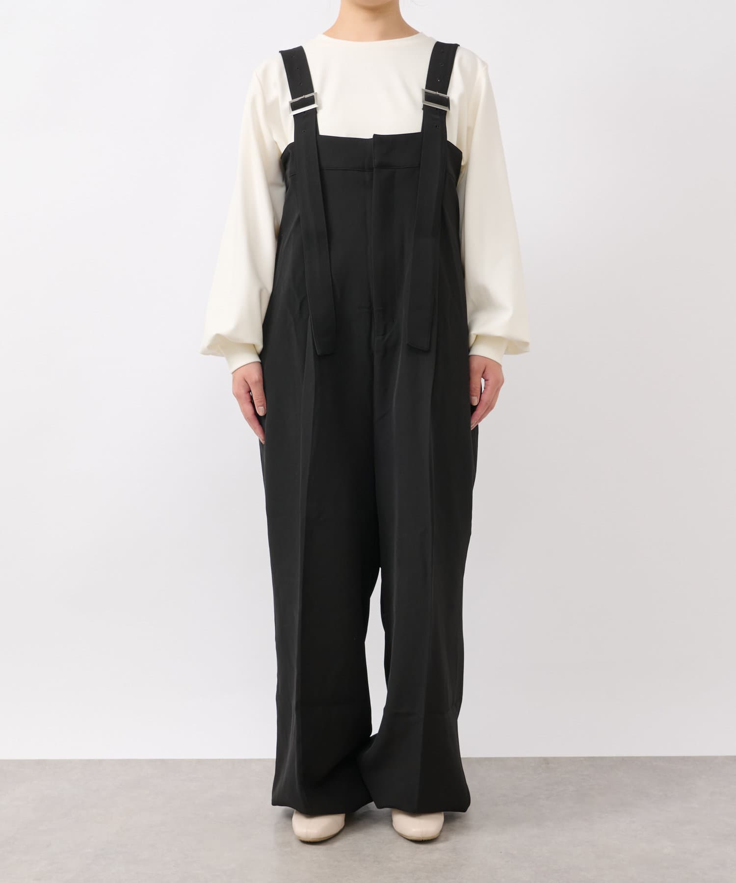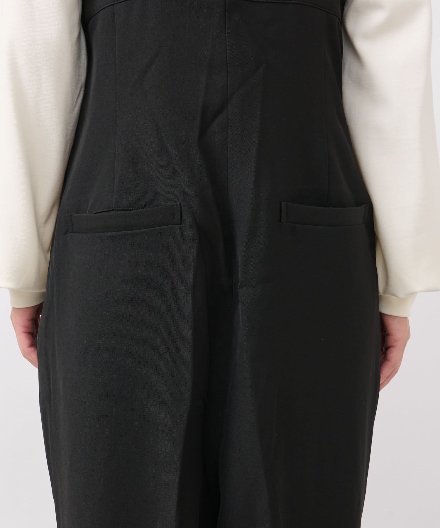 キレイな落ち感で子供っぽくならず大人な着回しができるサロペットです。