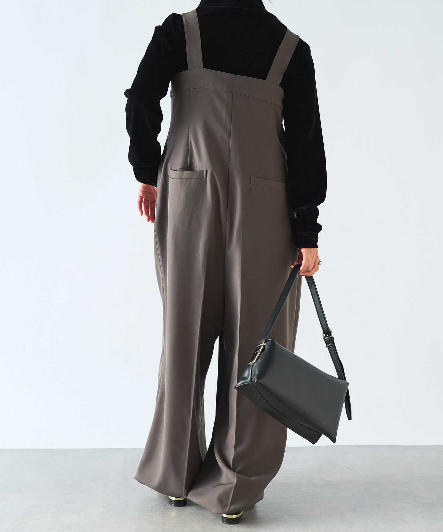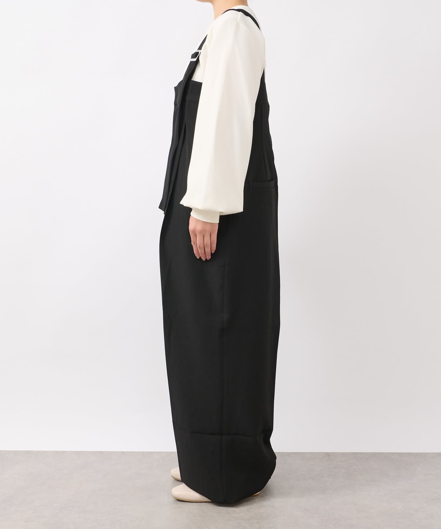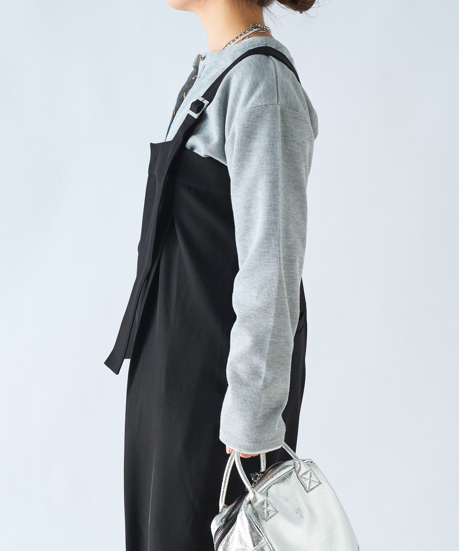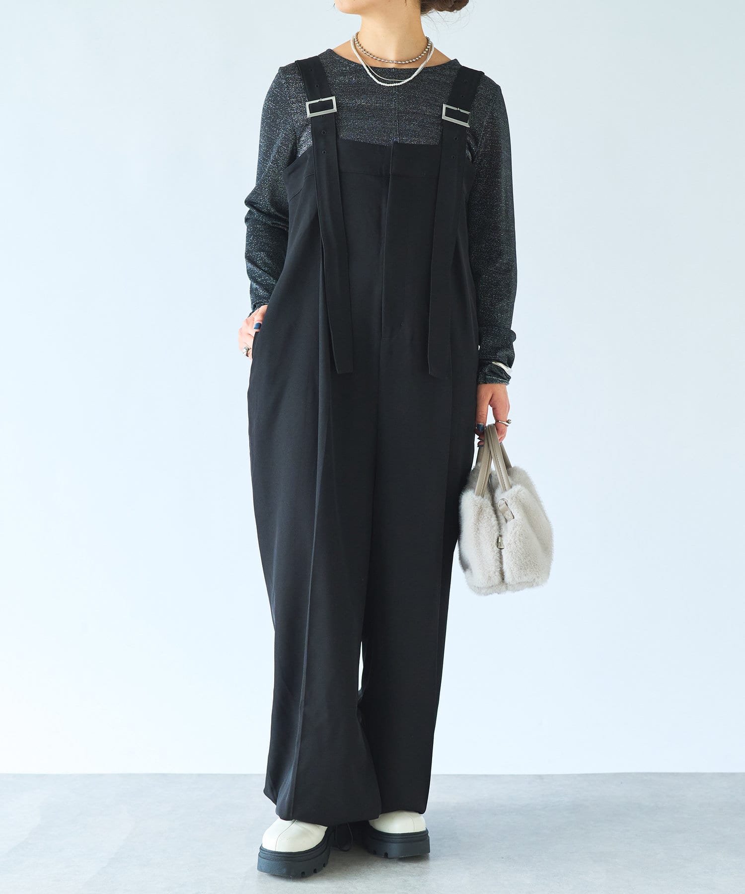 キレイな落ち感で子供っぽくならず大人な着回しができるサロペットです。