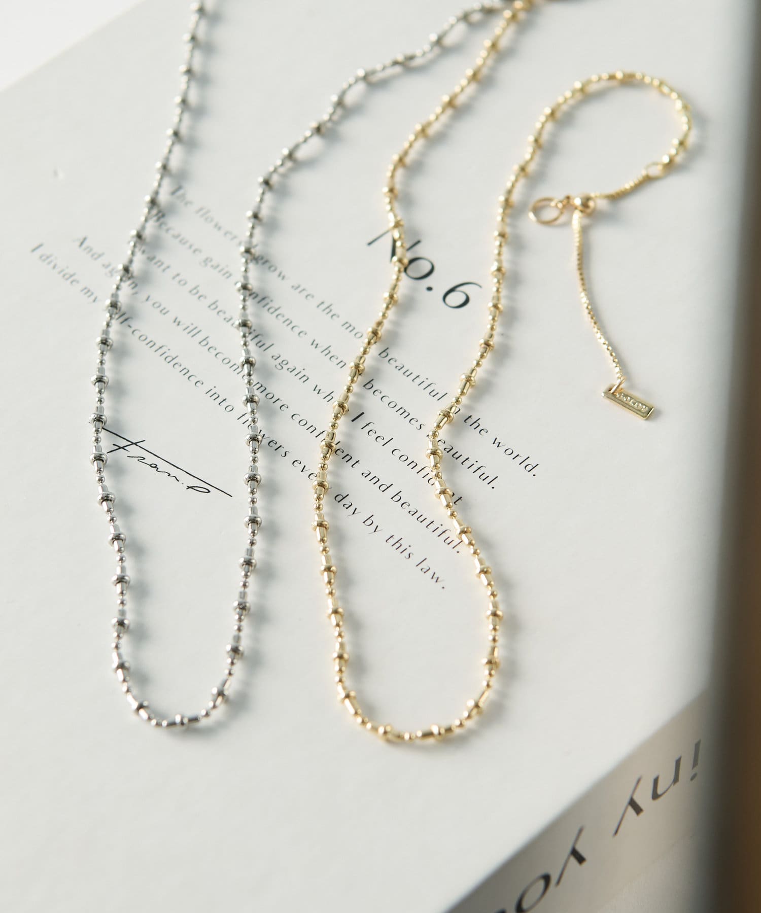 重ね付けもしやすく長さの異なるネックレスや