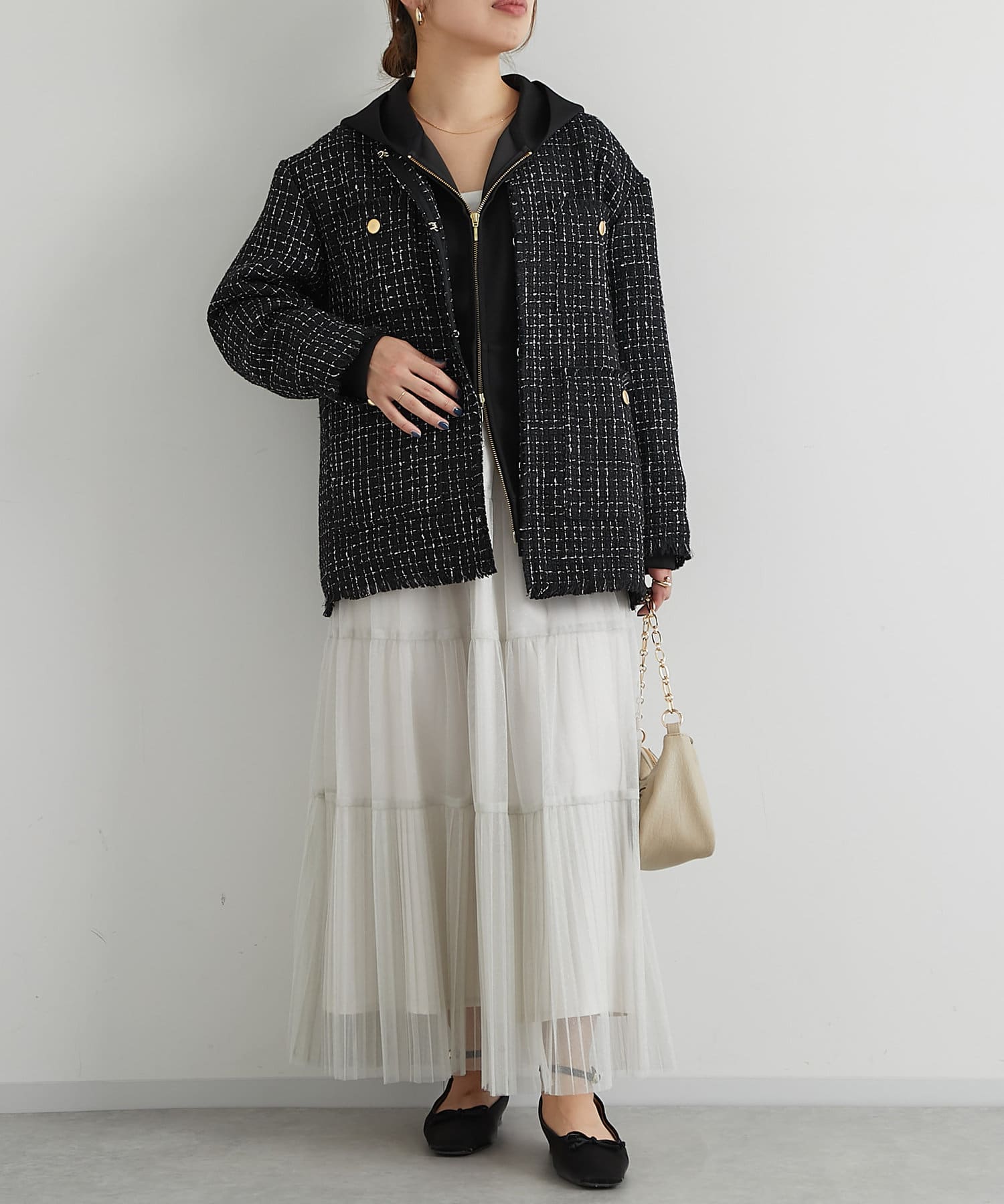 フィットシルエットのトップスやショート丈ベストとの合わせがオススメ