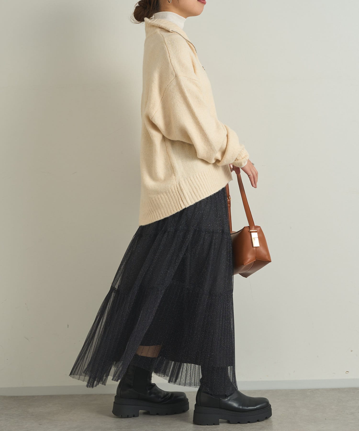 透け感がきれいで冬の時期のニットコーデにもぴったり♡