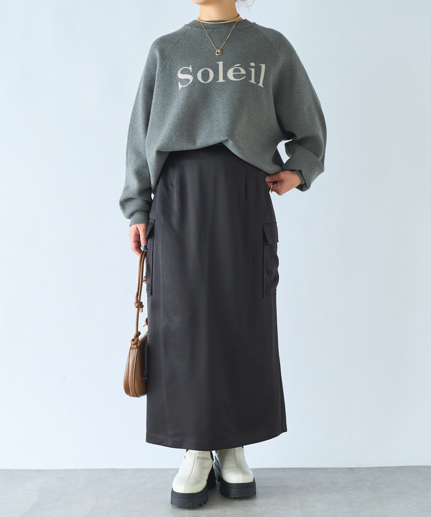 サテン地のつや感で冬コーデに華やかさをプラスしてくれます。