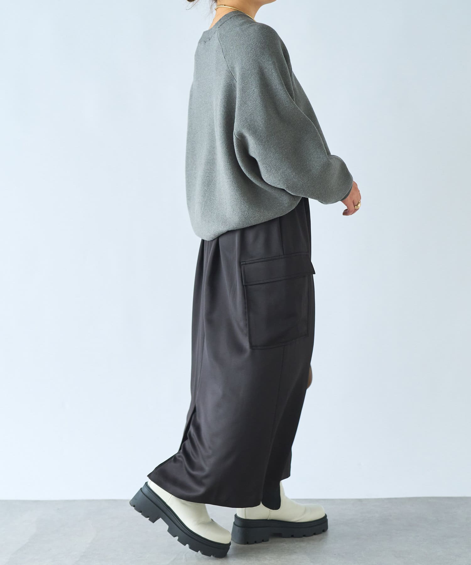 少し光沢感のあるサテン素材で高見え