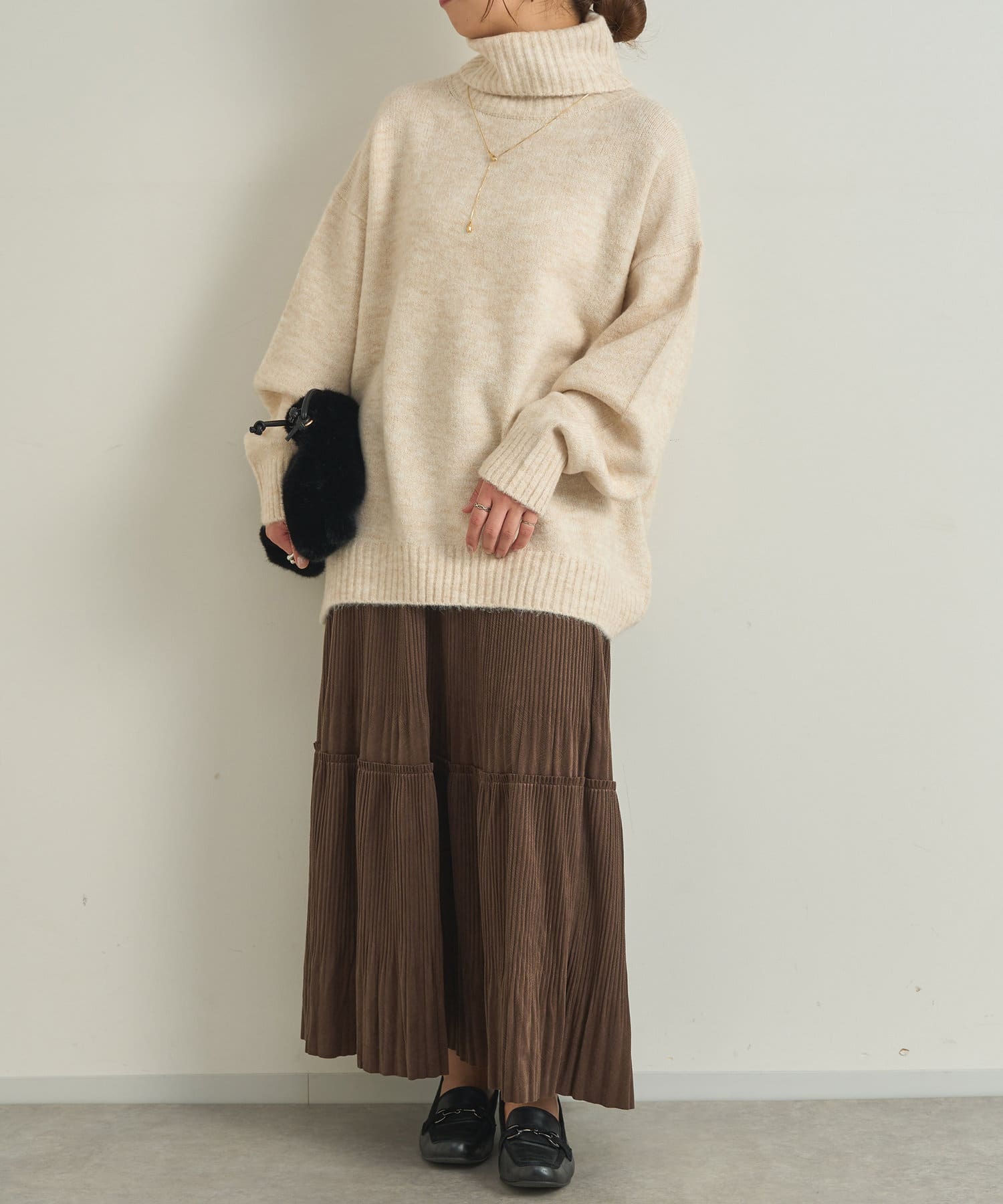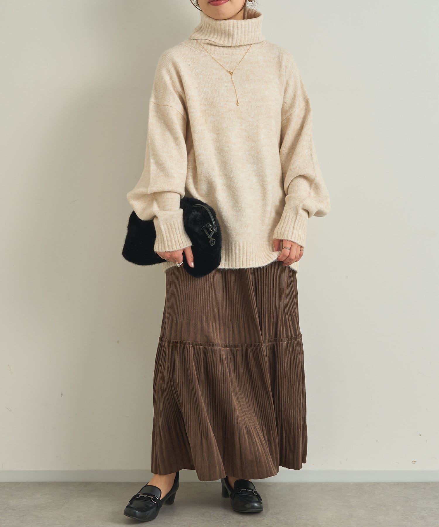 ゆったりめのニットやシアースウェットなどと合わせて、バランスの良い組み合わせも!