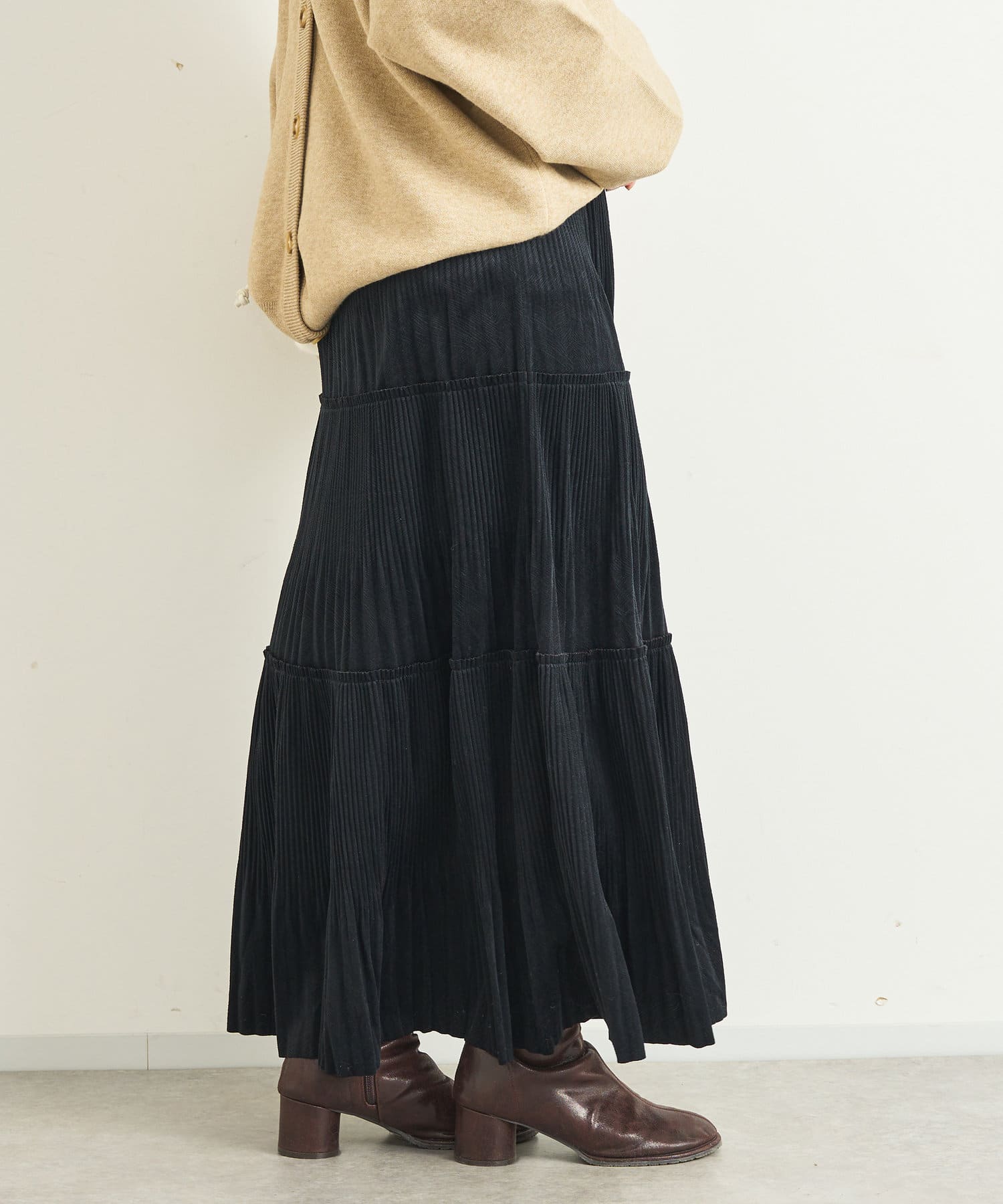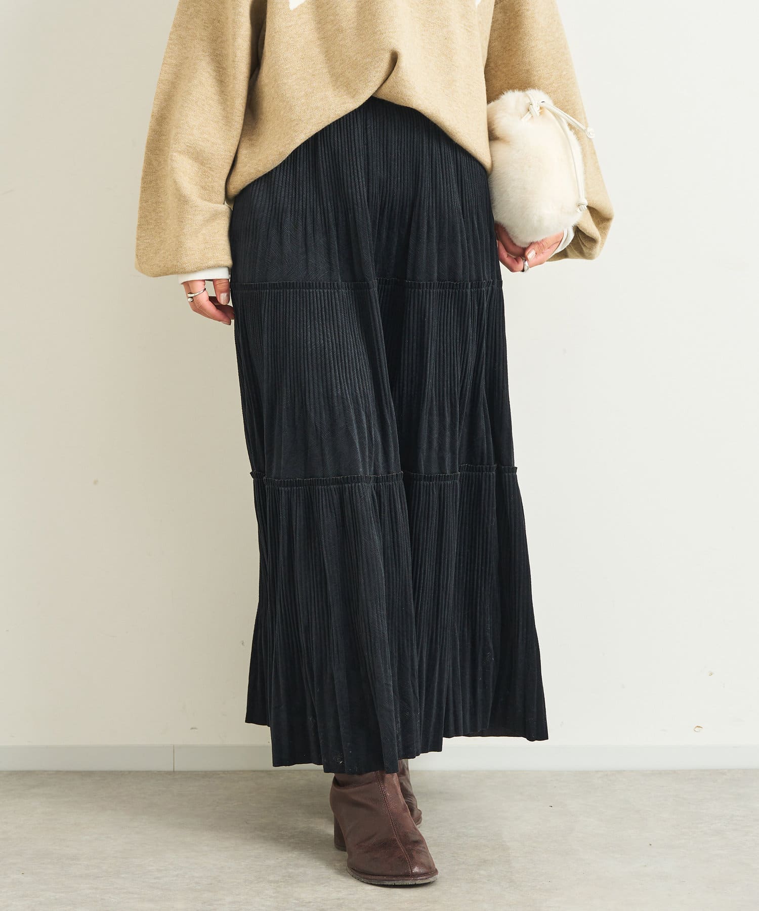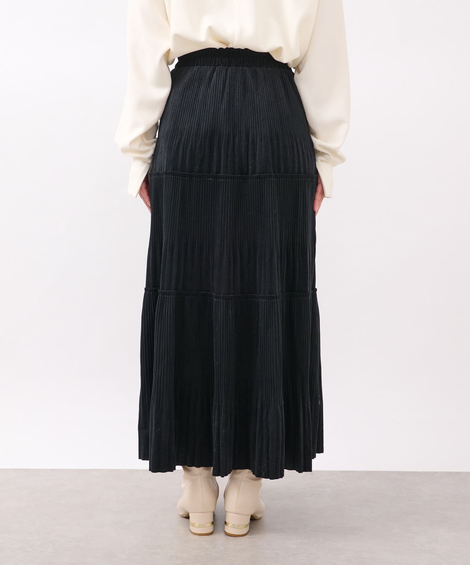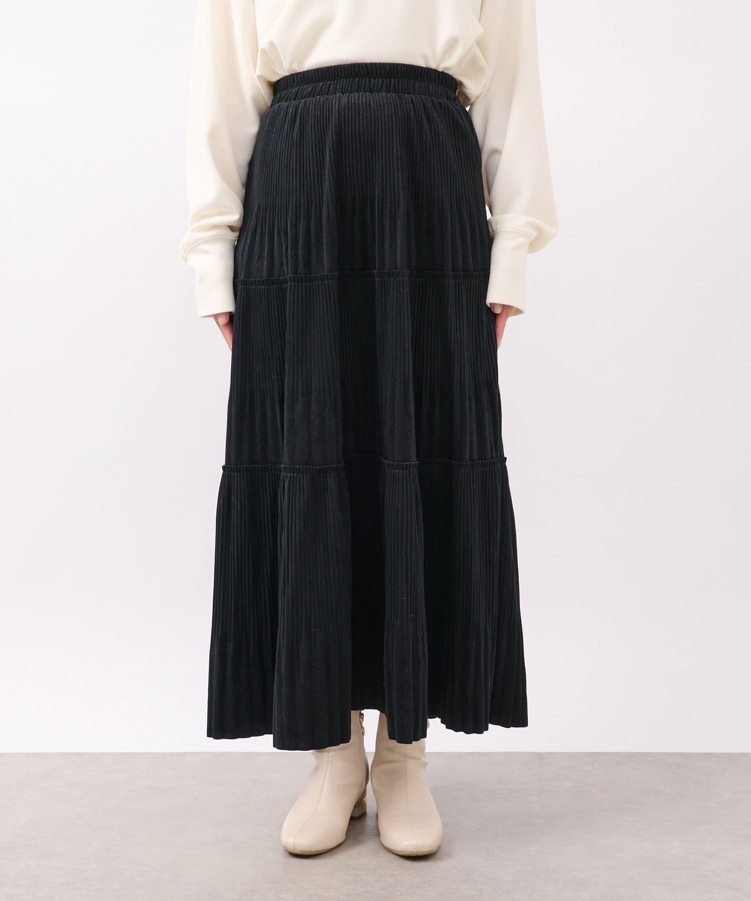 ・ベロア素材にプリーツを施した3段ティアードスカート