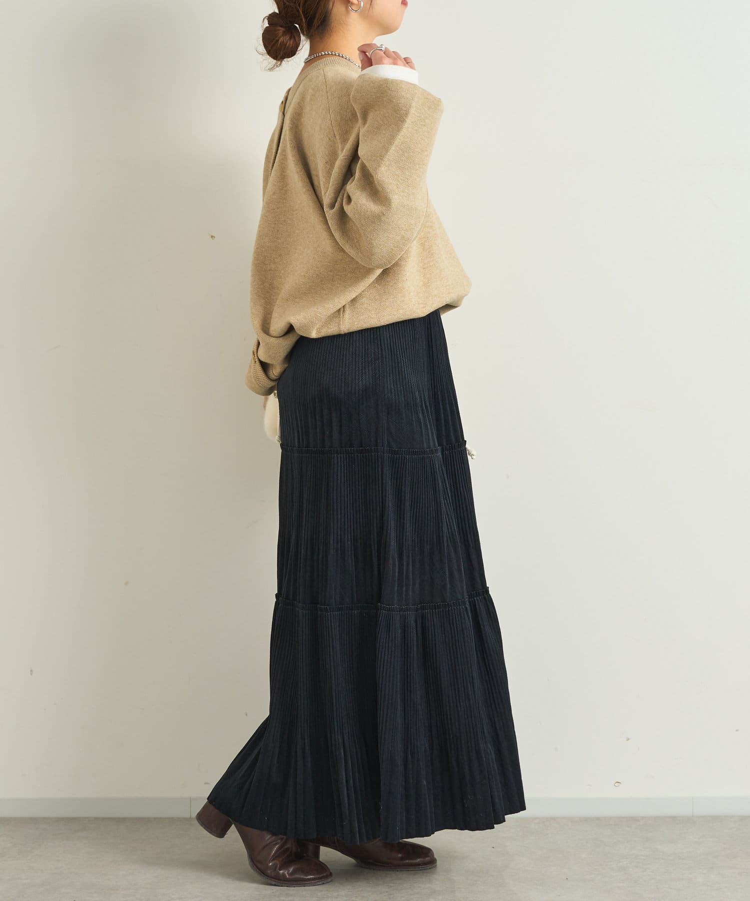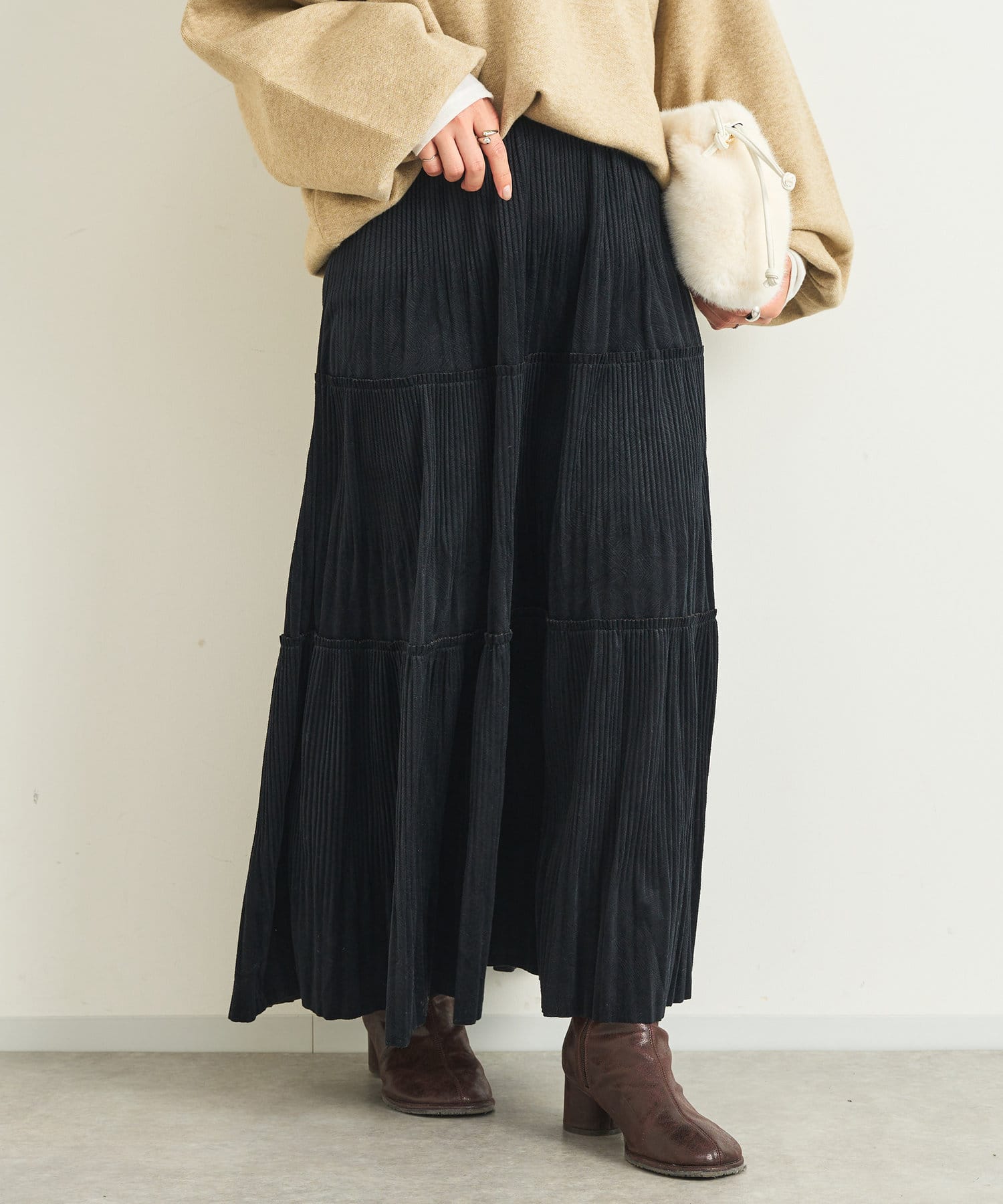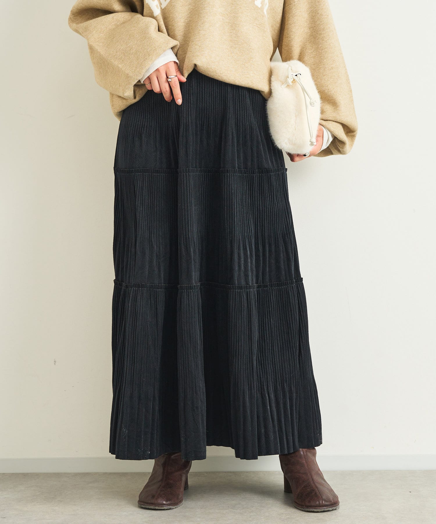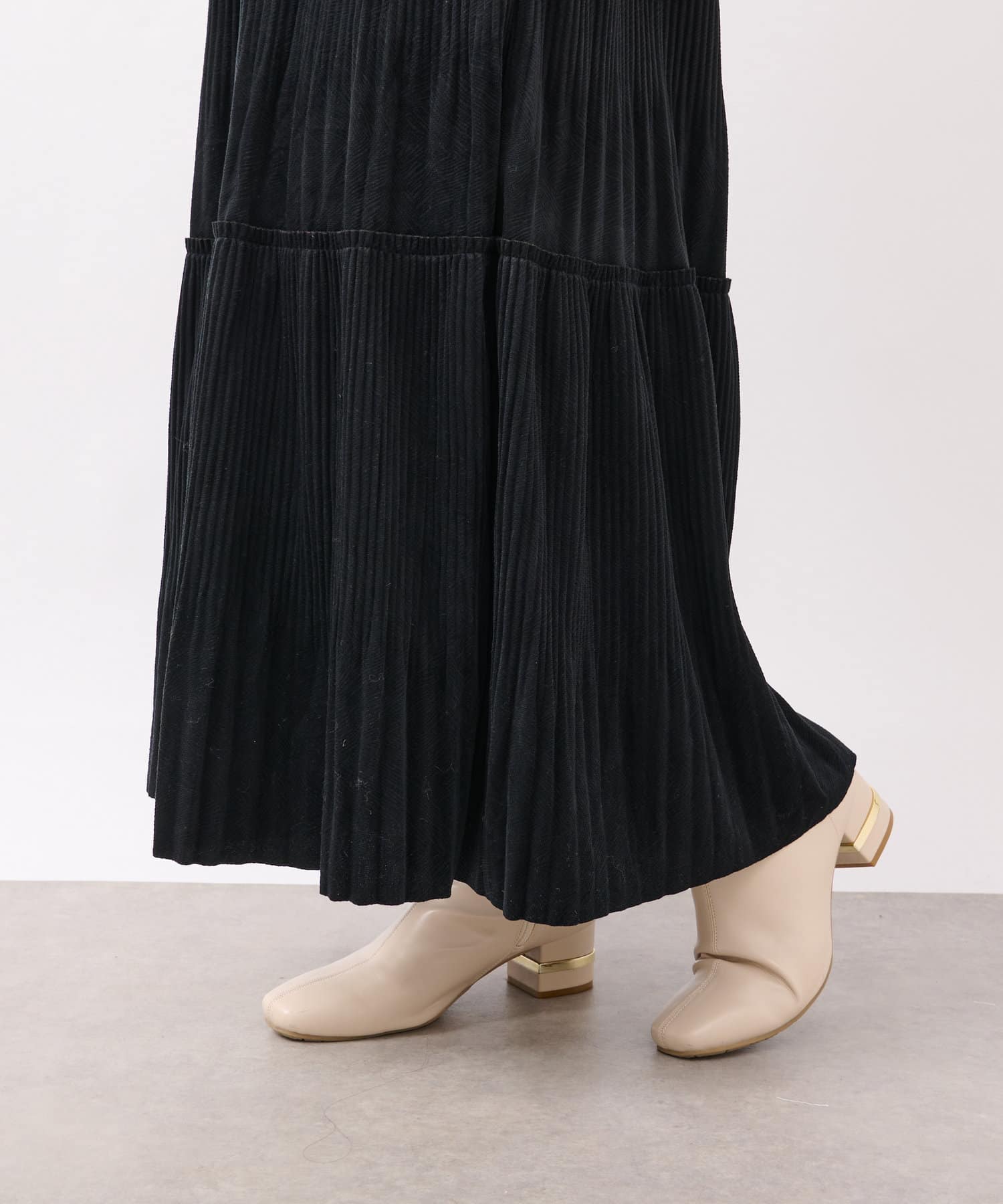 ・ベロア素材にプリーツを施した3段ティアードスカート