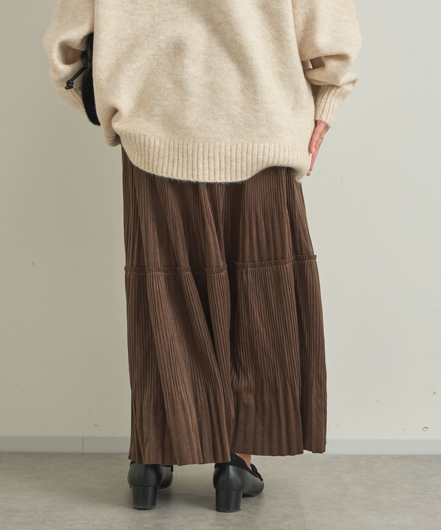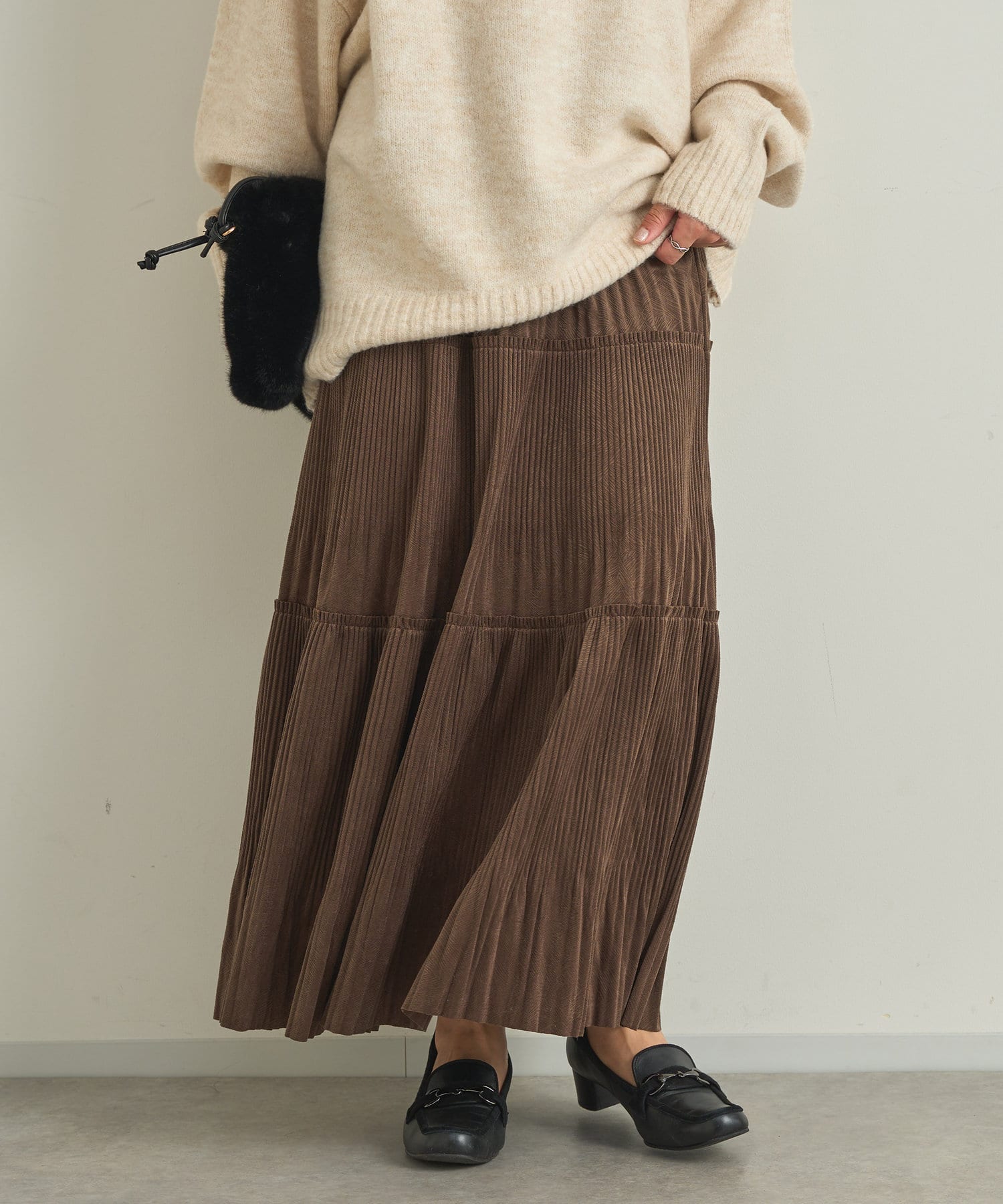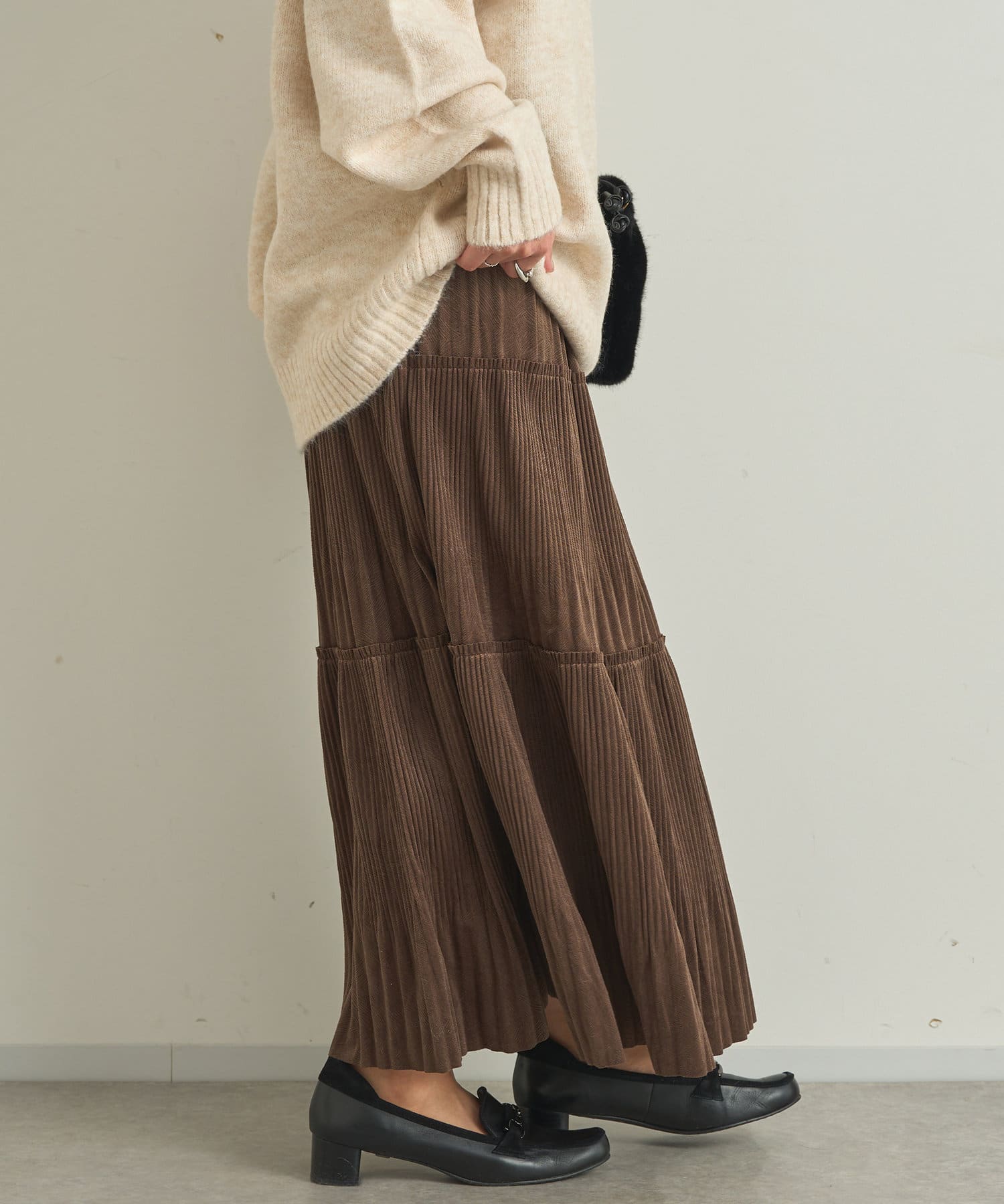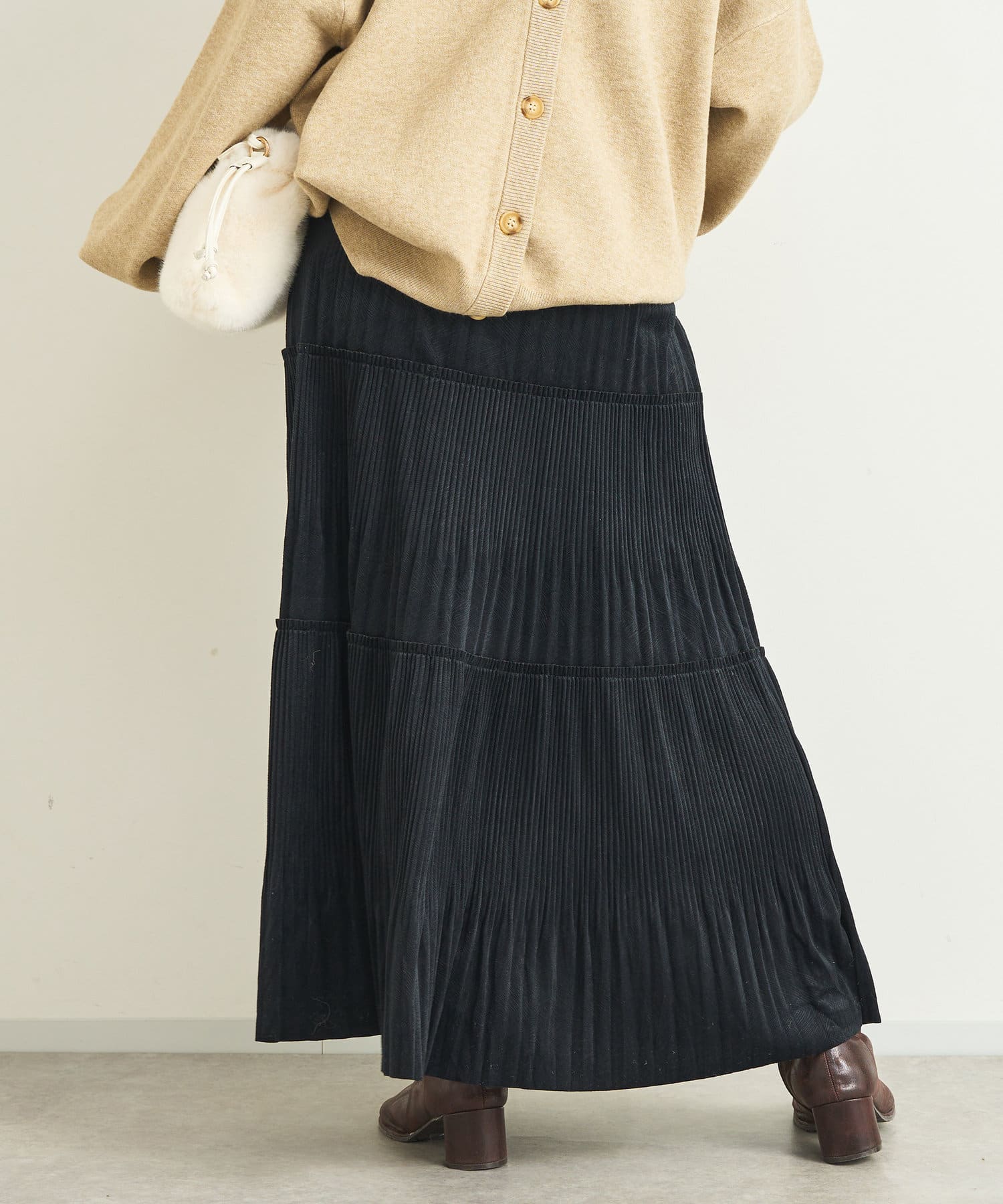 ・ベロア素材にプリーツを施した3段ティアードスカート