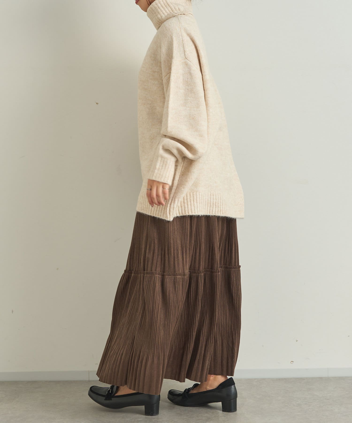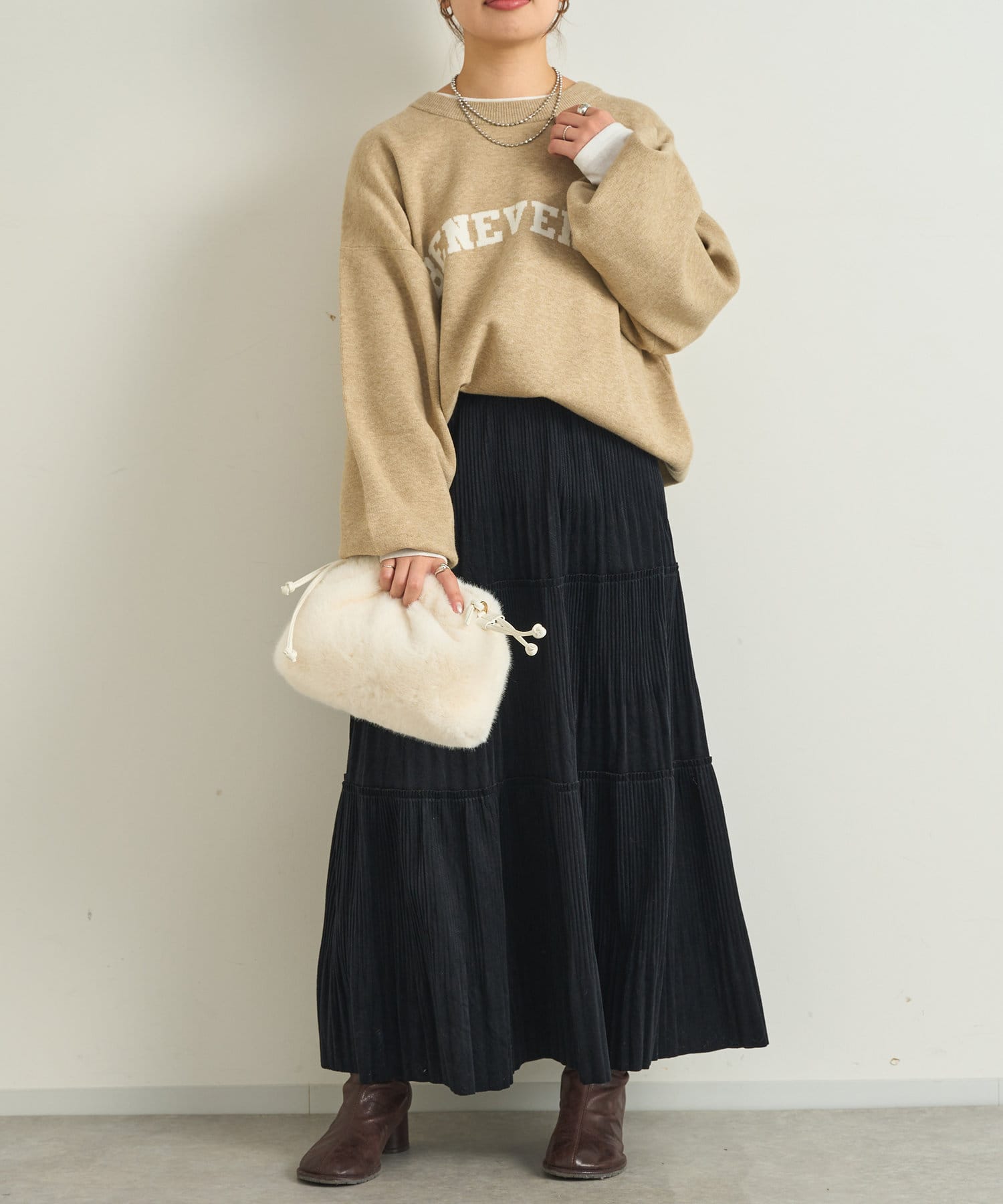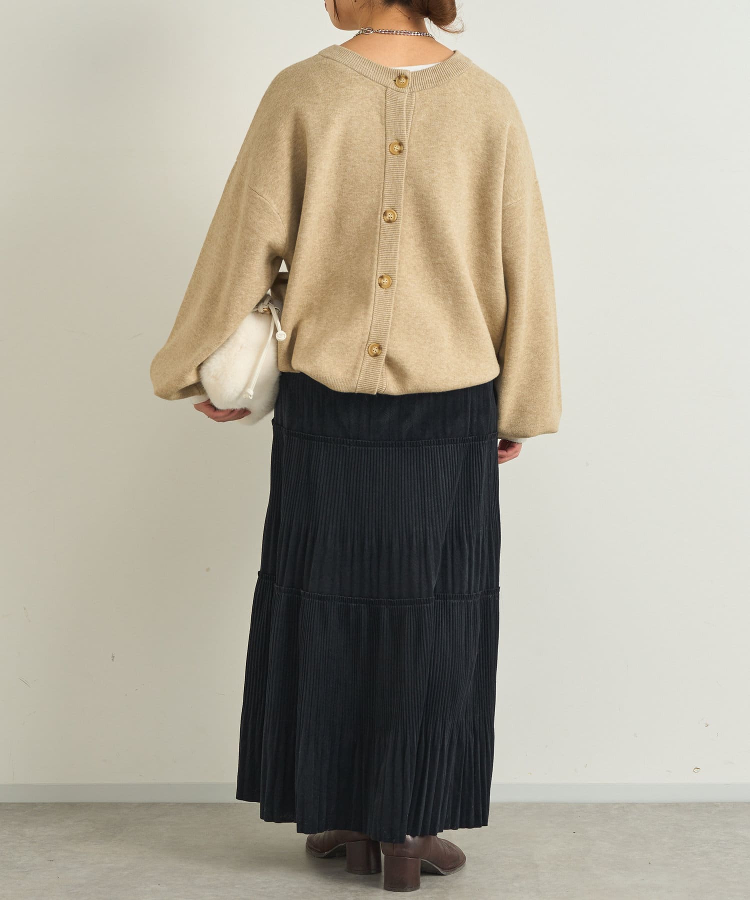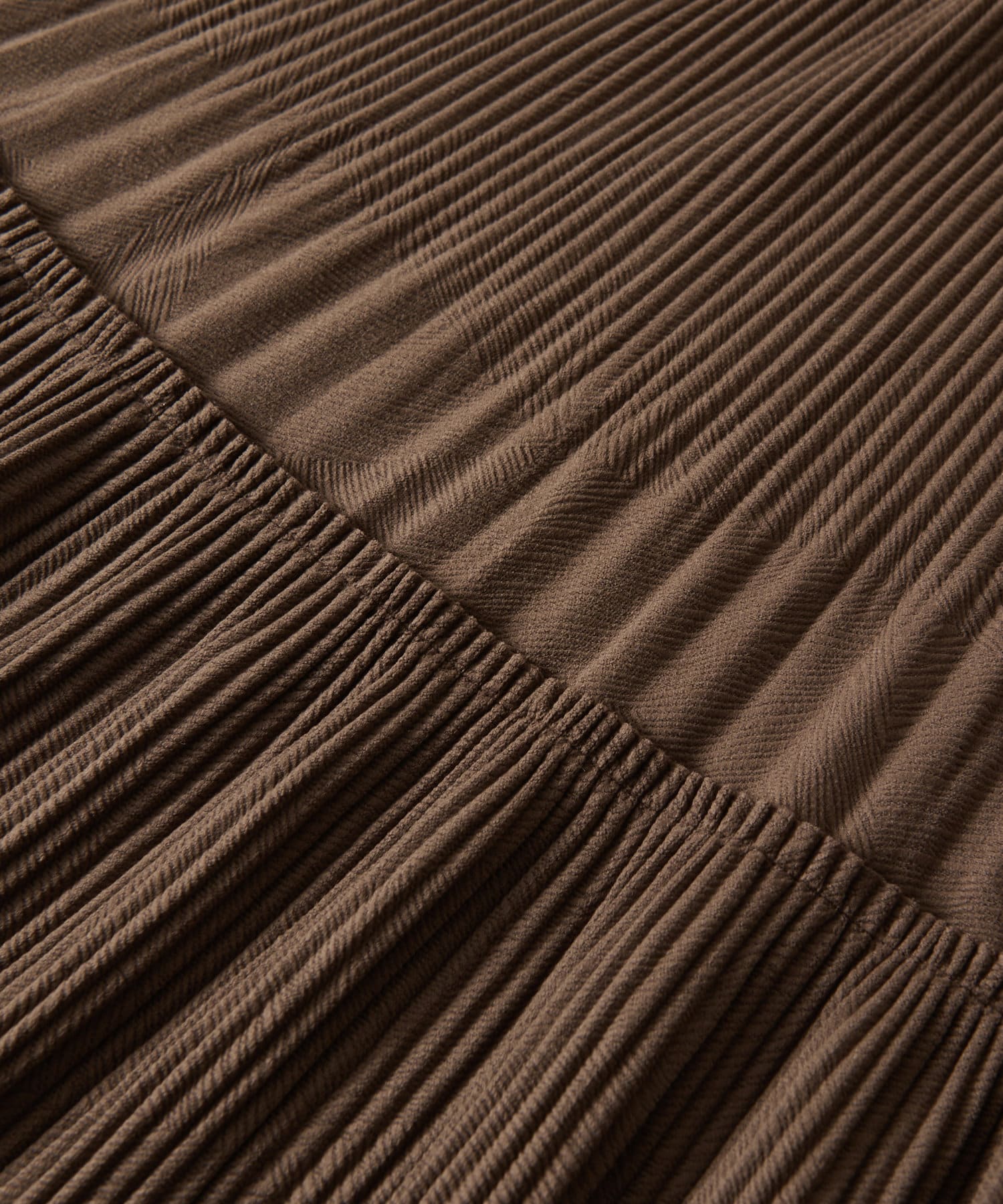 ・ベロア素材にプリーツを施した3段ティアードスカート