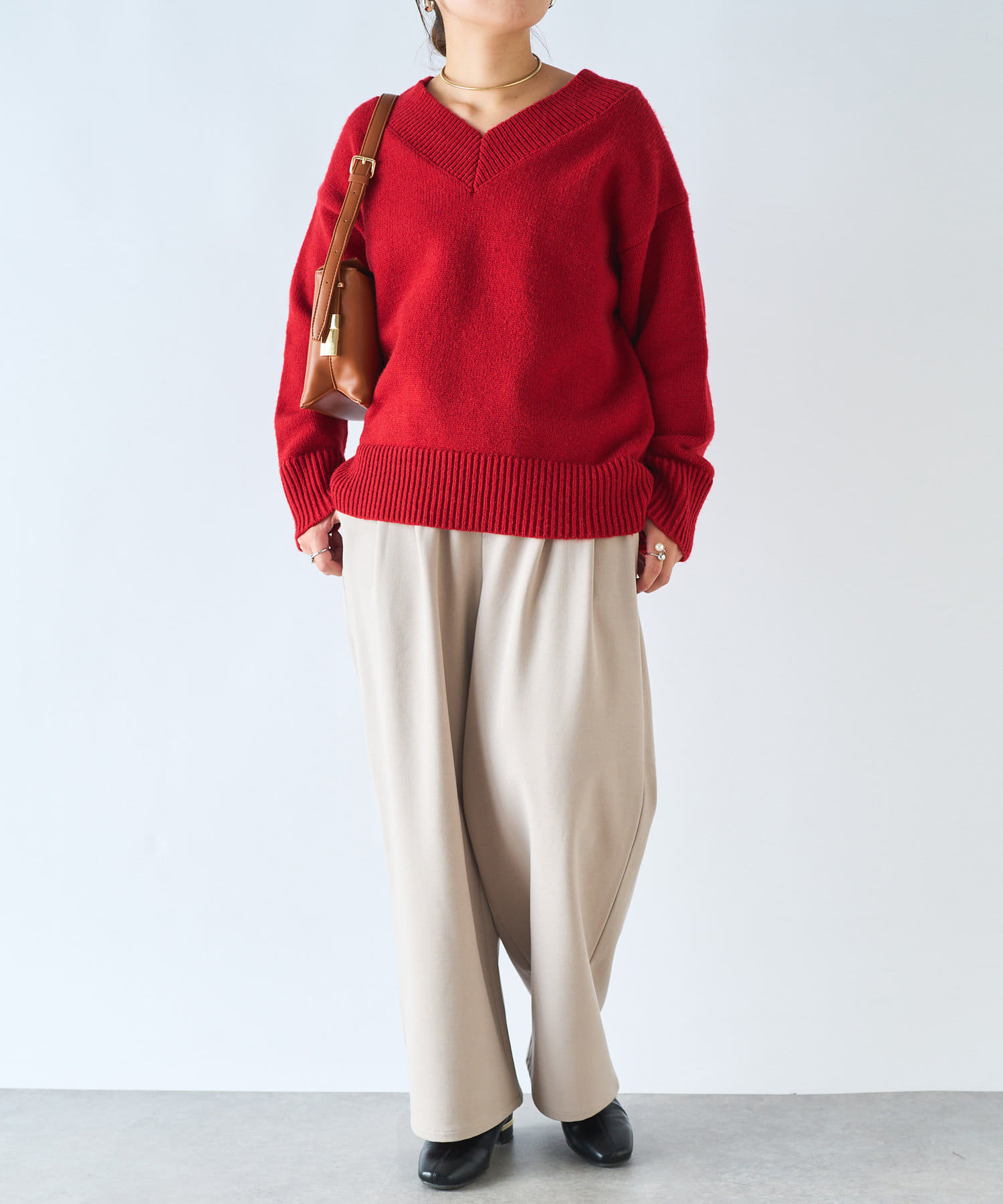 ミドルゲージのニットに合わせたOオフスタイルや、