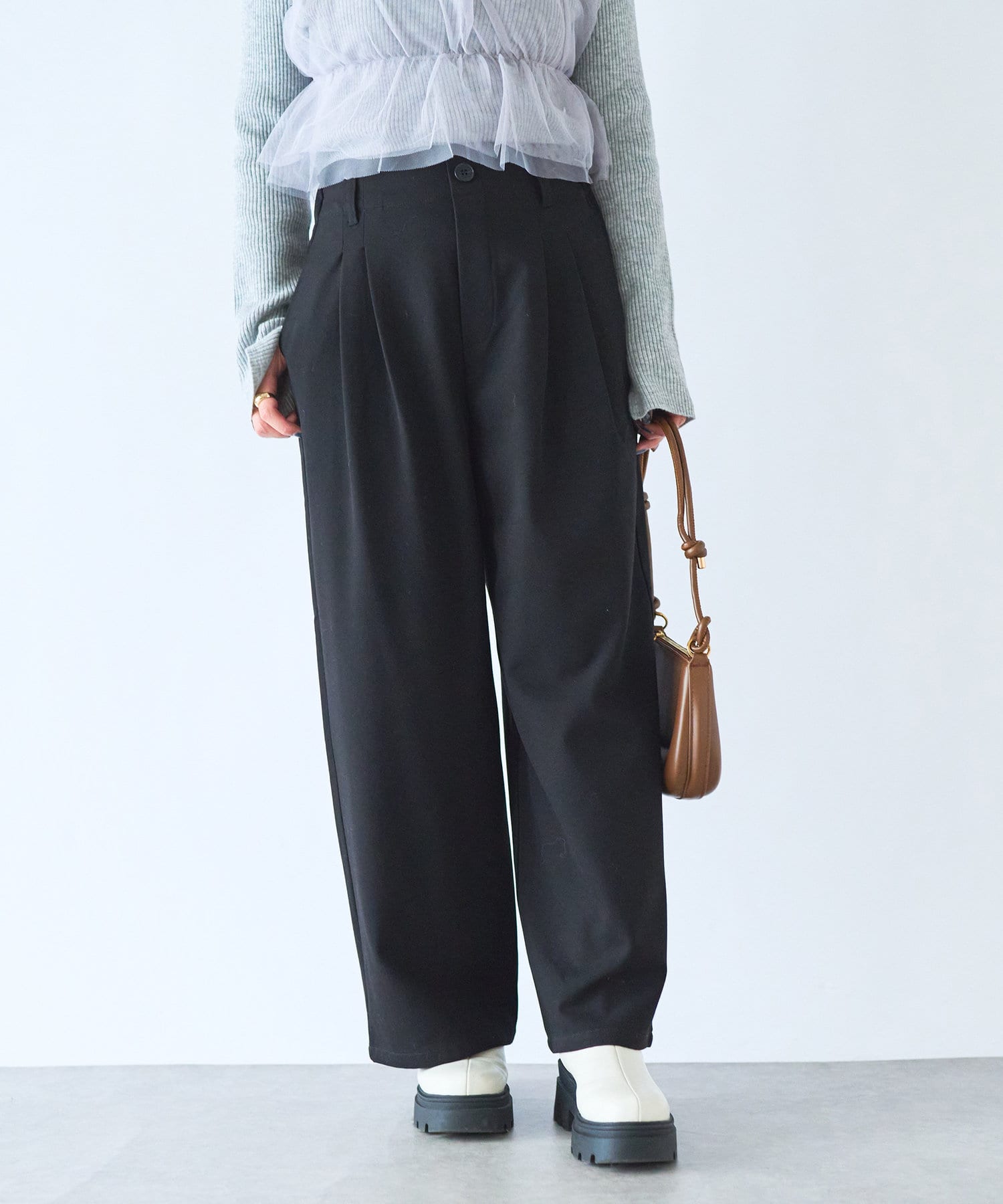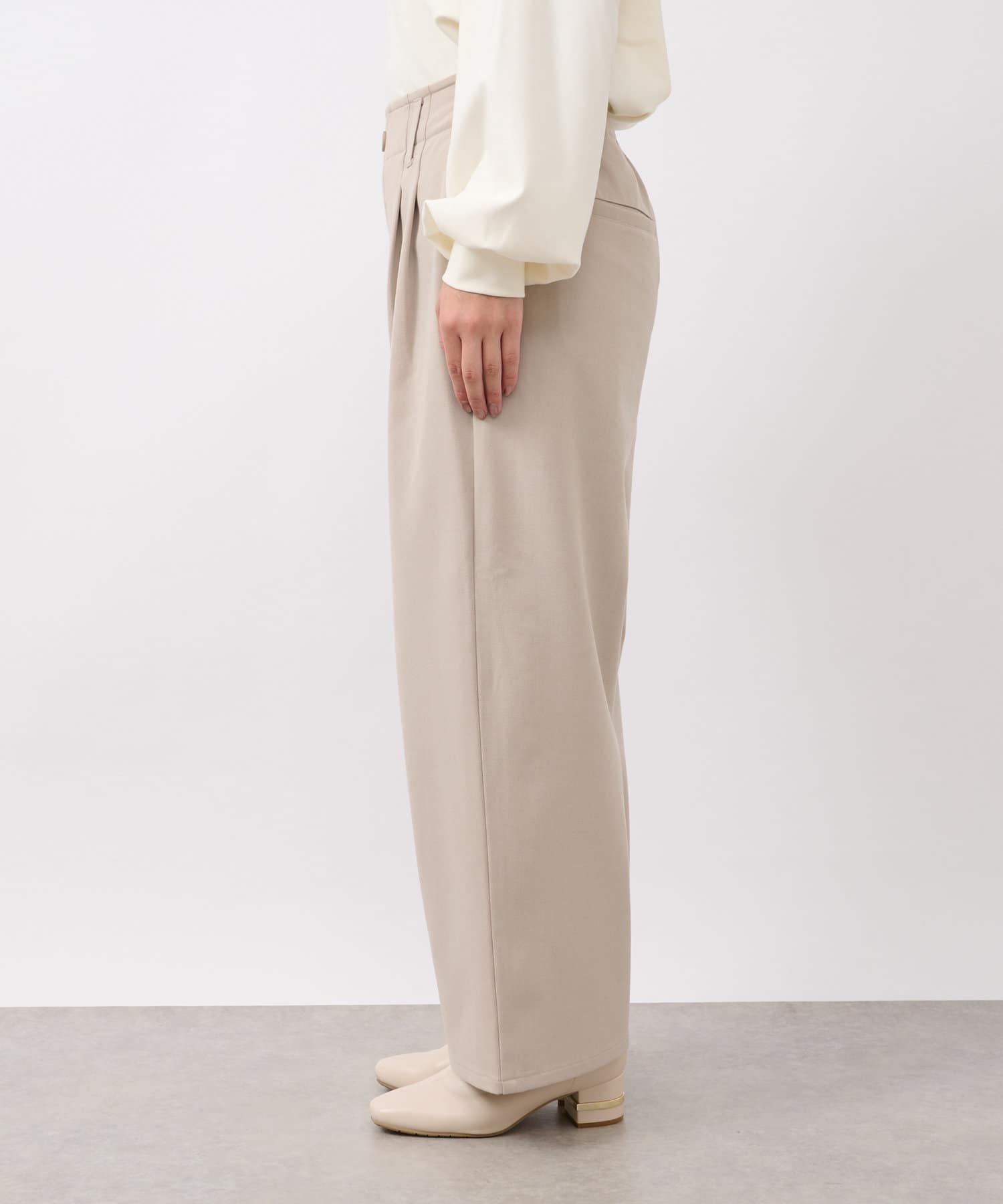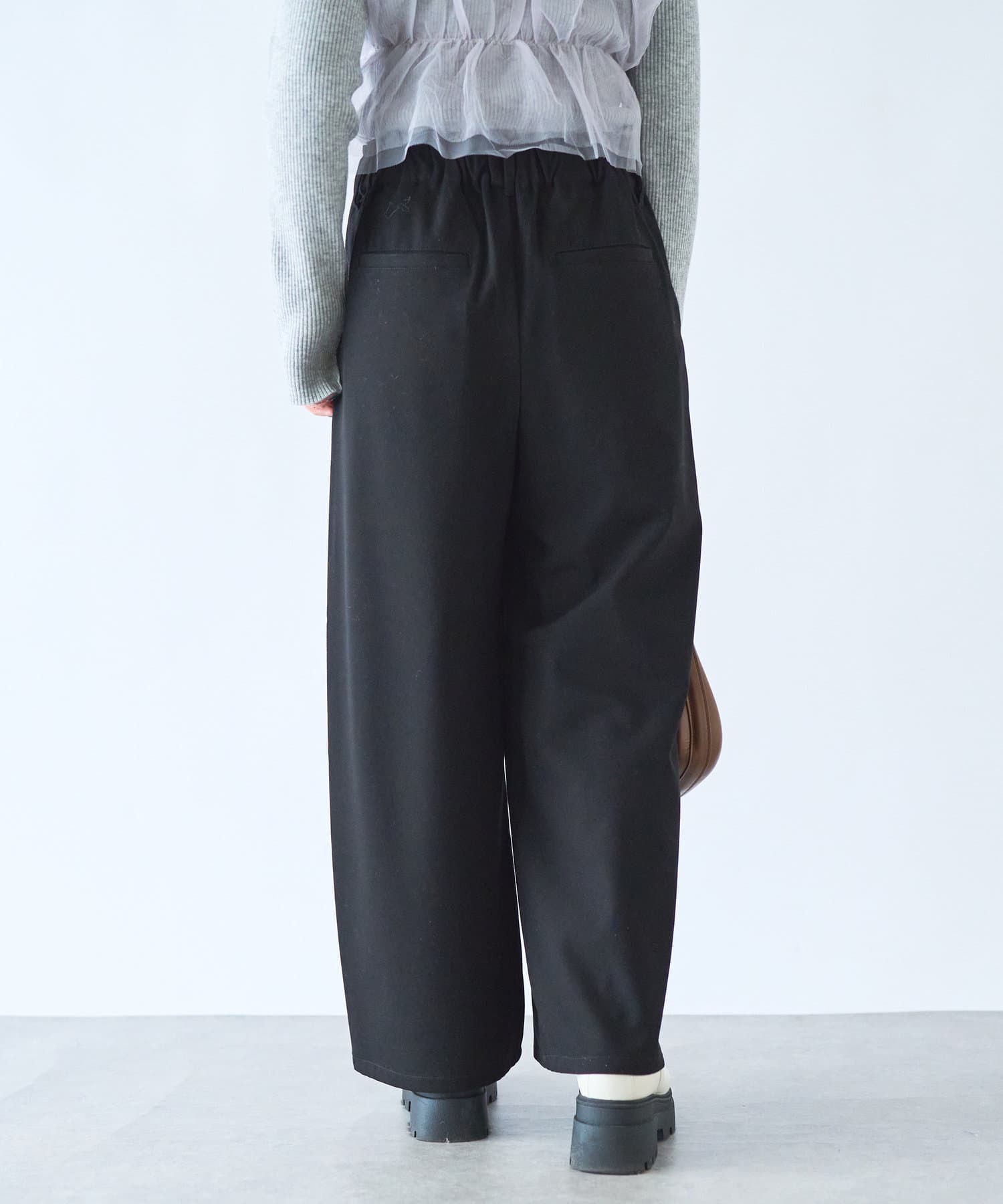 裏起毛の素材で冬コーデに大活躍なパンツです。