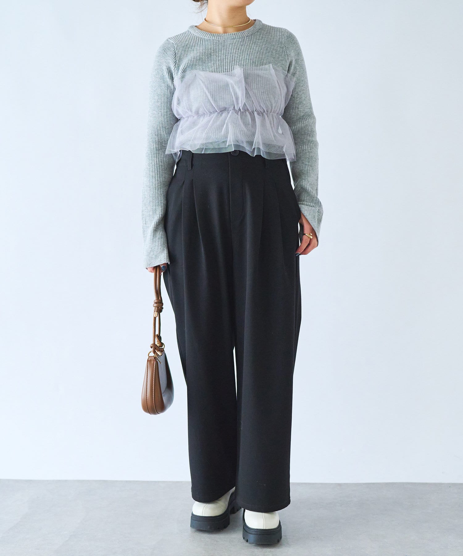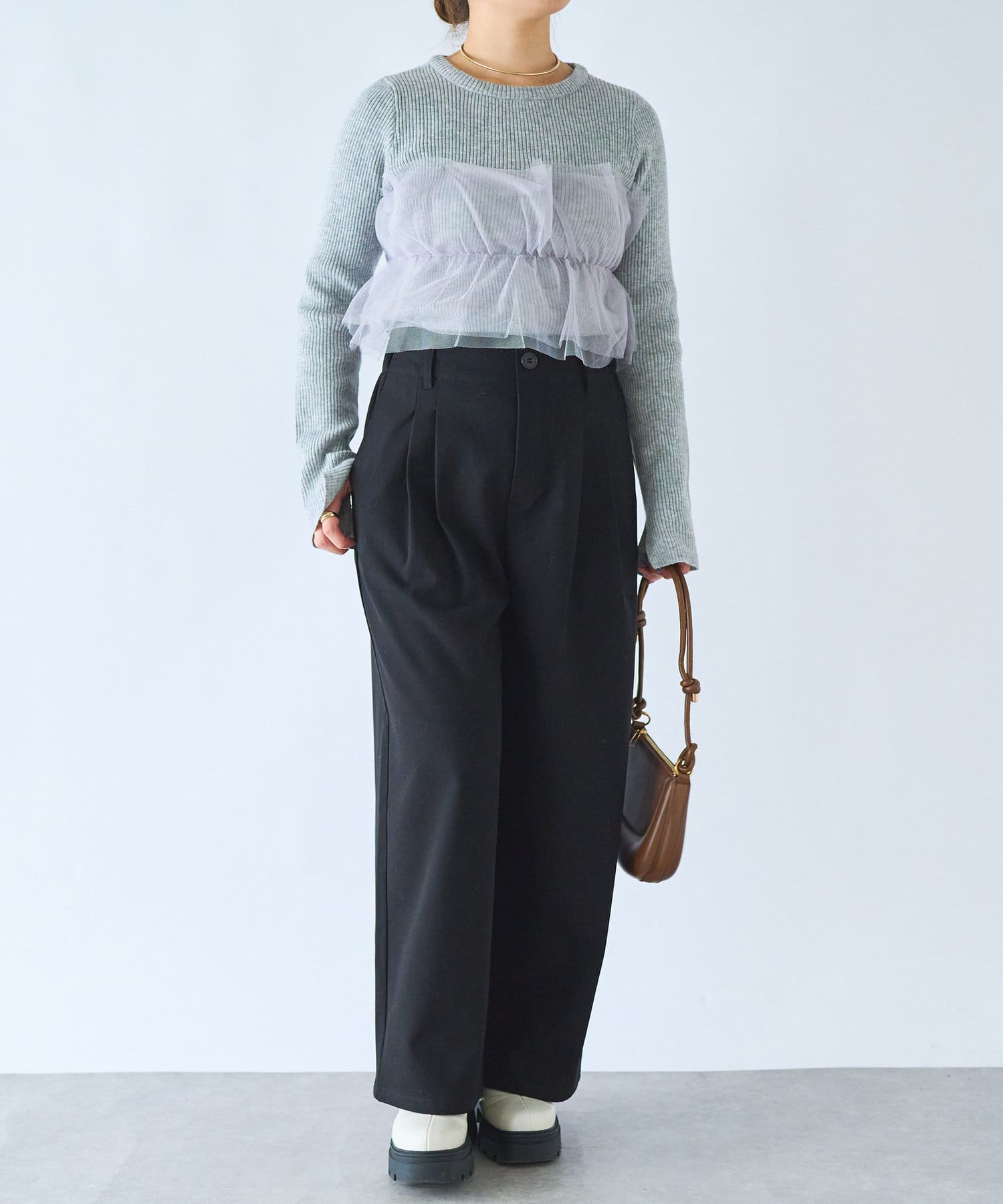 ベーシックな色味&ワイド感なのでオフスタイルはもちろん、