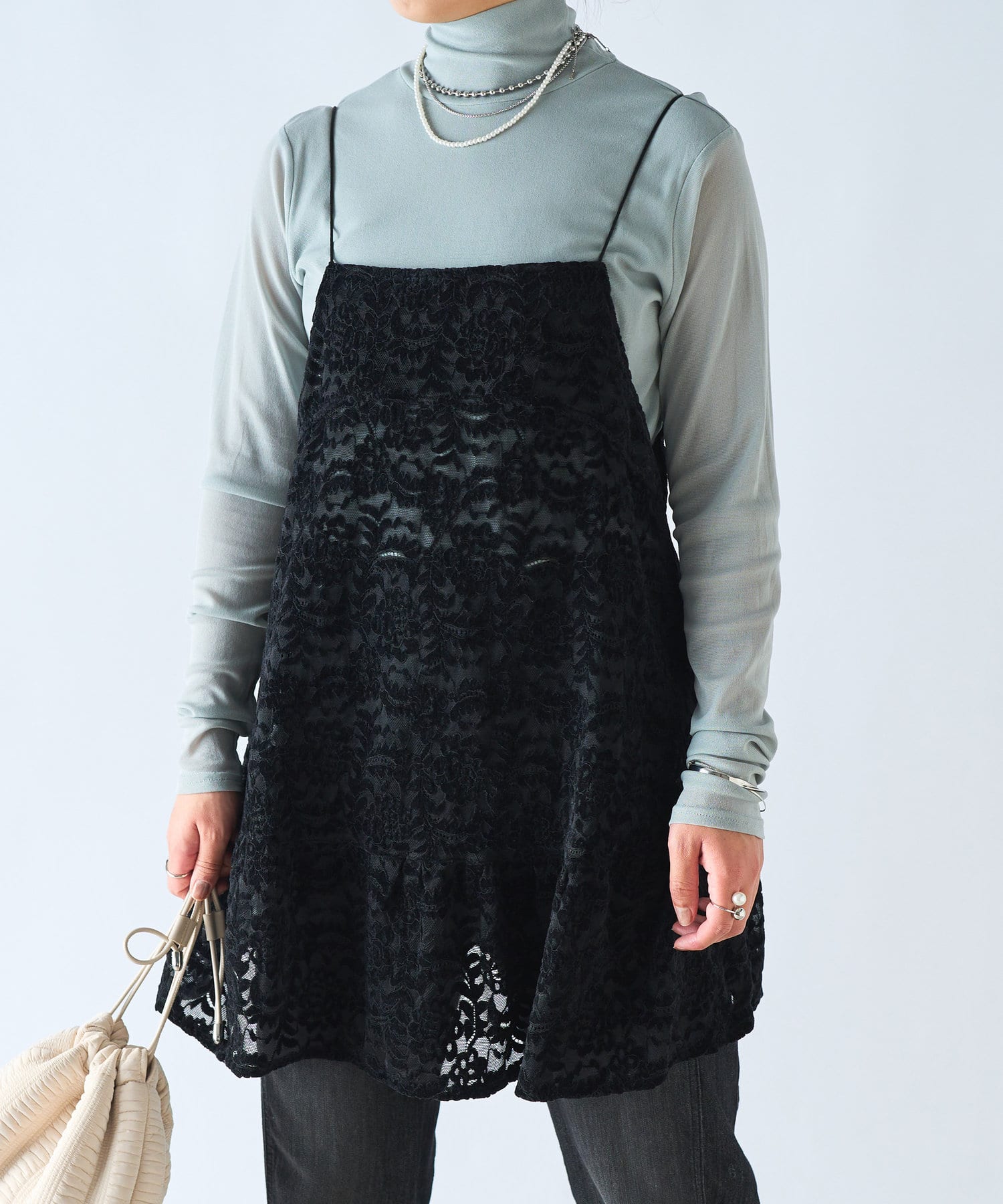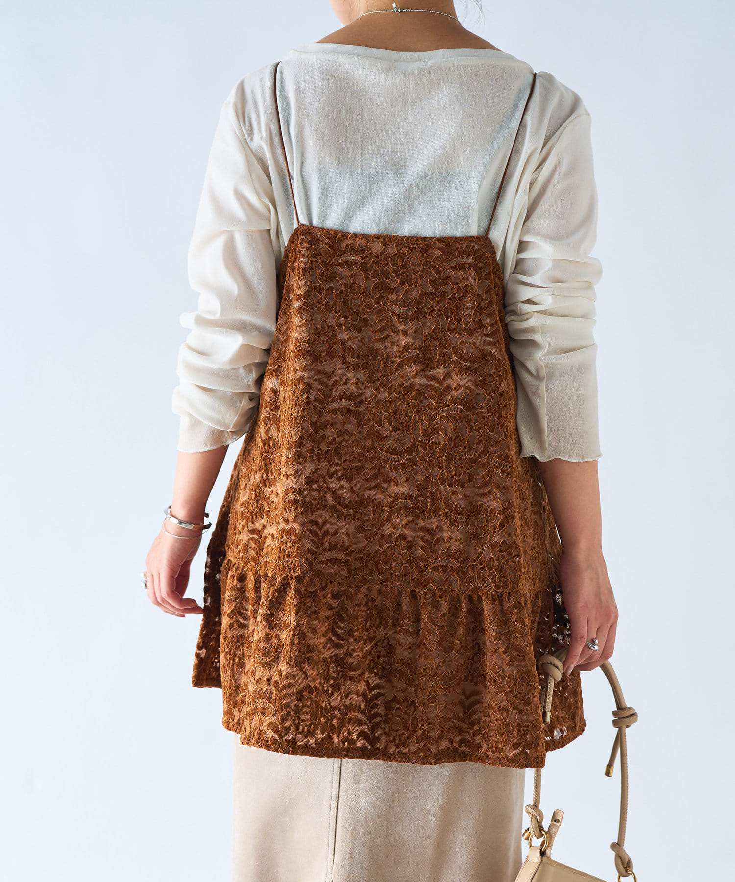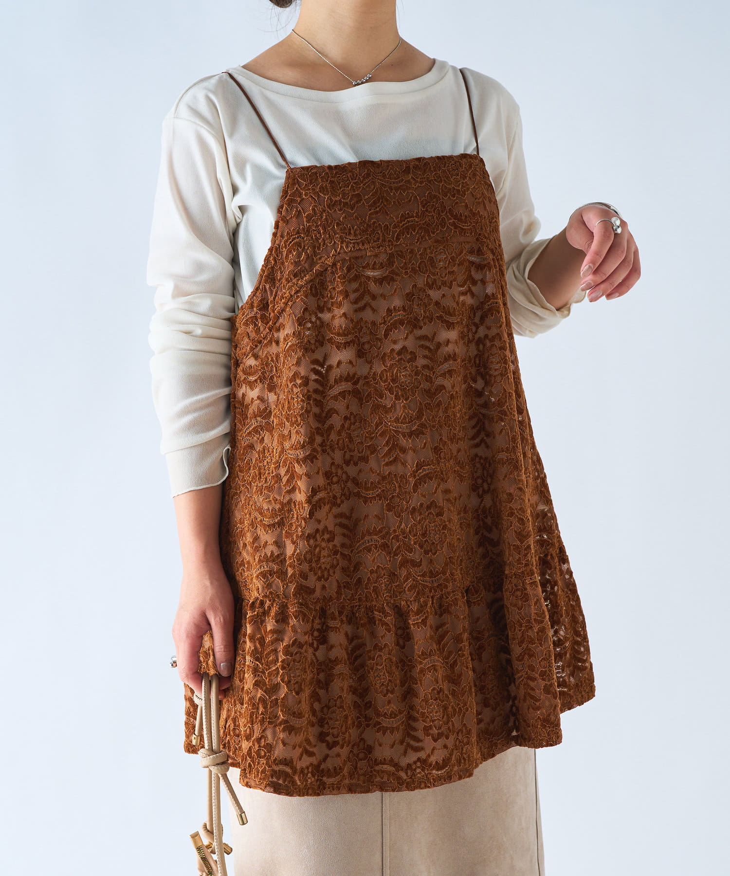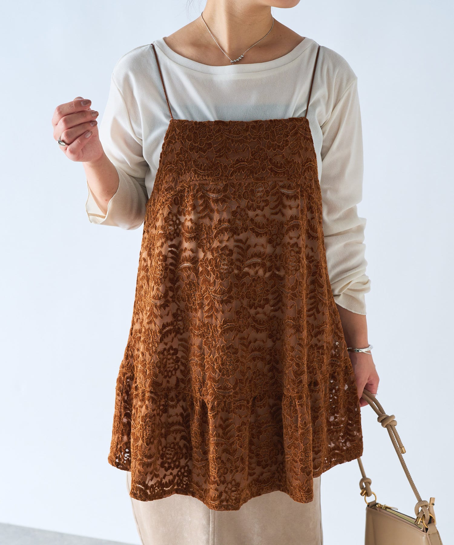上品な起毛レースと華奢な肩紐で女性らしい印象のビスチェ!